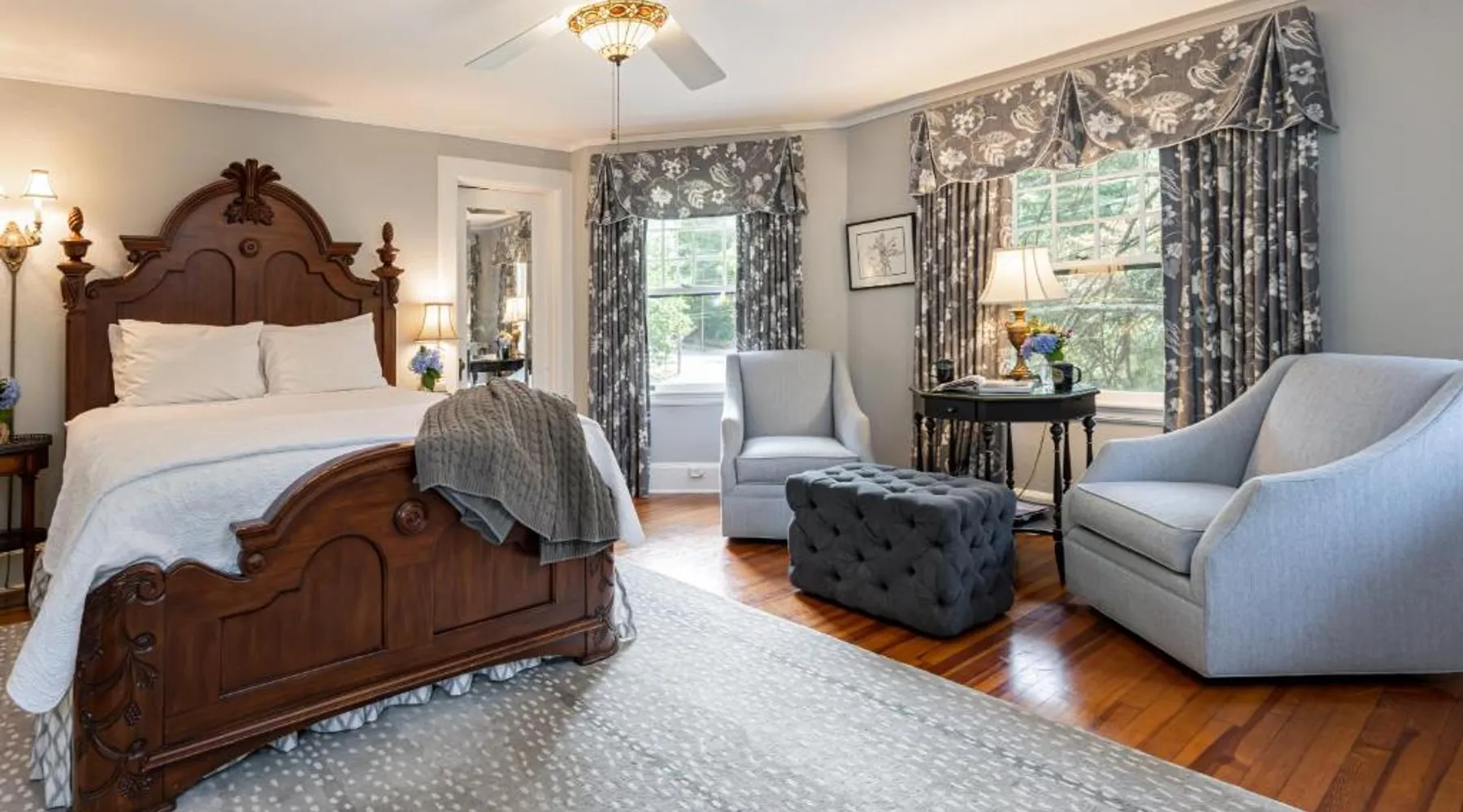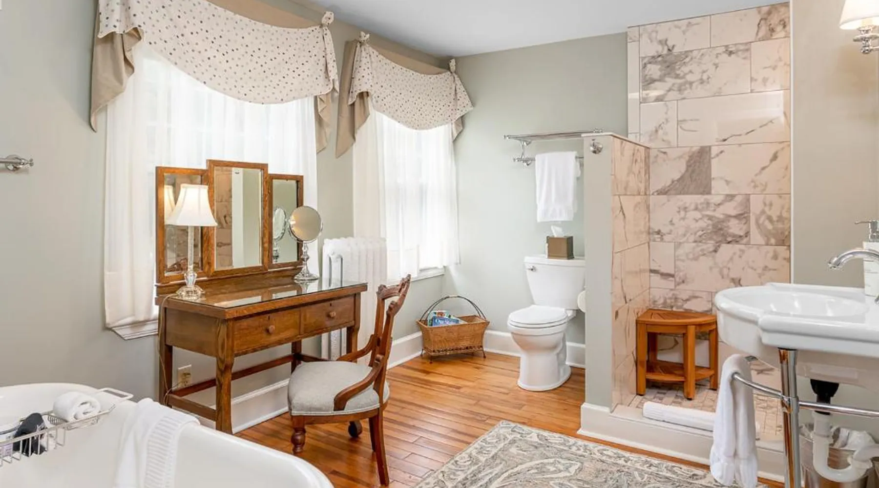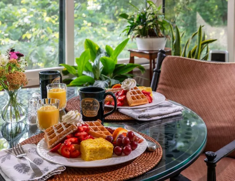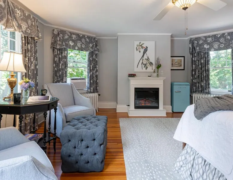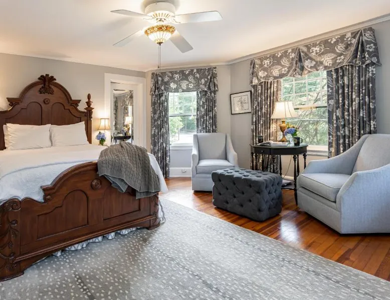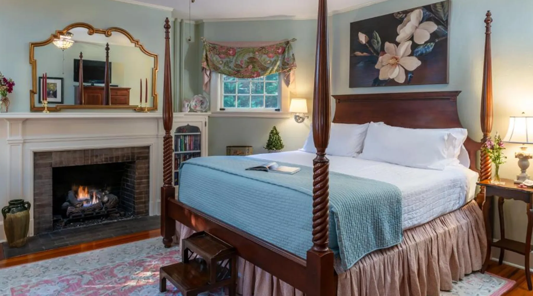 Elegant Accommodations: Pinecrest Bed & Breakfast in Asheville offers a recently renovated adults-only environment with a beautiful garden and terrace. Free WiFi is available throughout the property. Comfortable Amenities: Guests enjoy air-conditioning, private bathrooms with walk-in showers, fireplaces, and garden views. Additional amenities include bathrobes, parquet floors, and free toiletries. Delicious Breakfast: A variety of breakfast options are available, including American, vegetarian, vegan, and gluten-free. Local specialties, fresh pastries, pancakes, cheese, fruits, and warm dishes are served. Convenient Location: Located 13 mi from Asheville Regional Airport, the property is close to attractions such as the Botanical Gardens (16-minute walk) and Biltmore Estate (6.2 mi). Boating is available in the surroundings. Highly rated by guests. Located on the second floor, this room features a mahogany Victorian bed and wood floors. A seating area with an electric fireplace is provided. A private bath with a claw foot tub/shower combination and antique vanity is included.