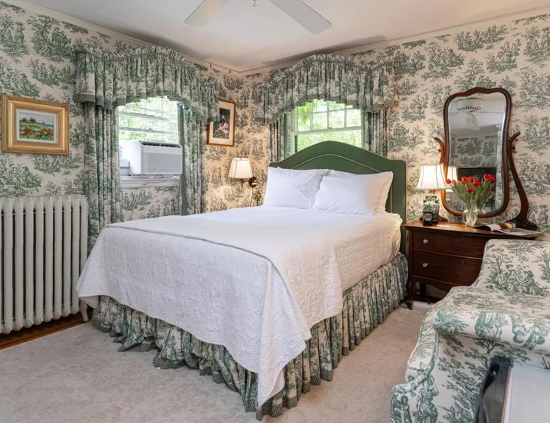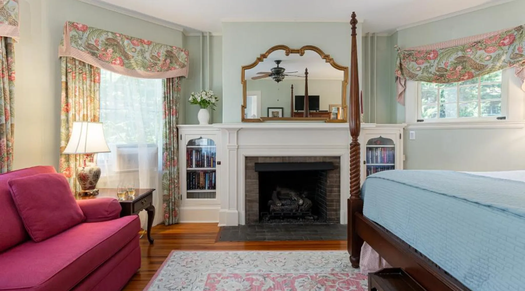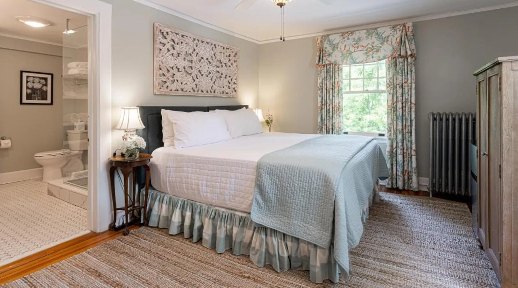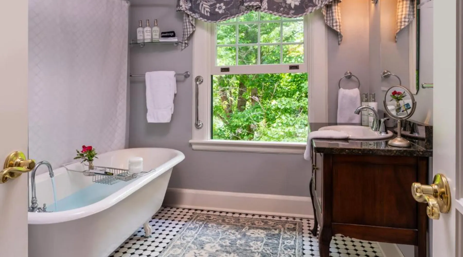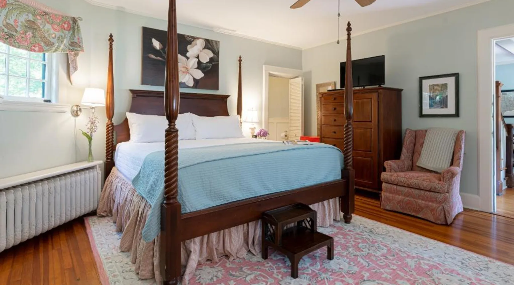 Elegant Accommodations: Pinecrest Bed & Breakfast in Asheville offers a recently renovated adults-only environment with a beautiful garden and terrace. Free WiFi is available throughout the property. Comfortable Amenities: Guests enjoy air-conditioning, private bathrooms with walk-in showers, fireplaces, and garden views. Additional amenities include bathrobes, parquet floors, and free toiletries. Delicious Breakfast: A variety of breakfast options are available, including American, vegetarian, vegan, and gluten-free. Local specialties, fresh pastries, pancakes, cheese, fruits, and warm dishes are served. Convenient Location: Located 13 mi from Asheville Regional Airport, the property is close to attractions such as the Botanical Gardens (16-minute walk) and Biltmore Estate (6.2 mi). Boating is available in the surroundings. Highly rated by guests. Located on the second floor, this room features a mahogany Victorian bed and wood floors. A seating area with an electric fireplace is provided. A private bath with a claw foot tub/shower combination and antique vanity is included.