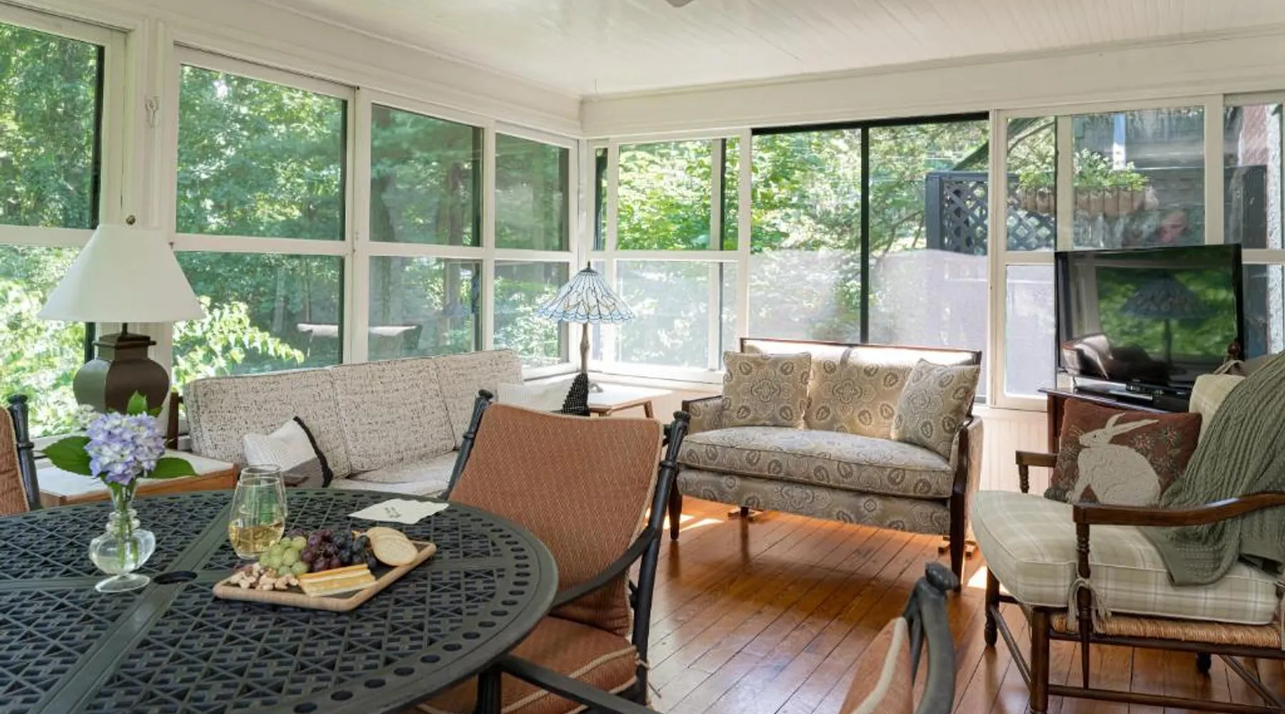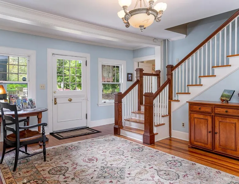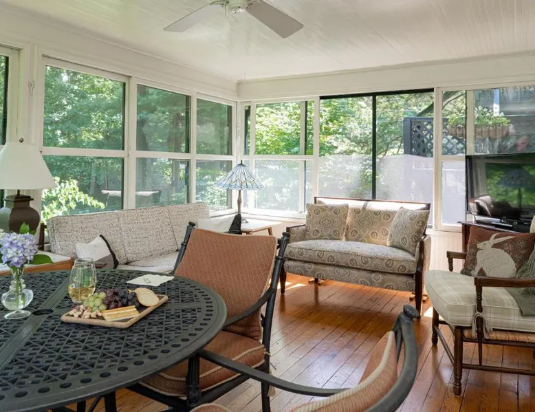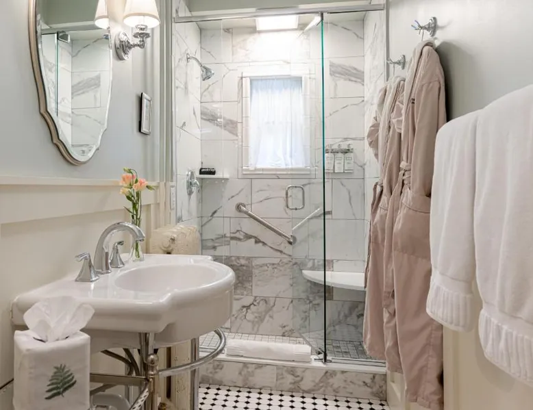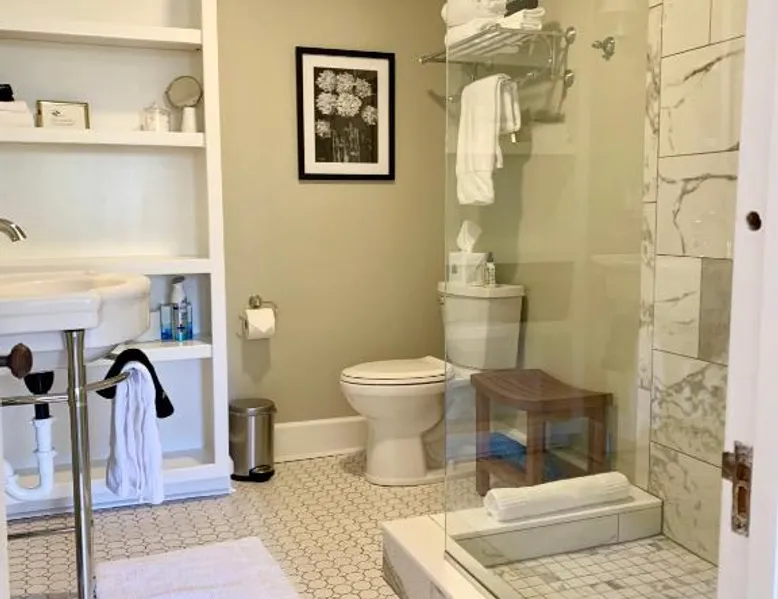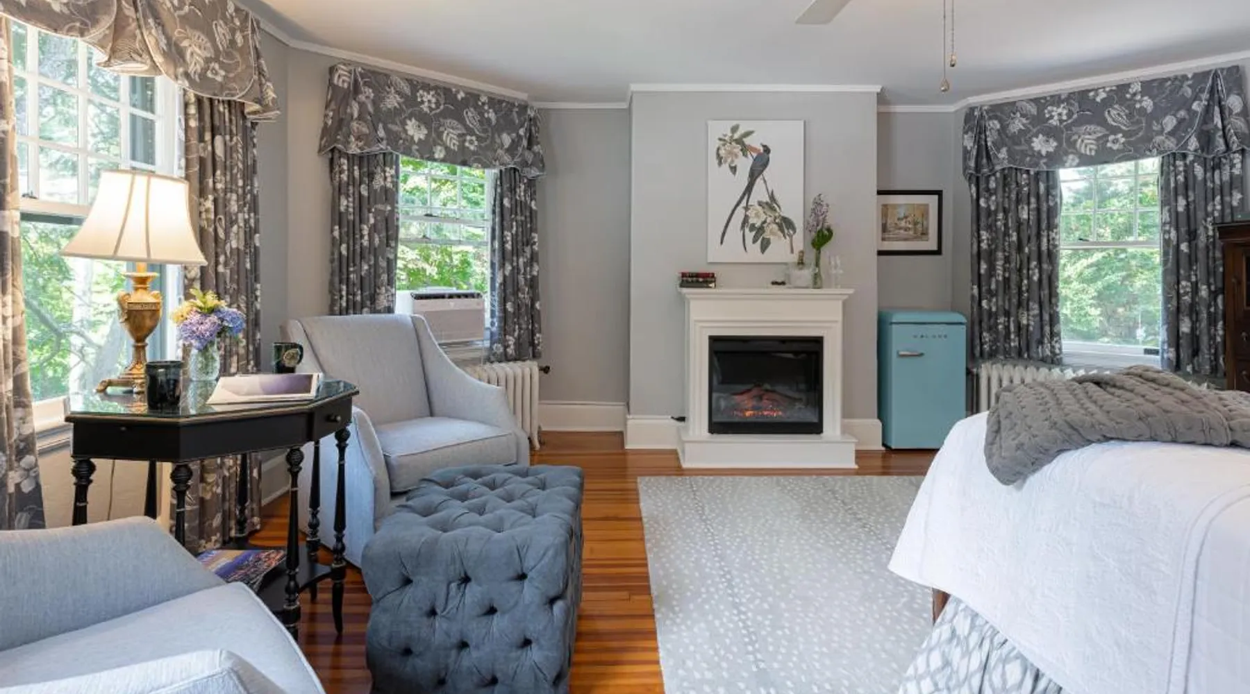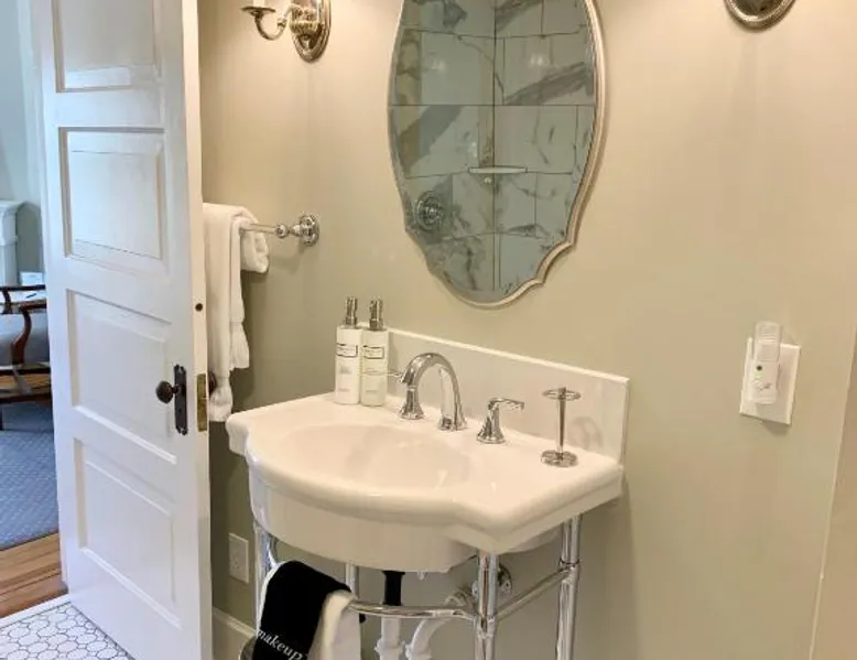 Elegant Accommodations: Pinecrest Bed & Breakfast in Asheville offers a recently renovated adults-only environment with a beautiful garden and terrace. Free WiFi is available throughout the property. Comfortable Amenities: Guests enjoy air-conditioning, private bathrooms with walk-in showers, fireplaces, and garden views. Additional amenities include bathrobes, parquet floors, and free toiletries. Delicious Breakfast: A variety of breakfast options are available, including American, vegetarian, vegan, and gluten-free. Local specialties, fresh pastries, pancakes, cheese, fruits, and warm dishes are served. Convenient Location: Located 13 mi from Asheville Regional Airport, the property is close to attractions such as the Botanical Gardens (16-minute walk) and Biltmore Estate (6.2 mi). Boating is available in the surroundings. Highly rated by guests. Located on the second floor, this room features a mahogany Victorian bed and wood floors. A seating area with an electric fireplace is provided. A private bath with a claw foot tub/shower combination and antique vanity is included.