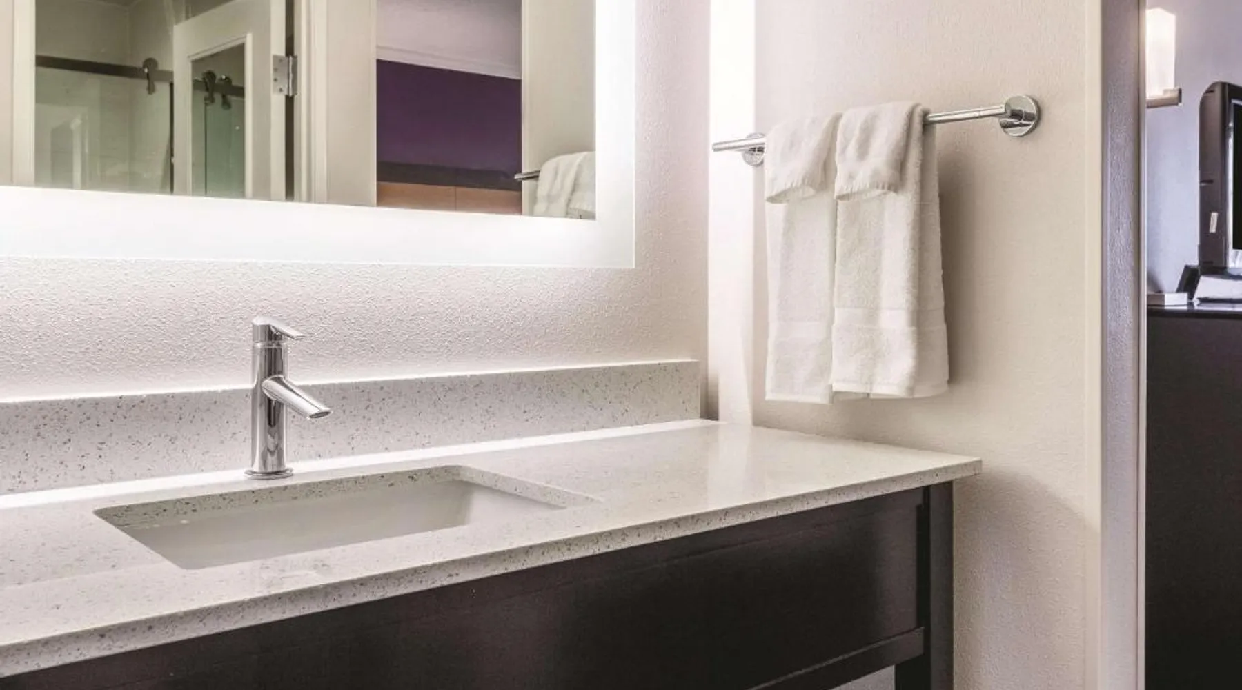 Offering free Wi-Fi and a flat-screen TV in every room, this renovated Ohio hotel is 3 miles from Cleveland-Hopkins International Airport. A complimentary breakfast with sausage and scrambled eggs each morning. Freshly prepared oatmeal is provided as well. A hairdryer and ironing facilities are offered in all rooms at La Quinta Inn & Suites Cleveland – Airport North. Tea and coffee-making facilities are also included in each room. All rooms offer a microwave, refrigerator, and a seating area. A fitness center and laundry facilities are featured on site at La Quinta Inn & Suites Cleveland – Airport North for guest convenience. A transport service to the airport and park and fly options are available for a fee. Just off Interstate 71, this hotel is 10 minutes’ drive from the NASA Glenn Research Center. The Rock and Roll Hall of Fame and Cleveland city center are 12 miles away. This suite features a sofa, seating area and air conditioning. Offering free Wi-Fi and a flat-screen TV, this room is equipped with tea and coffee-making facilities.