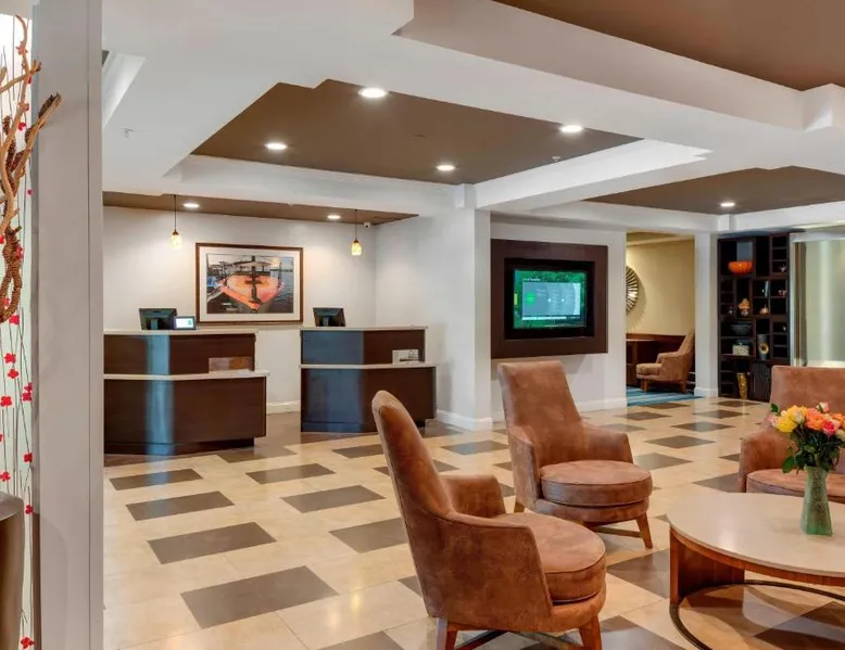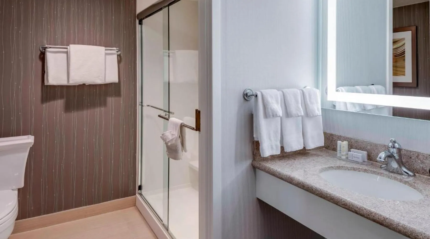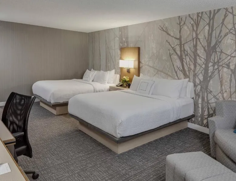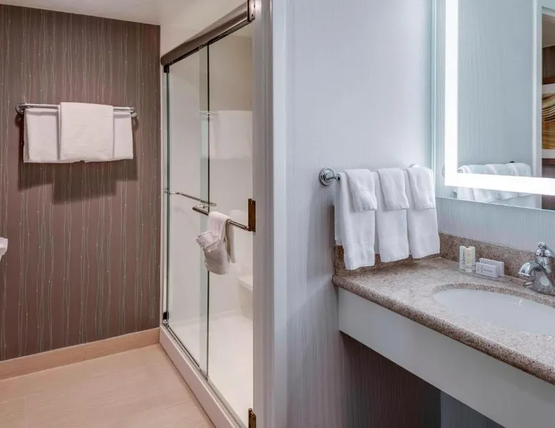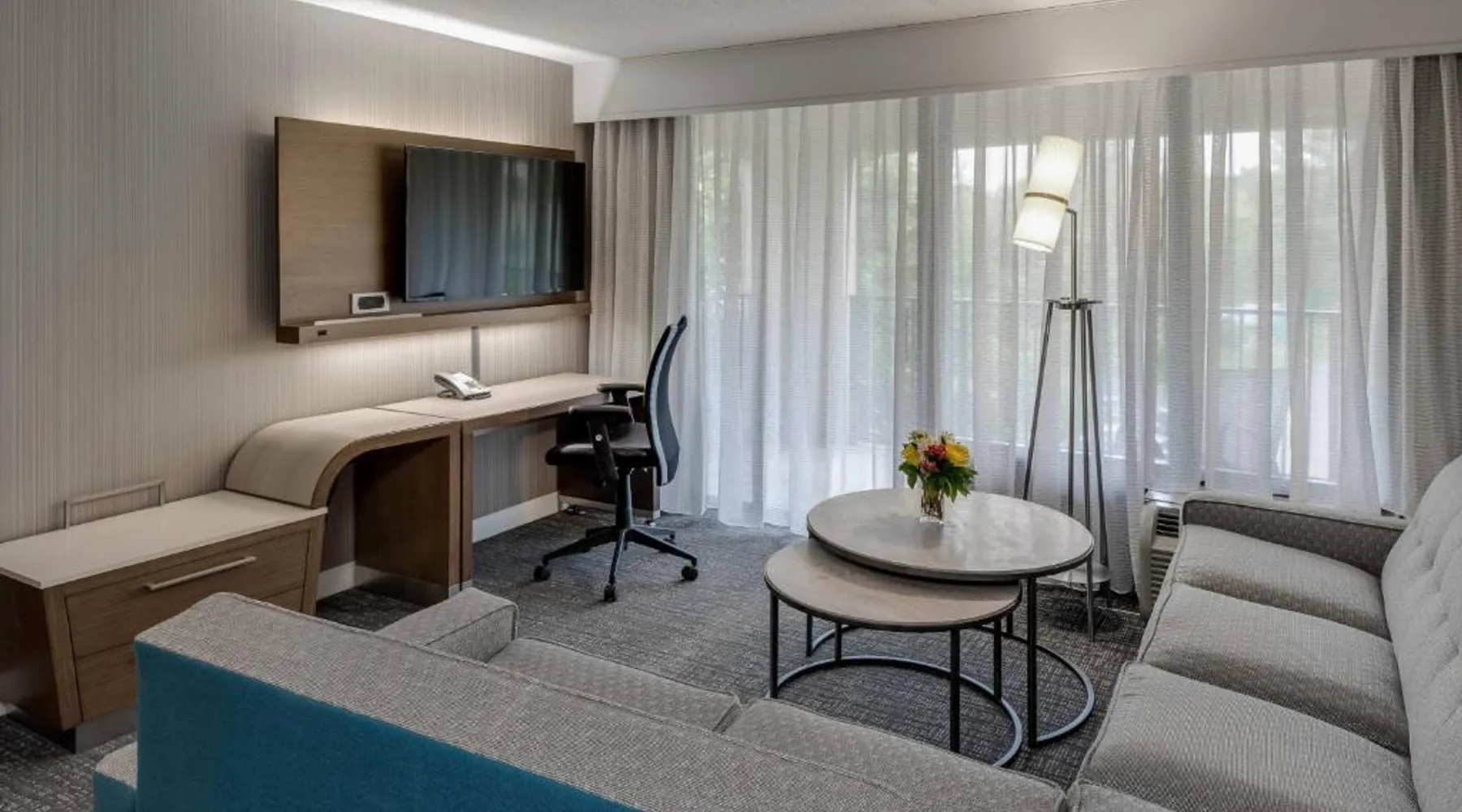 Comfortable Accommodations: Courtyard by Marriott Portsmouth in Portsmouth offers rooms with air-conditioning, balconies, private bathrooms, tea and coffee makers, hairdryers, refrigerators, work desks, microwaves, bath or showers, and TVs. Dining and Leisure: The hotel features a restaurant serving American cuisine for dinner, a bar, and an indoor swimming pool. Guests can also enjoy a fitness center and free on-site parking. Convenient Location: Located 3.7 mi from Portsmouth International Airport at Pease, the hotel is near attractions such as Water Country (5.6 mi) and Ogunquit Museum of American Art (16 mi). Guests appreciate the airport shuttle and the hotel’s convenient location. This room features a microwave, refrigerator, and a flat-screen TV.