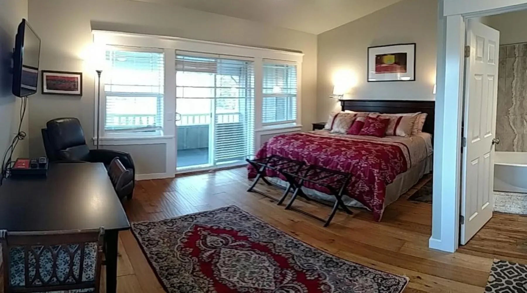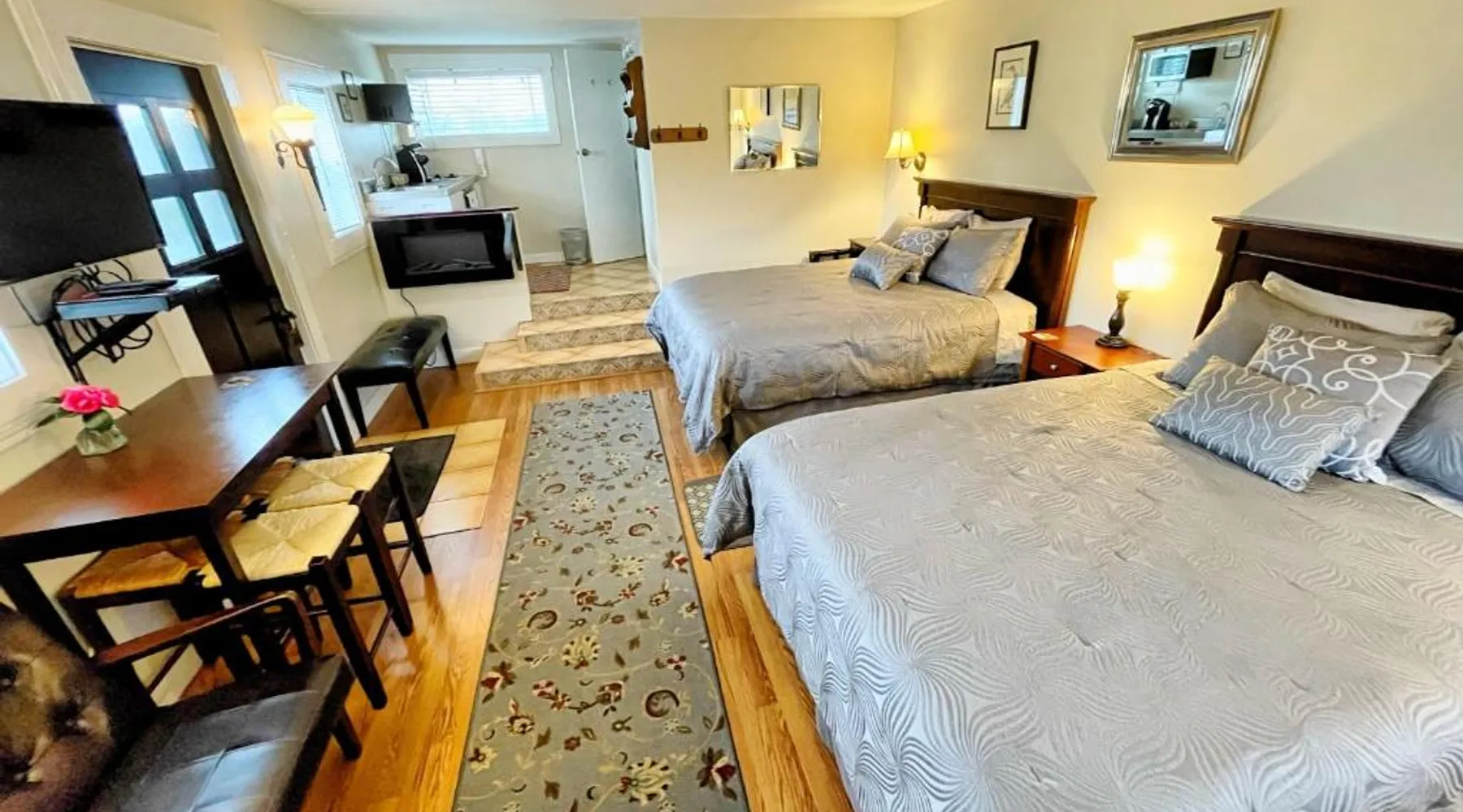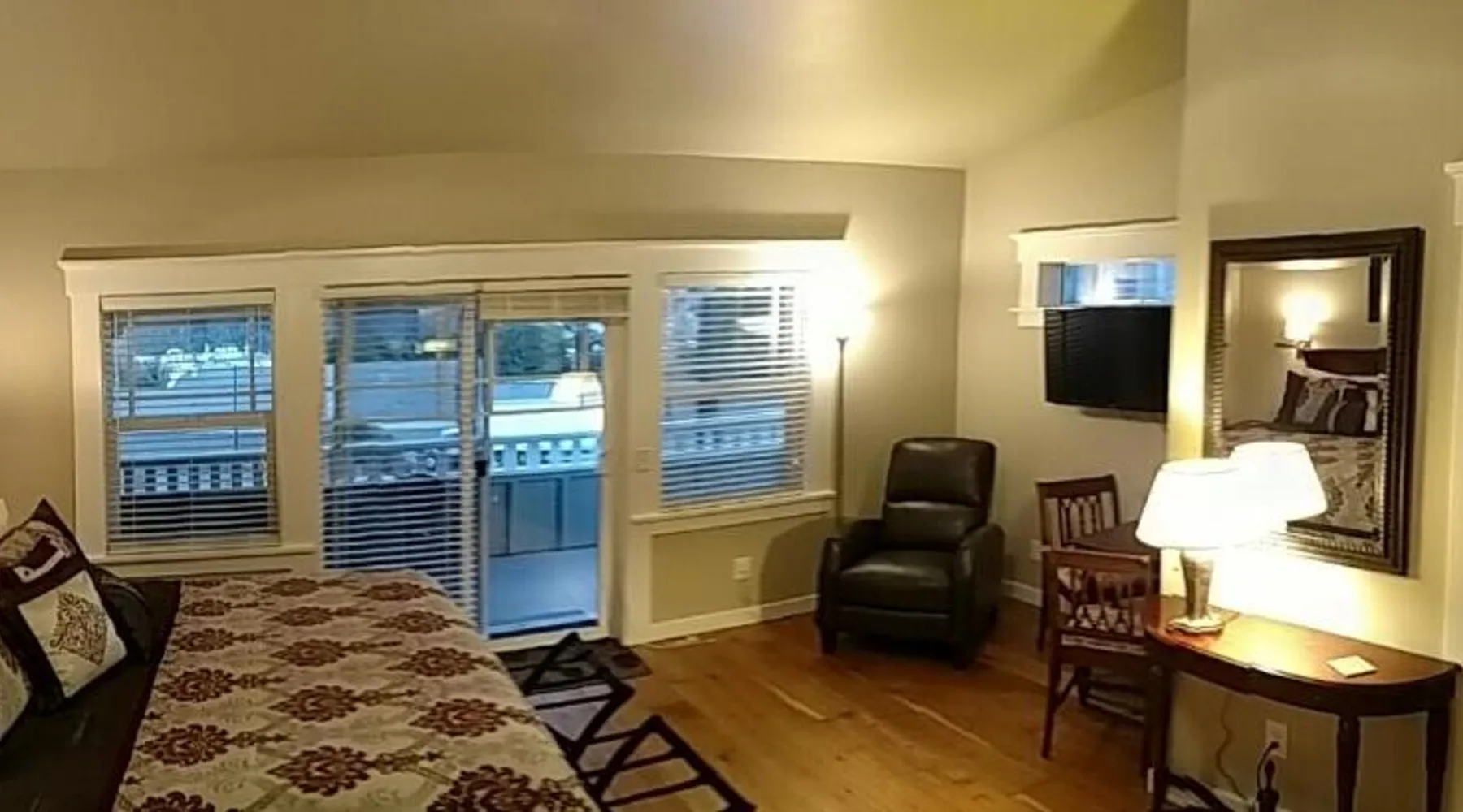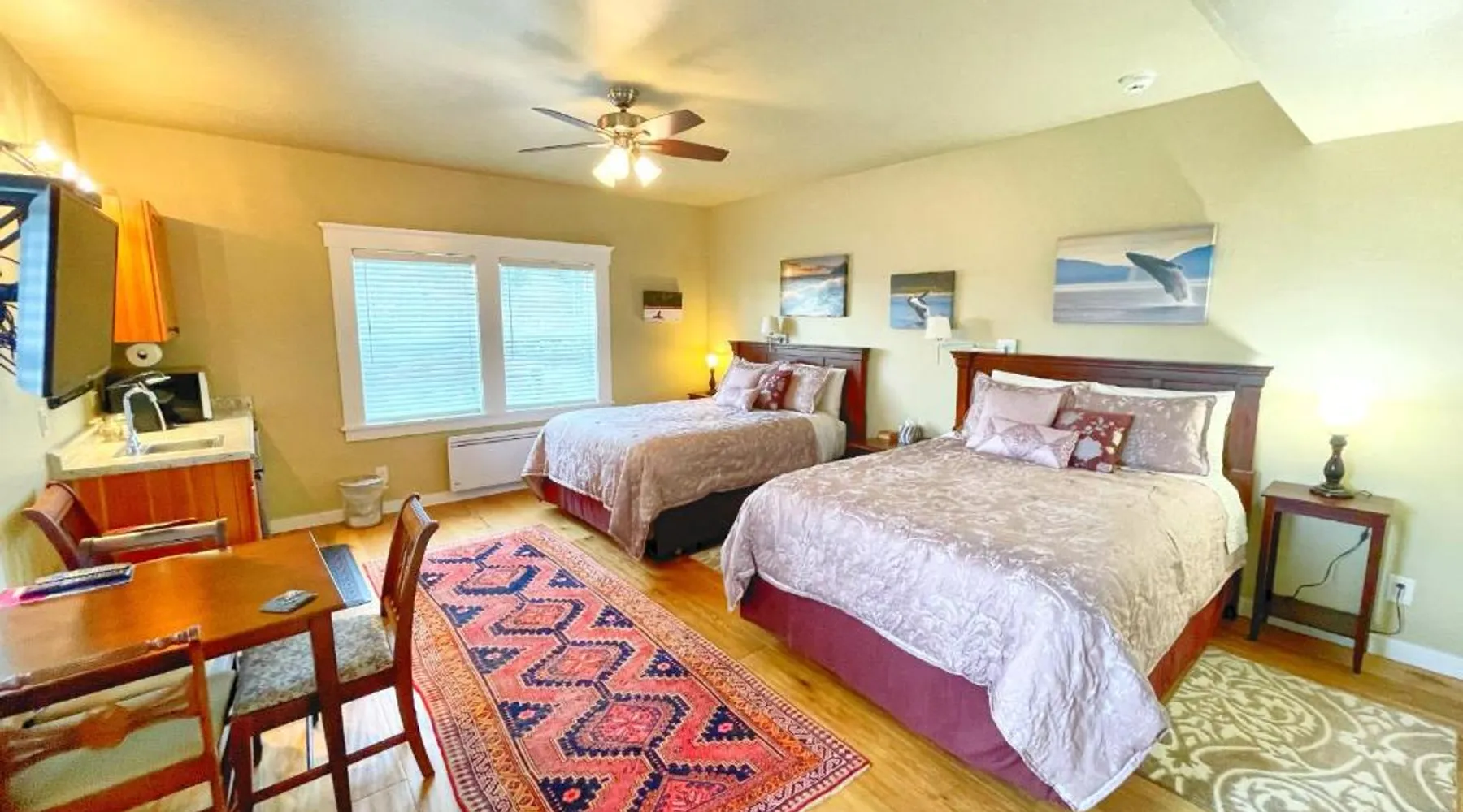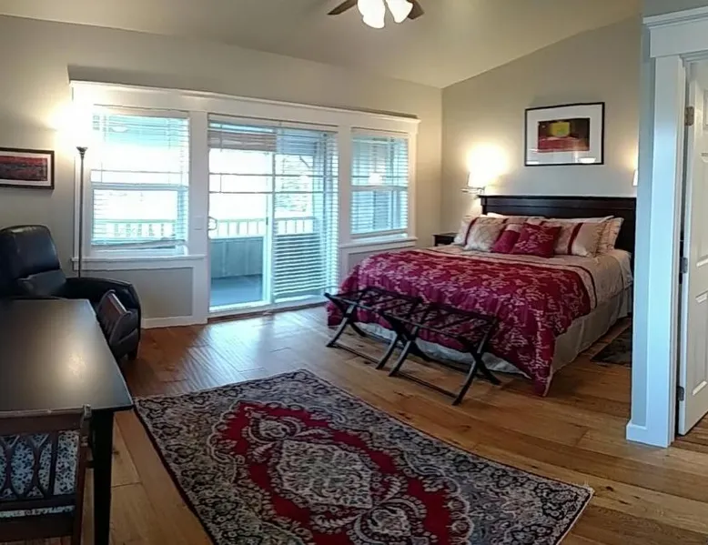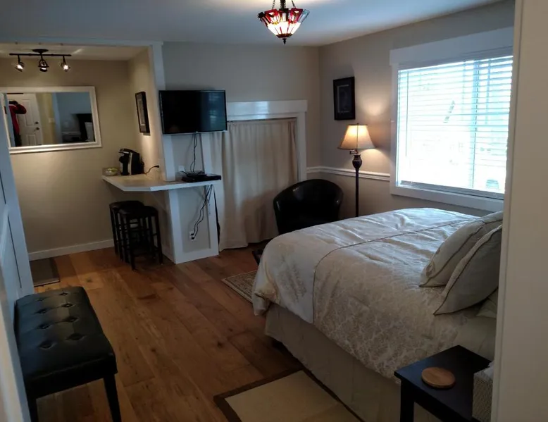 Historic Charm: Friday Harbor Grand in Friday Harbor offers a 5-star bed and breakfast experience within a historic building. Guests enjoy sea views, a garden, terrace, and free WiFi. Comfortable Accommodations: Rooms feature private bathrooms, kitchenettes, and amenities such as bathrobes, tea and coffee makers, and amenities such as bathrobes, tea and coffee makers, hypoallergenic, hairdryers, and free toiletries. Exceptional Services: The property provides free bicycles, airport shuttle, concierge, evening entertainment, and breakfast in the room. Additional services include laundry, room service, and barbecue facilities. Prime Location: Located a few steps from Friday Harbor Airport, guests can enjoy hiking and cycling. The reception staff speak German, English, and Farsi. Please note: Pets are allowed in this room.