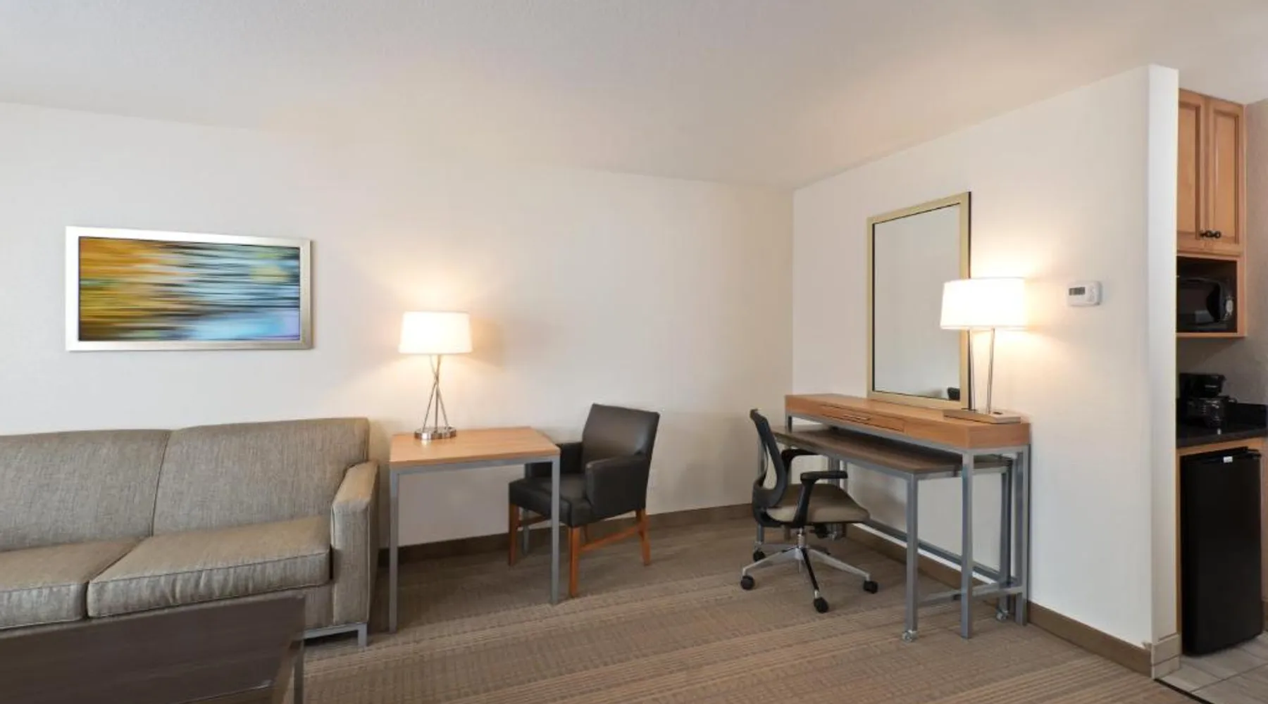 Featuring an indoor pool, Holiday Inn Express Hotel & Suites Fraser Winter Park Area is 40 minutes’ drive from Lake Granby. WiFi is provided. A free continental breakfast is served daily. Coffee is served 24/7 at the front desk. Each air-conditioned room offers a seating area with a cable TV and an private bathroom with a hairdryer at Holiday Inn Express Hotel & Suites Fraser Winter Park Area. A microwave, a small refrigerator and a dining area are also included. Guests can take advantage of a hot tub, a fitness center and a business center at Fraser Winter Park Area Holiday Inn Express Hotel & Suites. A 24-hour reception is available to assist guests. Free parking is provided on site. Winter Park Ski Area is 10 minutes’ drive from the lodge. Arapaho National Forest is 29 mi from Holiday Inn Express Hotel & Suites Fraser Winter Park Area. This air-conditioned room offers free Wi-Fi, a seating area with a cable TV and an private bathroom with a hairdryer. A microwave, a small refrigerator and a dining area are also included.
