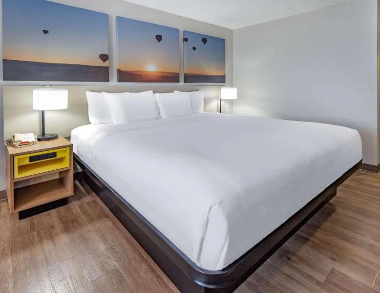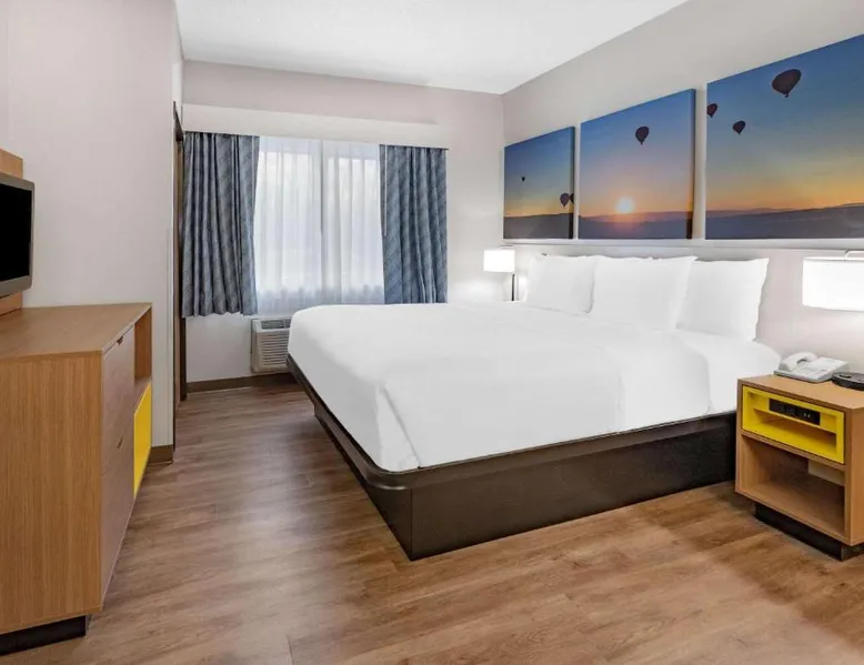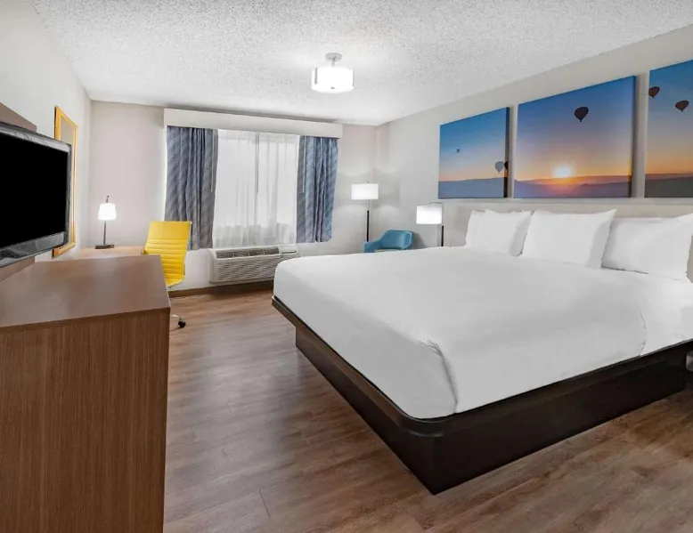 Comfortable Accommodations: Days Inn by Wyndham Bernalillo in Bernalillo offers family rooms with air-conditioning, private bathrooms, and free WiFi. Each room includes a TV, work desk, and free toiletries. Leisure Facilities: Guests can enjoy an indoor swimming pool, hot tub, and casino. Additional amenities include a elevator, 24-hour front desk, and free on-site private parking. Breakfast and Dining: A continental breakfast is served with juice, fresh pastries, and fruits. The hotel also provides a kitchenette with a refrigerator, microwave, and stovetop. Location and Attractions: Located 19 mi from Albuquerque International Sunport, the hotel is near Cliff's Amusement Park (14 mi) and the New Mexico Museum of Natural History and Science (20 mi). Guests appreciate the attentive staff and comfortable beds. Providing free toiletries, this suite includes a private bathroom with a bath, a shower and a hairdryer. In the well-fitted kitchen, guests will find a stovetop, a refrigerator, an oven and a microwave. The suite features carpeted floors, a seating area with a flat-screen TV with cable channels, air conditioning, a tea and coffee maker, as well as a safe deposit box. The unit offers 1 bed.