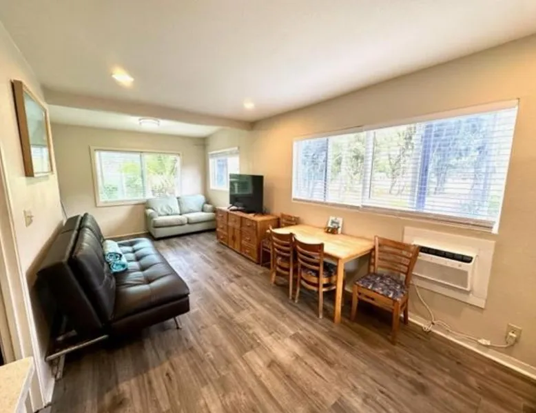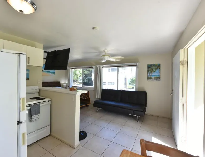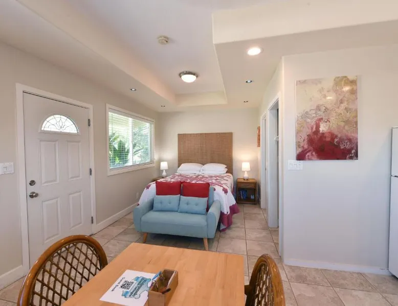 Comfortable Accommodations: Waimanalo Beach Cottages in Waimanalo offers family rooms with private bathrooms, garden and mountain views, and modern amenities including free WiFi, air-conditioning, and soundproofing. Outdoor Spaces: Guests can relax in the garden or on the terrace, enjoy the outdoor seating area, and take advantage of barbecue facilities. The property features a private check-in and check-out service. Local Attractions: Waimanalo Beach is just a few steps away, while Hanauma Bay Nature Preserve lies 7.5 mi nearby. Honolulu International Airport is 19 mi from the lodge. Activities: Yoga classes and hiking are available for guests, providing opportunities to explore the surrounding area. This spacious bungalow consists of 1 living room, 2 separate bedrooms and 1 bathroom with a shower and free toiletries. The fully equipped kitchen features a stovetop, a refrigerator, kitchenware and an oven. The bungalow provides a flat-screen TV with streaming services, a private entrance, soundproof walls, a coffee machine as well as garden views. The unit offers 2 beds.