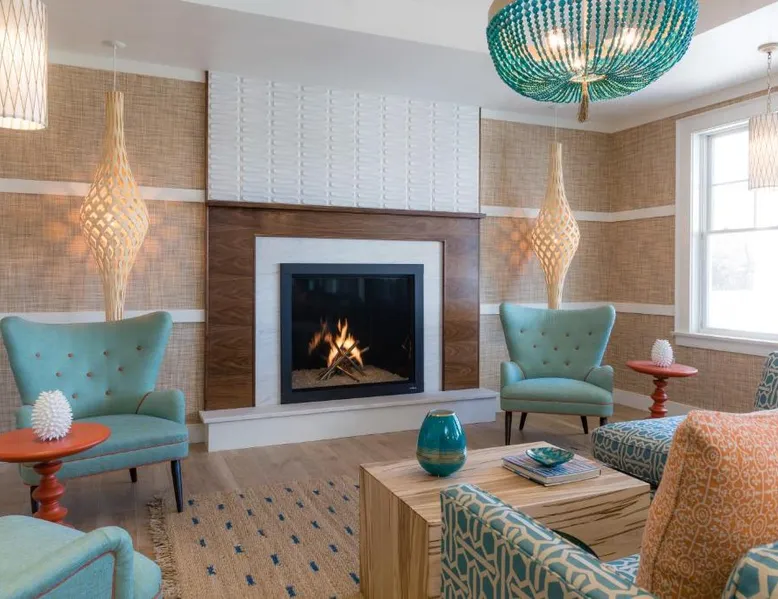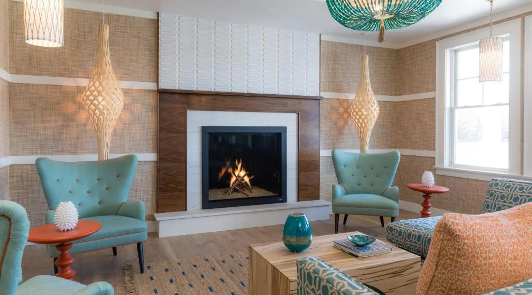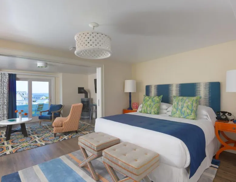 Comfortable Accommodations: The Break Hotel in Narragansett offers family rooms with sea or pool views, balconies, and modern amenities including air-conditioning, private bathrooms, and free WiFi. Wellness and Leisure: Guests can enjoy spa facilities, a saltwater swimming pool, sauna, fitness center, sun terrace, and free use of bicycles. Additional amenities include an outdoor fireplace, fitness room, and free on-site private parking. Dining Experience: The modern, family-friendly restaurant serves American cuisine with an à la carte breakfast. Dinner is available in a relaxed setting. Prime Location: Located 17 mi from Block Island State Airport, the hotel is a 19-minute walk from Roger Wheeler State Beach. Nearby attractions include Towers In Narragansett (4.3 mi) and Rosecliff Mansion (21 mi). The fireplace is the standout feature of this suite. This suite includes 1 living room, 1 separate bedroom and 1 bathroom with a hairdryer and free toiletries. The air-conditioned suite offers a flat-screen TV with cable channels, a coffee machine, a seating area, an iPad as well as sea views. The unit has 2 beds.