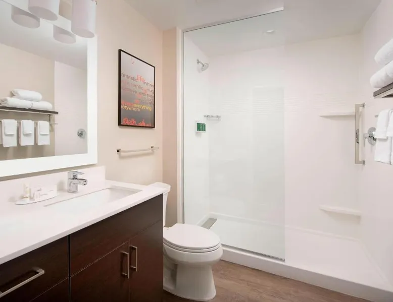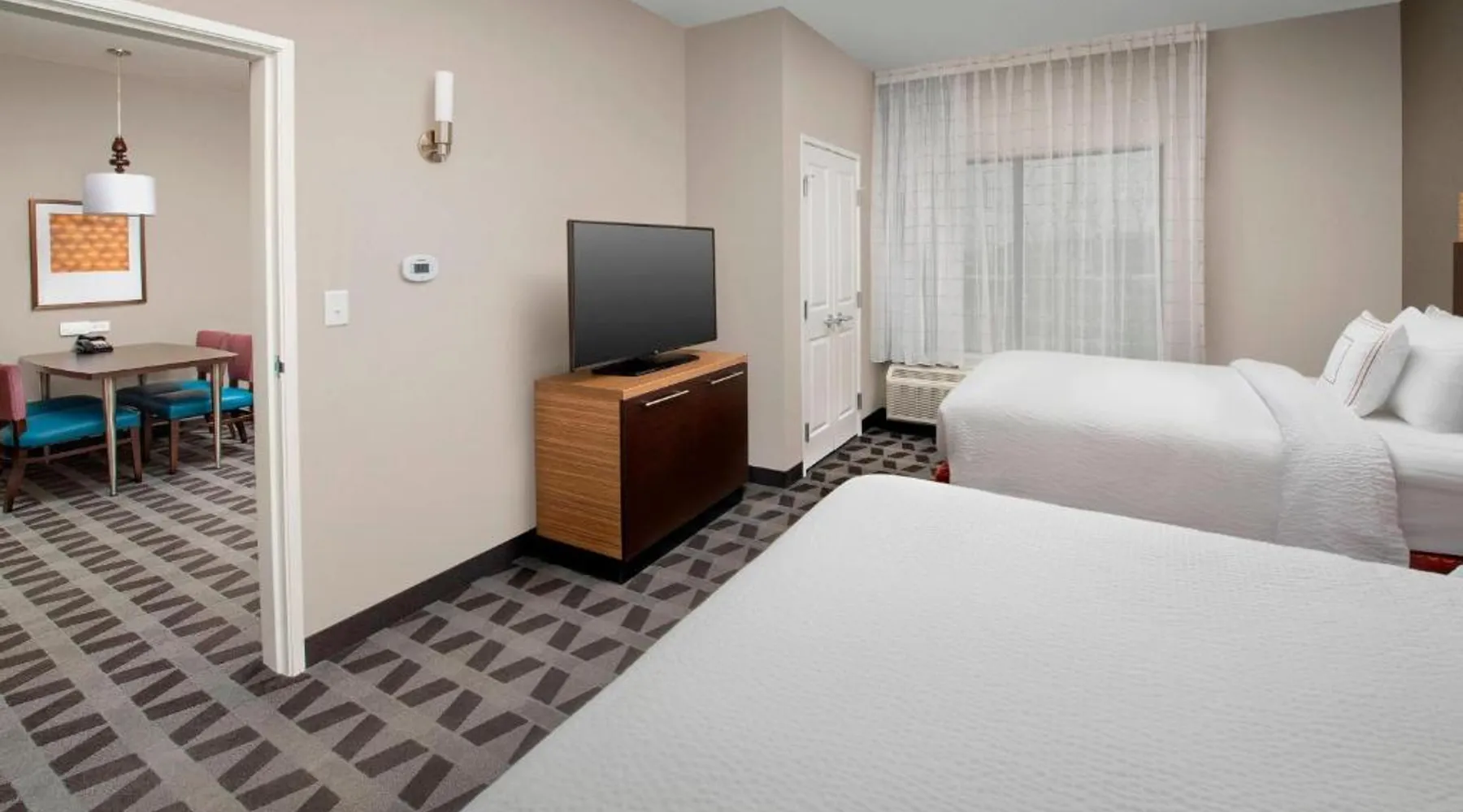 Comfortable Accommodations: TownePlace Suites by Marriott College Park in College Park offers comfortable rooms with air-conditioning, private bathrooms, and modern amenities. Each room includes a work desk, sofa bed, and soundproofing for a relaxing stay. Exceptional Facilities: Guests enjoy free WiFi, complimentary bicycles, and an outdoor fireplace. The hotel features a 24-hour front desk, business area, laundry service, and an outdoor seating area. Additional amenities include streaming services and a child-friendly buffet. Delicious Breakfast: A complimentary American buffet breakfast is served daily, including warm dishes, fresh pastries, fruits, and juice. The breakfast is highly appreciated by guests for its quality and variety. Prime Location: Located 17 mi from Ronald Reagan Washington National Airport, the hotel is near attractions such as Walter E Washington Convention Center (11 mi) and The National Mall (12 mi). Guests appreciate the friendly staff and comfortable rooms. The double room features a carpeted floor, heating, as well as a private bathroom featuring a shower and a hairdryer. The spacious air-conditioned double room offers a flat-screen TV with streaming services, soundproof walls, a wardrobe and parquet floors. The unit offers 2 beds.