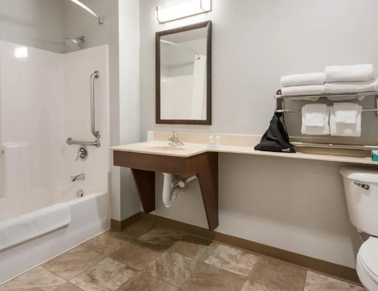 Comfortable Accommodations: My Place Hotel-Council Bluffs/Omaha East in Council Bluffs offers family rooms with air-conditioning, private bathrooms, and fully equipped kitchens. Each room includes a work desk, TV, and free WiFi. Exceptional Facilities: Guests enjoy an indoor swimming pool, fitness center, and free on-site private parking. Additional amenities include a minimarket, business area, and express check-in and check-out services. Convenient Location: Located 5.6 mi from Eppley Airfield and less than 0.6 mi from Mid-America Center, the hotel is near attractions such as Td Ameritrade Park Omaha and The Durham Museum. Free toiletries and a dining area enhance the stay. Guest Satisfaction: Highly rated for room cleanliness, attentive staff, and well-equipped kitchens, My Place Hotel-Council Bluffs/Omaha East ensures a comfortable and enjoyable experience. Featuring free toiletries, this quadruple room includes a private bathroom with a bath, a shower and a hairdryer. Meals can be prepared in the kitchen, which features a stovetop, a refrigerator, a microwave and a toaster. The quadruple room features air conditioning, a tea and coffee maker, a dining area, a wardrobe and a flat-screen TV with cable channels. The unit has 2 beds.