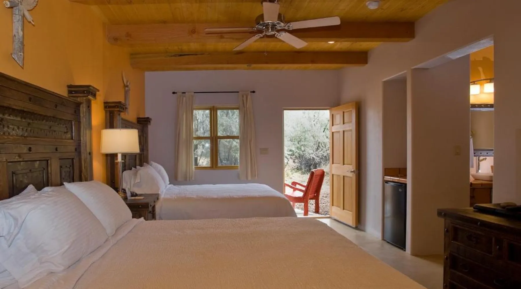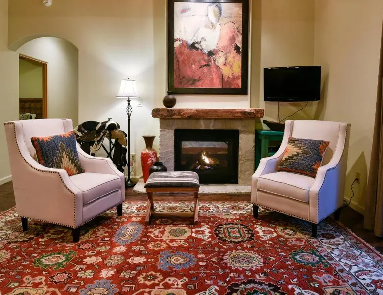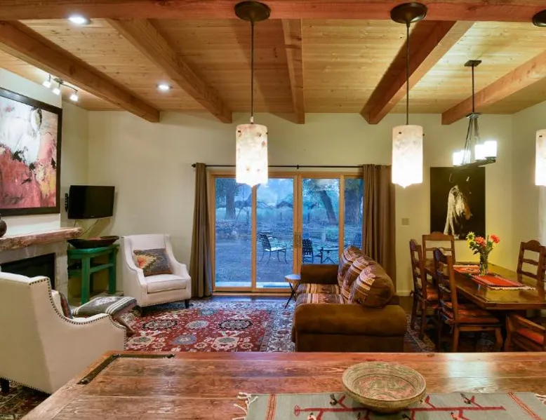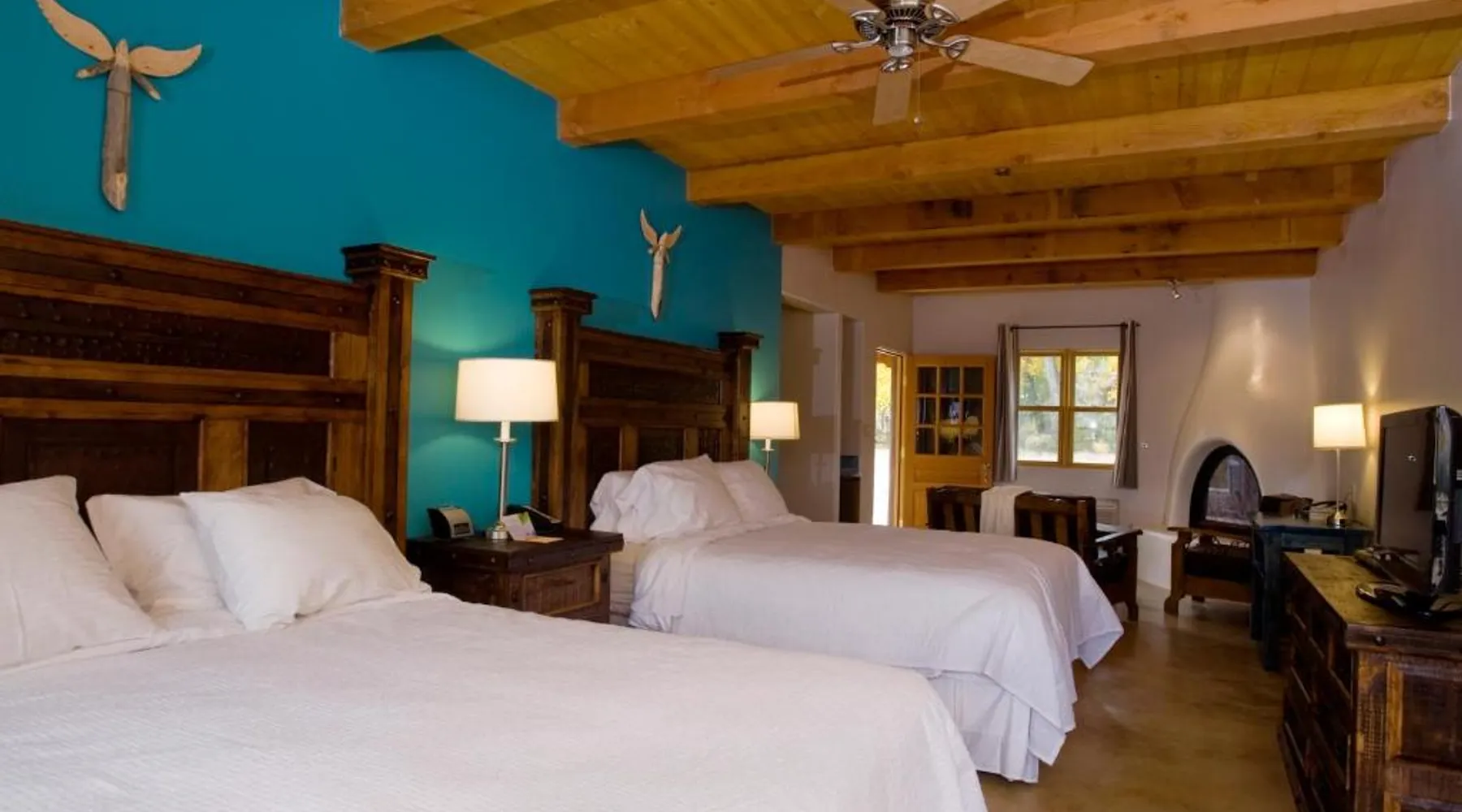 Offering an onsite restaurant, this Abiquiu inn is adjacent to the Georgia O’Keeffe Studio. Each room includes free Wi-Fi. Each air-conditioned room features a seating area, a fireplace and a cable TV at Abiquiu Inn. An private bathroom is also offered. Café Abiquiu serves Southwestern cuisine daily at Abiquiu Inn. A courtyard with a fountain is available for guests to enjoy. A gift shop featuring local artists is also provided on site. Ghost Ranch is 20 minutes’ drive from Abiquiu Inn. Plaza Blanca is 4 miles from the hotel This air-conditioned room features a seating area, a fireplace and a cable TV. An private bathroom is also included.