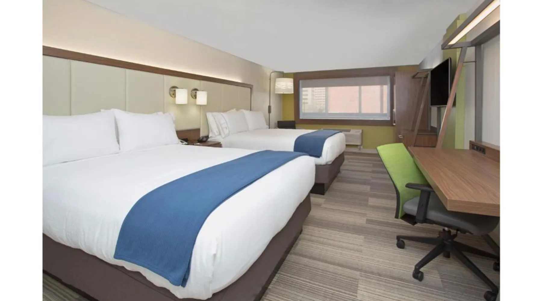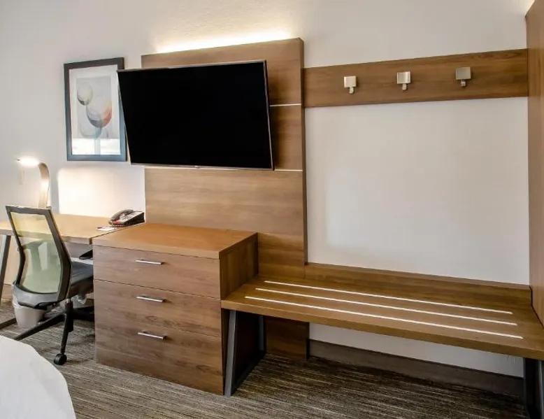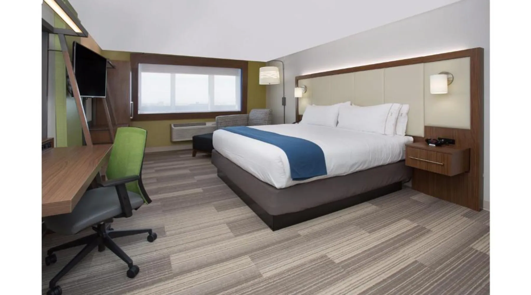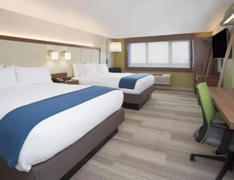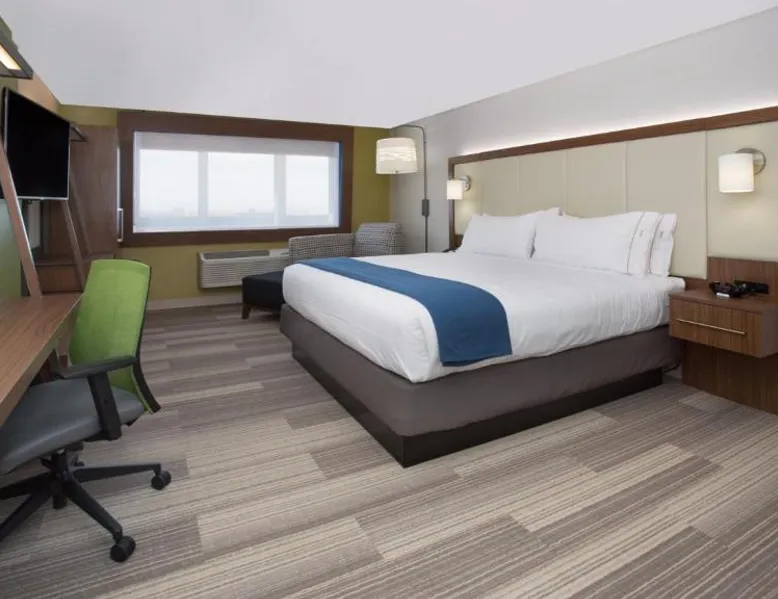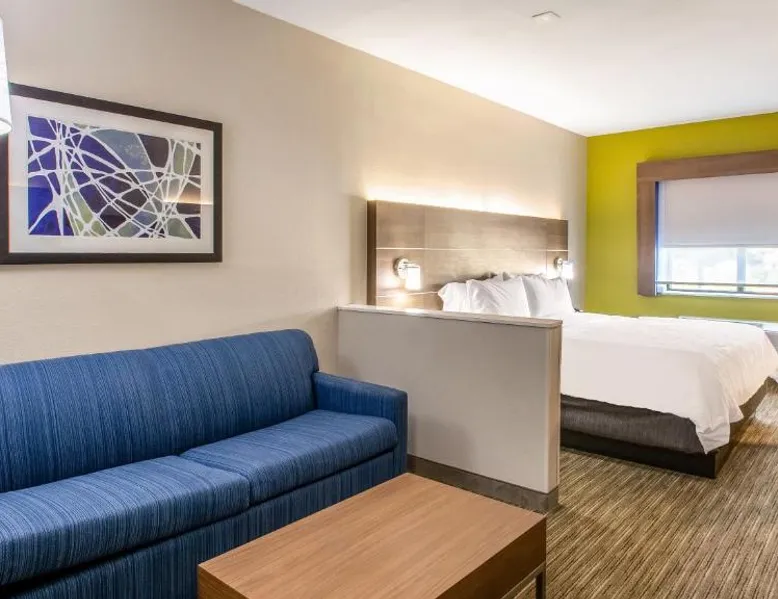 Comfortable Accommodations: Holiday Inn Express & Suites - Olathe South by IHG in Olathe offers family rooms with air-conditioning, private bathrooms, and free WiFi. Each room includes a work desk, TV, and wardrobe, ensuring a pleasant stay. Leisure Facilities: Guests can enjoy a saltwater swimming pool, indoor pool, and fitness center. Additional amenities include a fitness room, outdoor seating area, and free on-site private parking. Convenient Location: Located 36 mi from Kansas City International Airport, the hotel is near attractions such as the National World War I Museum at Liberty Memorial (22 mi) and Union Station Kansas City (23 mi). Free on-site private parking is available. This air-conditioned double room is consisted of of a flat-screen TV with cable channels and a private bathroom. The unit has 1 bed.
