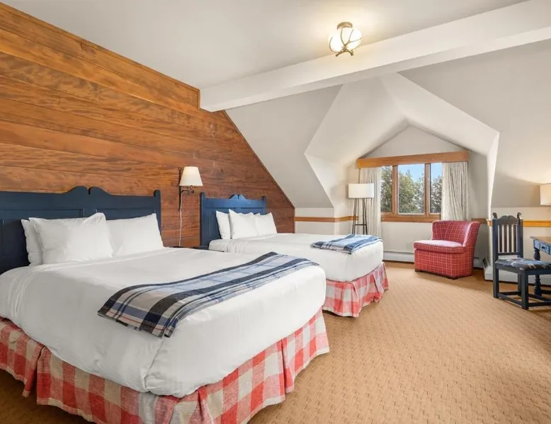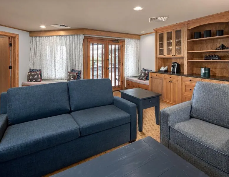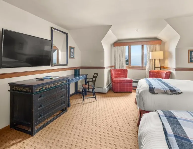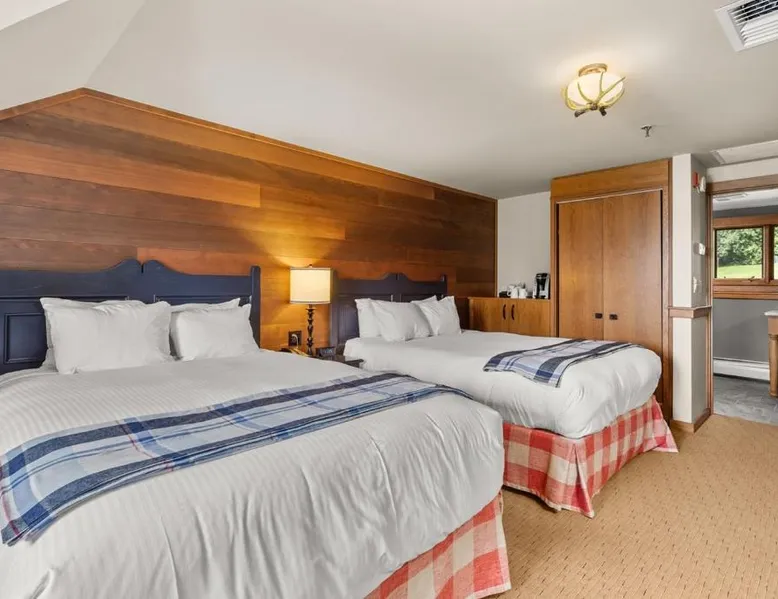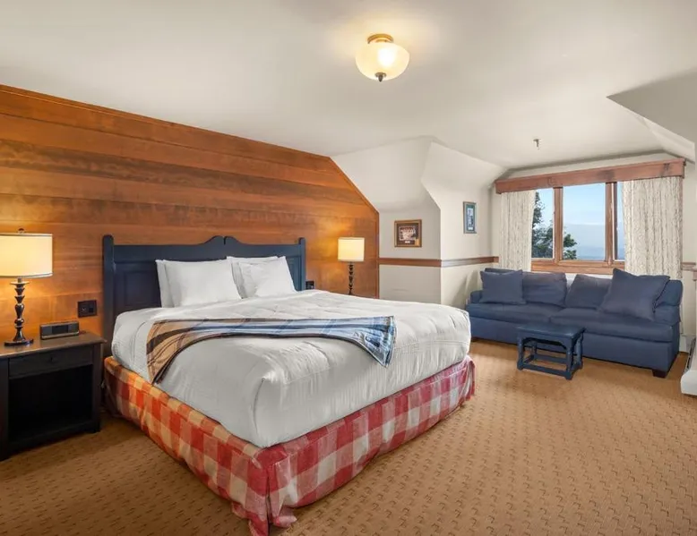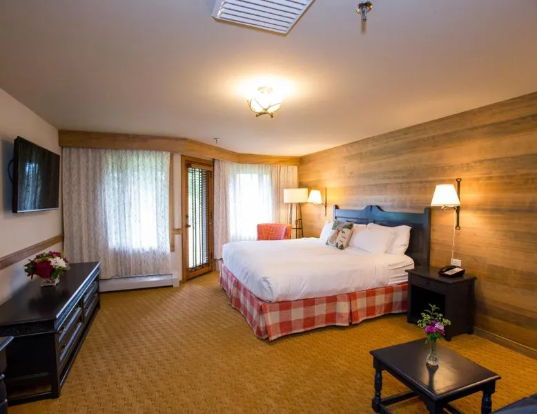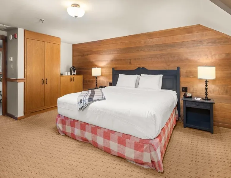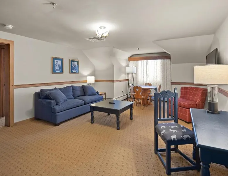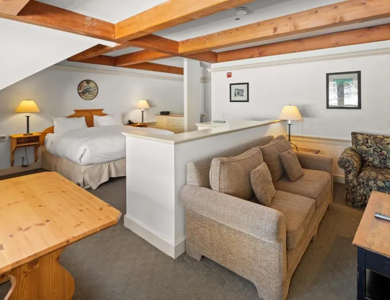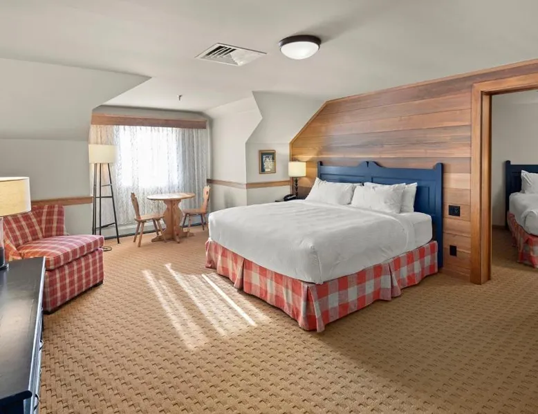 A Little of Austria.A Lot of Vermont! Situated on 2,500 acres in beautiful Stowe, Vermont, von Trapp Family Lodge & Resort (yes…that von Trapp family) is a unique mountain resort featuring Austrian-inspired architecture and European-style accommodations. The Lodge offers stunning mountain views, old-world comforts, and impeccable service, along with activities for every season. In the area surrounding the von Trapp Family Lodge & Resort, guests can easily discover cross-country skiing trails, local wineries and scenic hiking paths. Wine and beer enthusiasts also have a place to experience new flavors: The Wine Cellar and von Trapp Brewing, serving only the best wines and lagers brewed onsite in a state-of-the-art facility. This 3rd floor suite features a master bedroom with a king size bed, whirlpool tub and walk-in shower. The living room includes a queen size sofa bed, wood burning fireplace or wood stove, a half bathroom, wet bar with a refrigerator and private balcony.