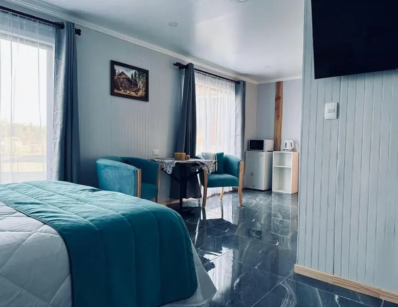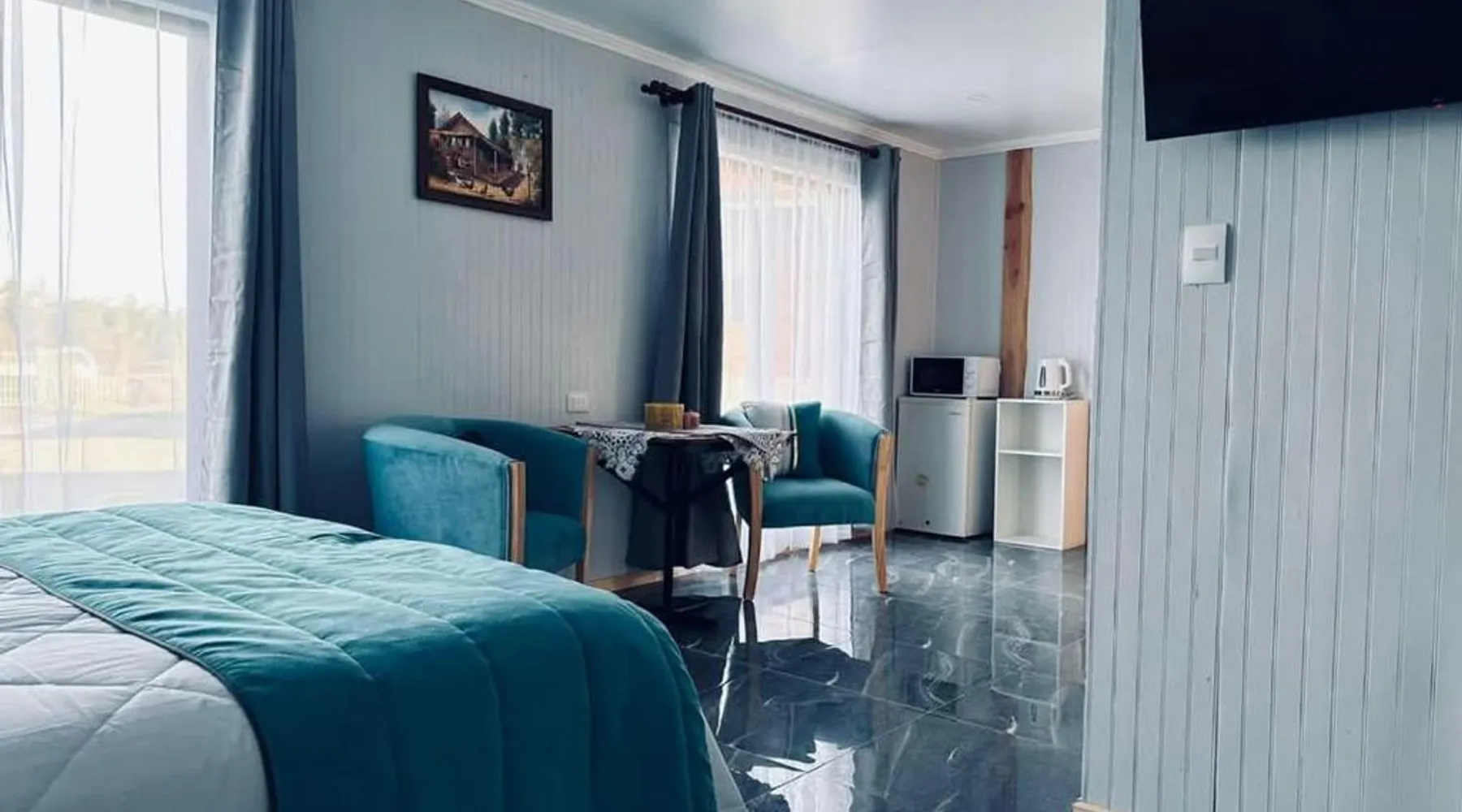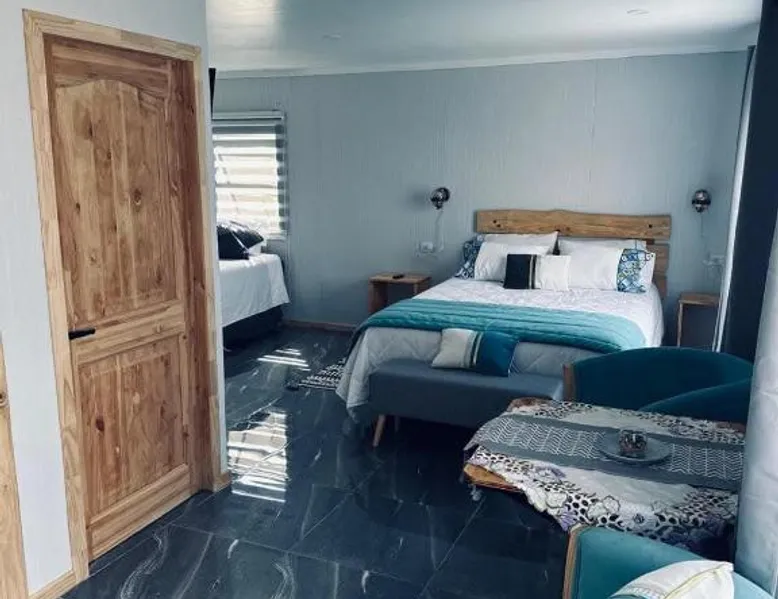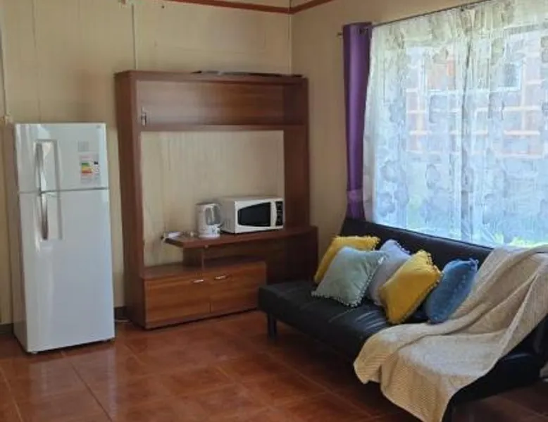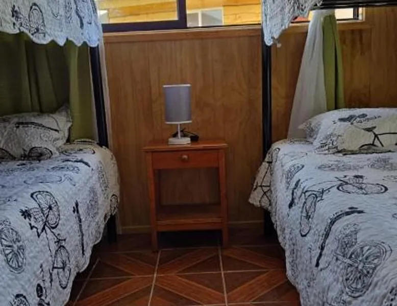 Comfortable Accommodations: Cabañas El Ermitaño in Puerto Montt offers family rooms with private bathrooms, kitchen facilities, and terraces. Each unit includes a patio, dining table, and wardrobe. Outdoor Spaces: Guests can relax in the garden or on the terrace, enjoying mountain views. The ground-floor units provide easy access to the outdoor areas. Convenient Amenities: The lodge provides free on-site private parking, a private check-in and check-out service, and a reception staffed with Spanish-speaking personnel. Local Attractions: Located 8.1 mi from El Tepual Airport, the property is near Pablo Fierro Museum (21 mi), Chinquihue Stadium (5 mi), and Lutheran Temple (13 mi). This bungalow includes 1 living room, 2 separate bedrooms and 1 bathroom with a shower. The fully equipped kitchen has a refrigerator, kitchenware and an oven. Boasting a terrace, this bungalow also offers a tea and coffee maker, a wardrobe and a TV with cable channels. The unit has 4 beds.