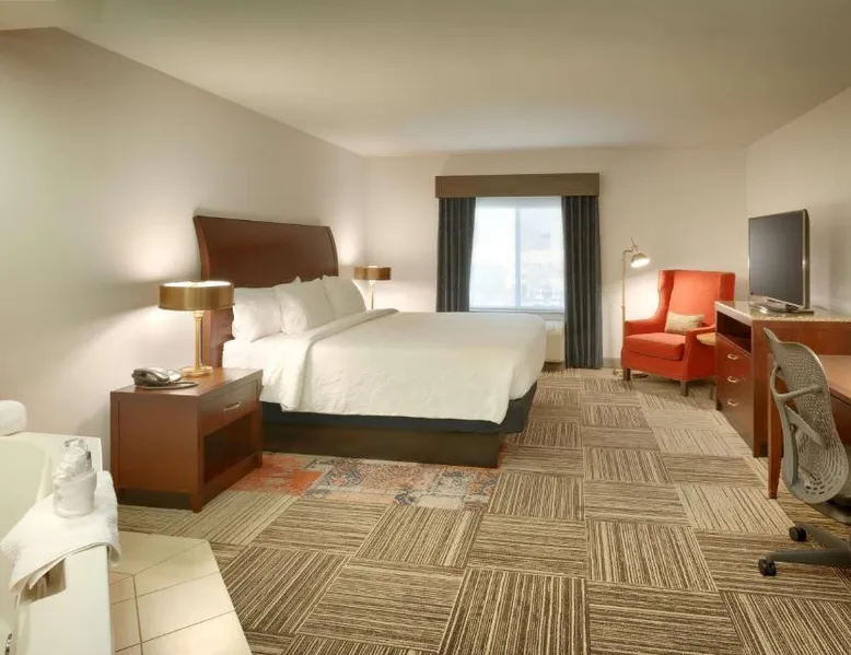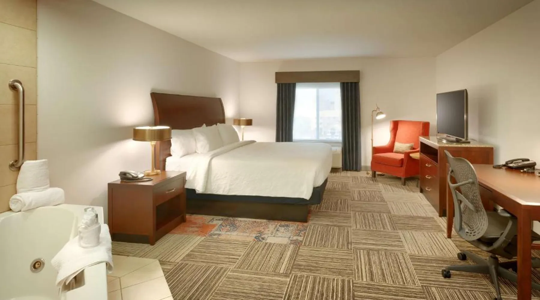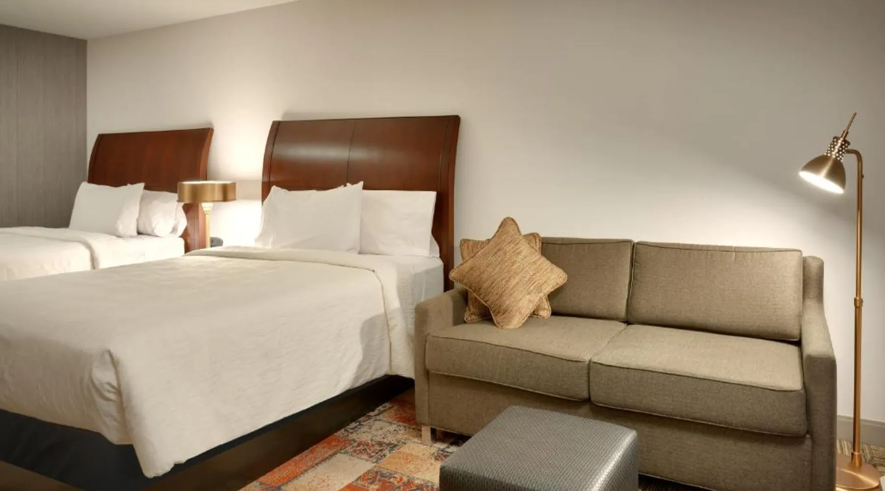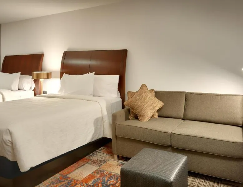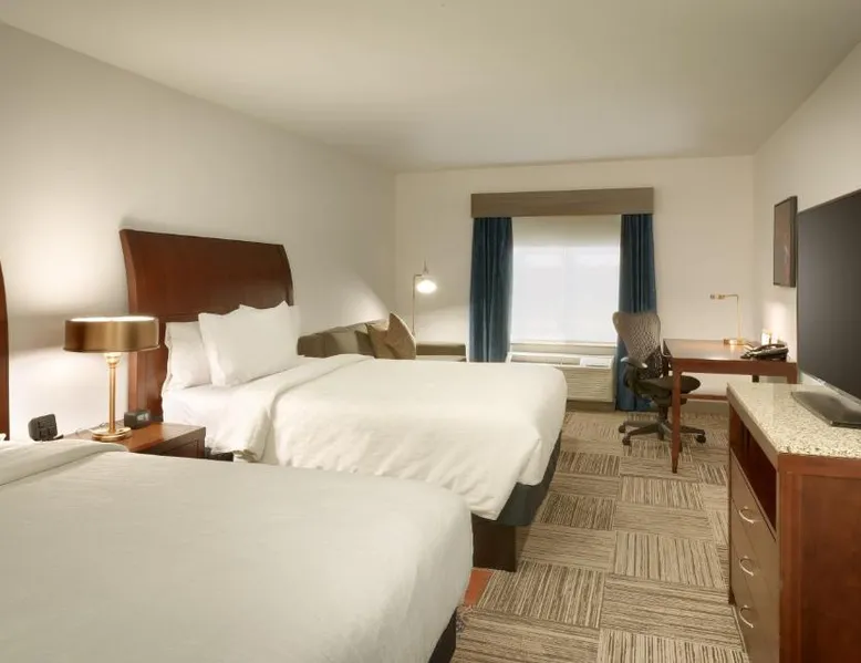 Comfortable Accommodations: Hilton Garden Inn Salt Lake City/Sandy in Sandy offers family rooms with air-conditioning, private bathrooms, and modern amenities. Each room includes a work desk, free toiletries, and a TV. Dining and Leisure: The family-friendly restaurant serves American cuisine in a traditional ambiance. Guests can enjoy dinner at the on-site restaurant and relax at the bar. Additional facilities include a fitness center, indoor swimming pool, and hot tub. Convenient Location: Located 17 mi from Salt Lake City International Airport, the hotel is near Mountain America Expo Center (1.2 mi) and attractions such as Salt Lake Tabernacle (16 mi) and Temple Square (16 mi). Free on-site parking is available. Guest Services: The hotel offers a 24-hour front desk, daily housekeeping, room service, and luggage storage. Additional amenities include a lounge, fitness room, and outdoor seating area. Highly rated by guests. This air-conditioned quadruple room is consisted of of a TV with streaming services and a private bathroom. The unit has 2 beds.