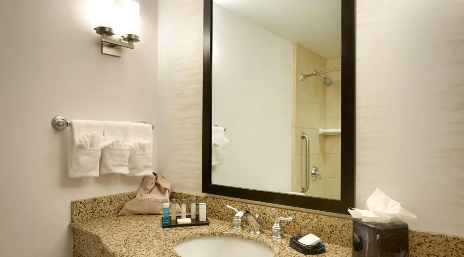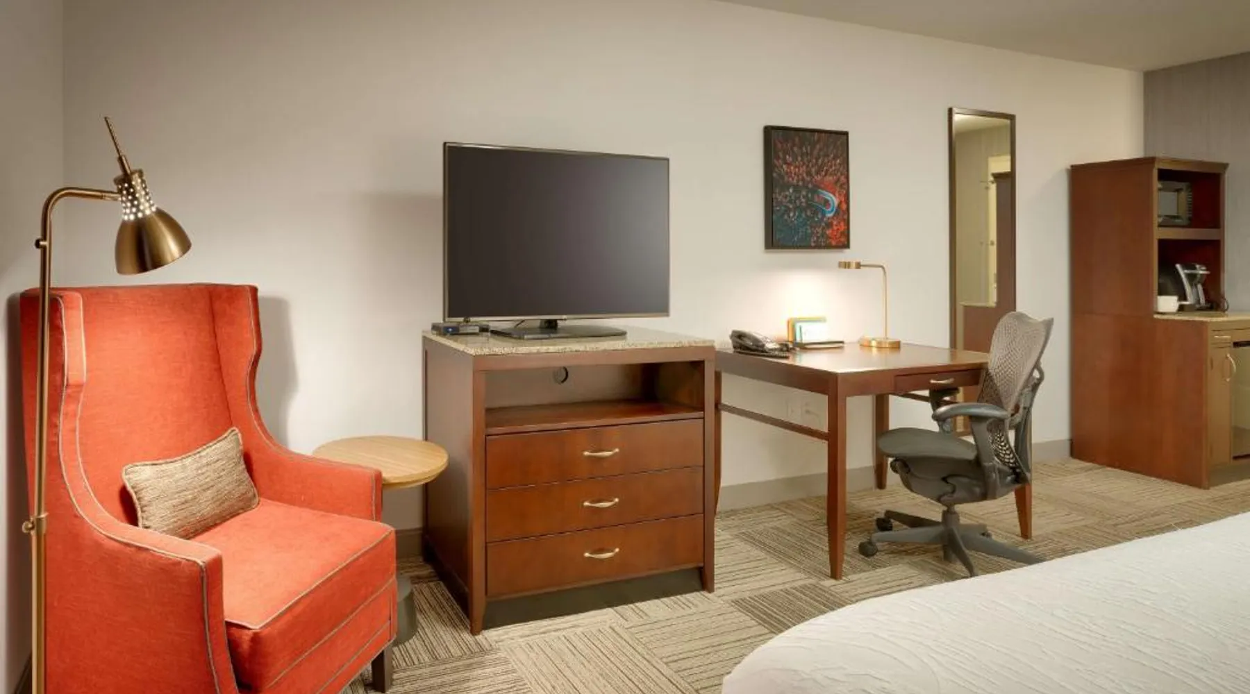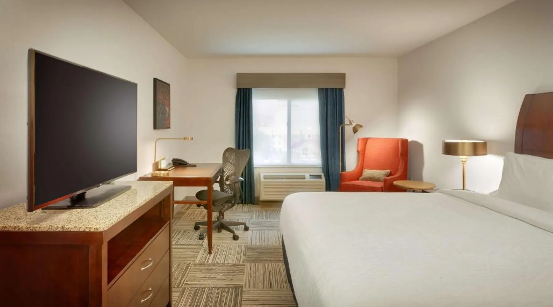 Comfortable Accommodations: Hilton Garden Inn Salt Lake City/Sandy in Sandy offers family rooms with air-conditioning, private bathrooms, and modern amenities. Each room includes a work desk, free toiletries, and a TV. Dining and Leisure: The family-friendly restaurant serves American cuisine in a traditional ambiance. Guests can enjoy dinner at the on-site restaurant and relax at the bar. Additional facilities include a fitness center, indoor swimming pool, and hot tub. Convenient Location: Located 17 mi from Salt Lake City International Airport, the hotel is near Mountain America Expo Center (1.2 mi) and attractions such as Salt Lake Tabernacle (16 mi) and Temple Square (16 mi). Free on-site parking is available. Guest Services: The hotel offers a 24-hour front desk, daily housekeeping, room service, and luggage storage. Additional amenities include a lounge, fitness room, and outdoor seating area. Highly rated by guests. This air-conditioned quadruple room is consisted of of a TV with streaming services and a private bathroom. The unit has 2 beds.