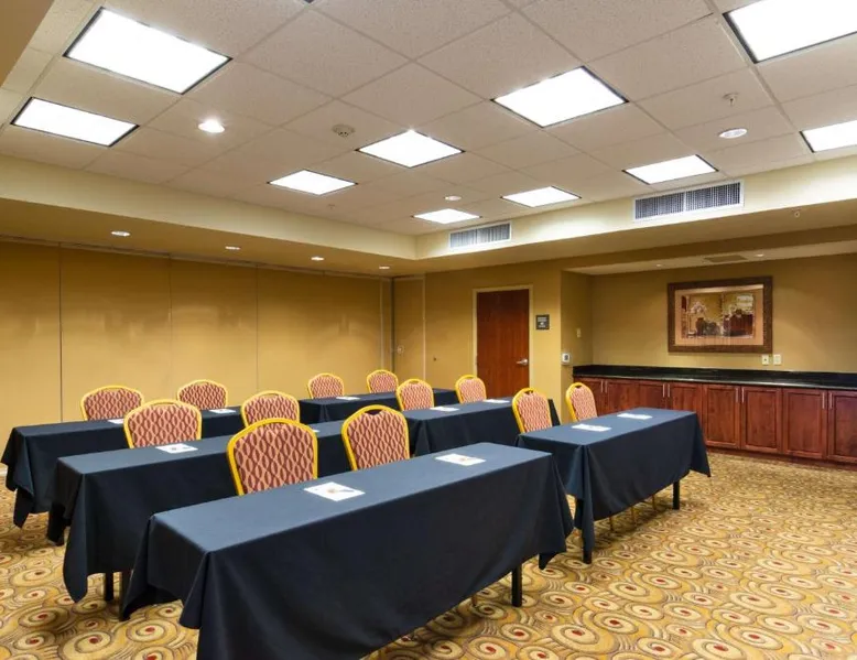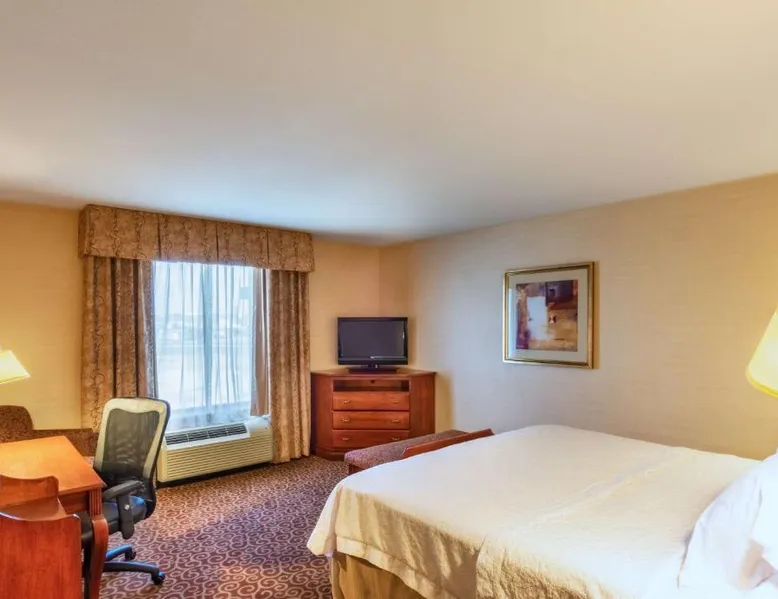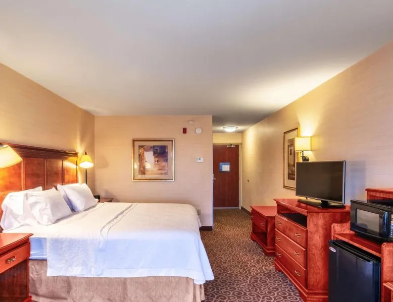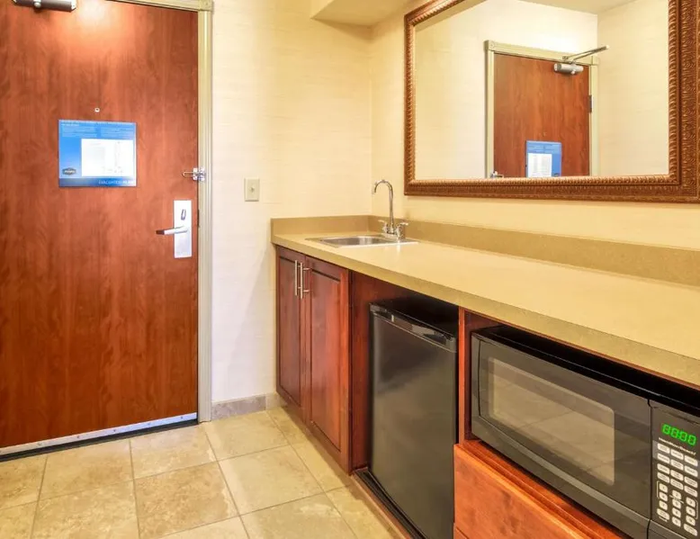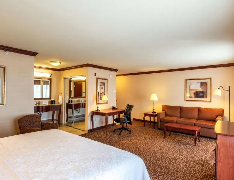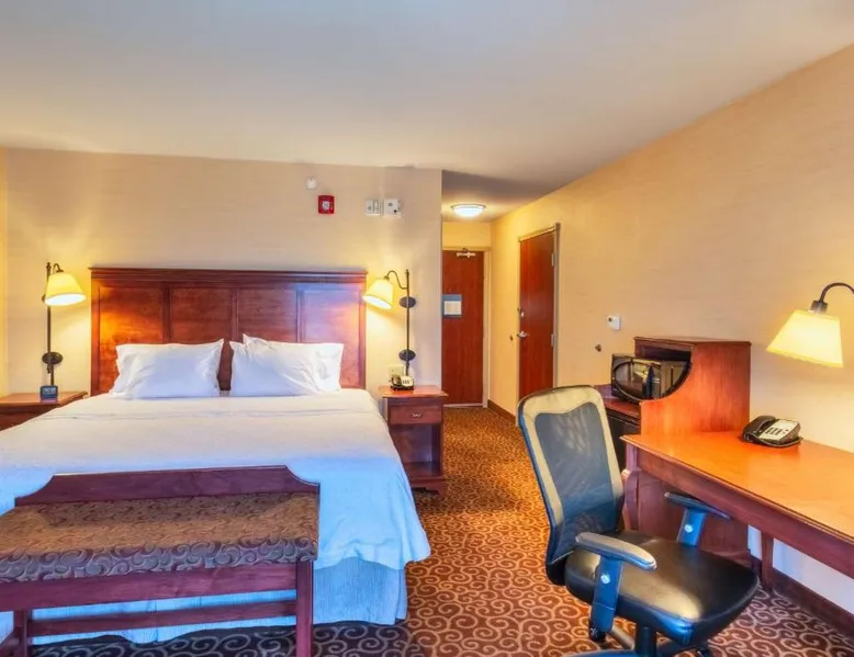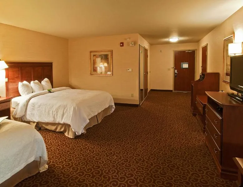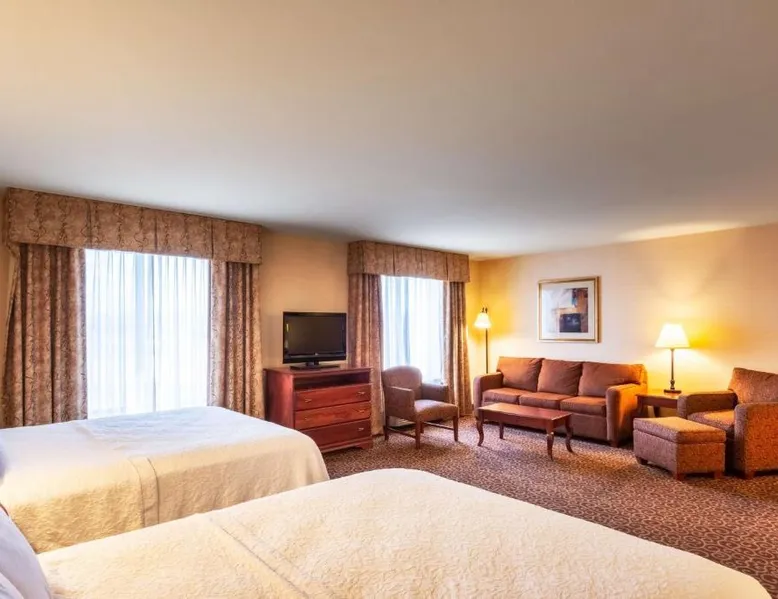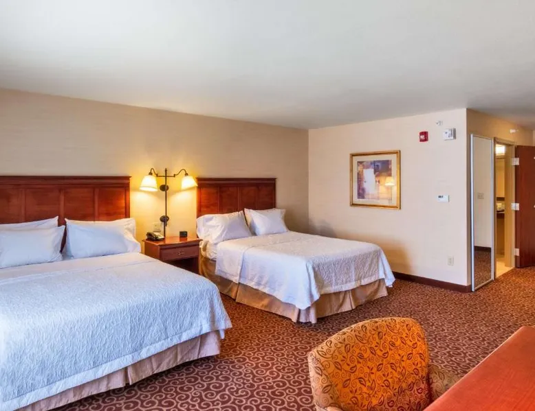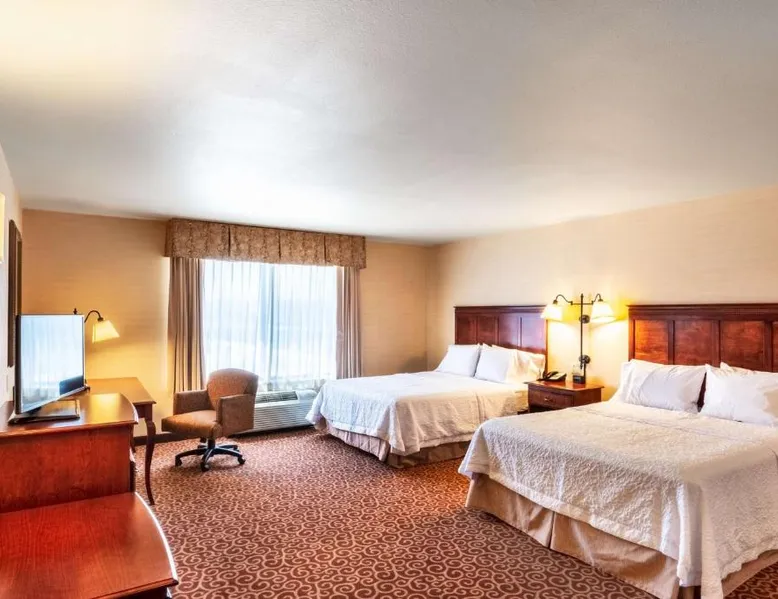 Comfortable Accommodations: Hampton Inn Rawlins in Rawlins offers family rooms with private bathrooms, featuring tea and coffee makers, hairdryers, refrigerators, free toiletries, microwaves, showers, and TVs. Each room includes a sofa bed and seating area. Exceptional Facilities: Guests can enjoy spa facilities, a spa and wellness center, fitness center, indoor swimming pool, and free WiFi. Additional amenities include a hot tub, lounge, fitness room, elevator, 24-hour front desk, business area, outdoor seating, barbecue facilities, and car hire. Convenient Location: Located 92 mi from Laramie Regional Airport, the hotel provides free on-site parking. Highly rated for its attentive staff, room cleanliness, and breakfast provided by the property. This quadruple room provides a tea and coffee maker and a TV. The unit offers 2 beds.