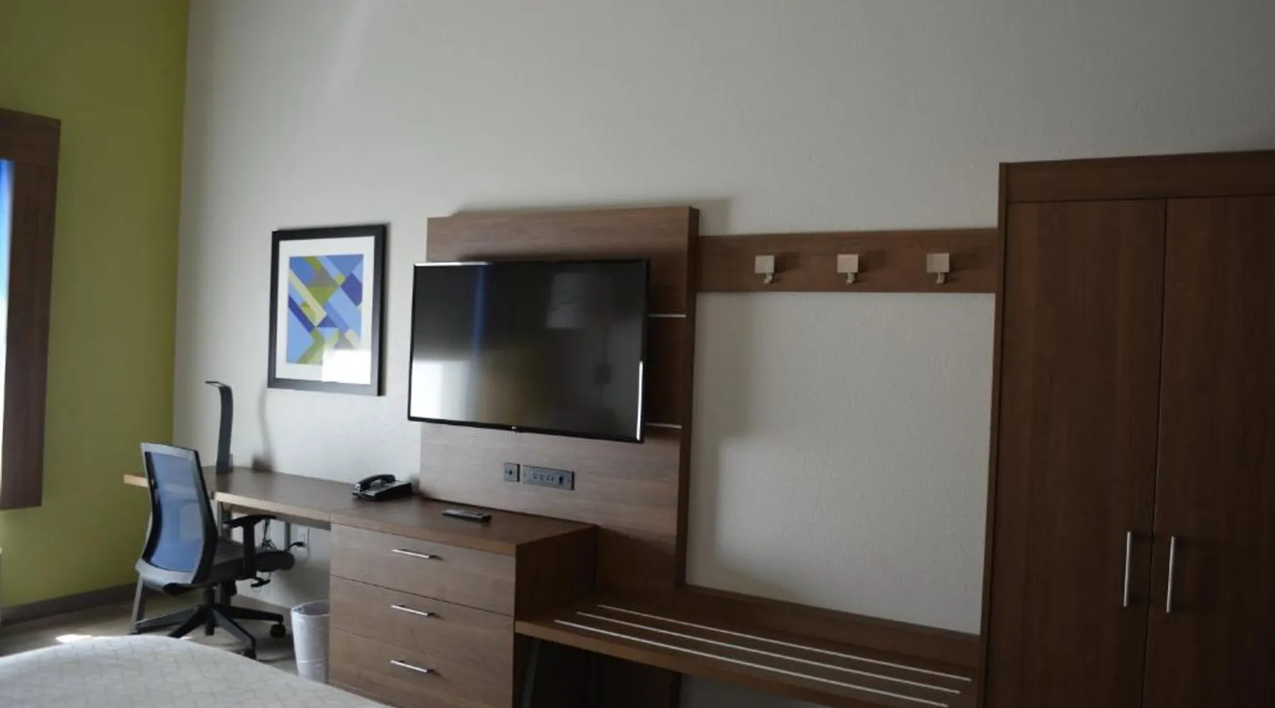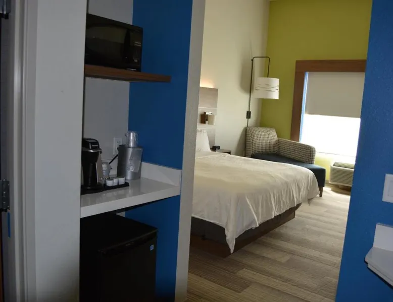 Comfortable Accommodations: Holiday Inn Express & Suites - Liberal by IHG in Liberal offers rooms with air-conditioning, private bathrooms, and modern amenities including free toiletries, showers, and TVs. Each room features a tea and coffee maker, electric kettle, refrigerator, and microwave. Leisure Facilities: Guests can enjoy an indoor swimming pool and a fitness center. The hotel provides free on-site private parking and a buffet breakfast. Additional amenities include a dining area and a comfortable seating area. Convenient Location: Located 2.5 mi from Liberal Mid-America Regional Airport, the hotel is highly rated for its room cleanliness, breakfast provided by the property, and attentive staff. The spacious double room provides air conditioning, a tea and coffee maker, as well as a private bathroom featuring a bath and a shower. This double room consists of a dining area and a flat-screen TV with cable channels. The unit offers 2 beds.