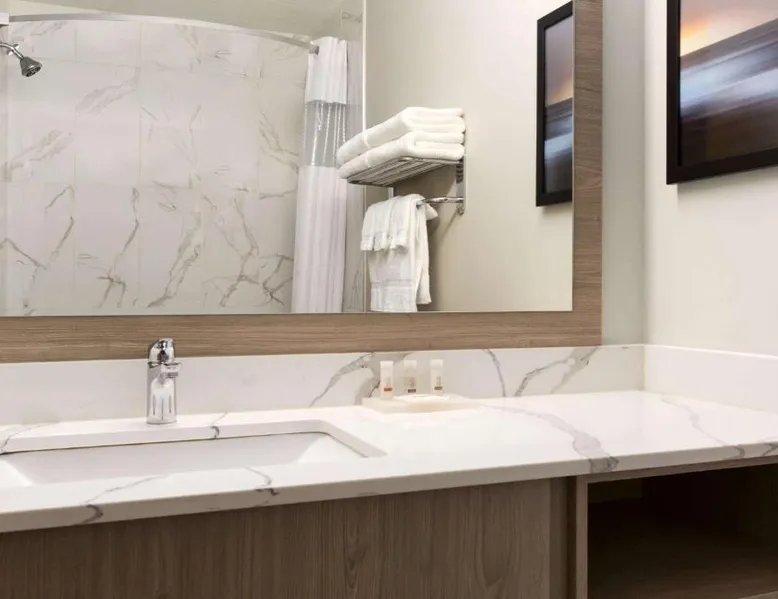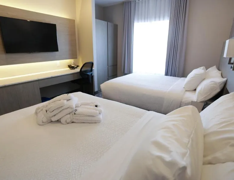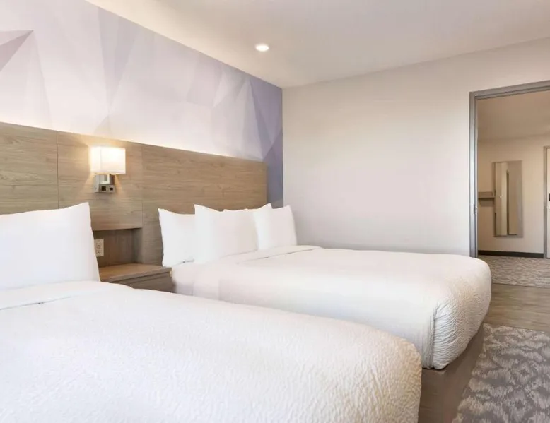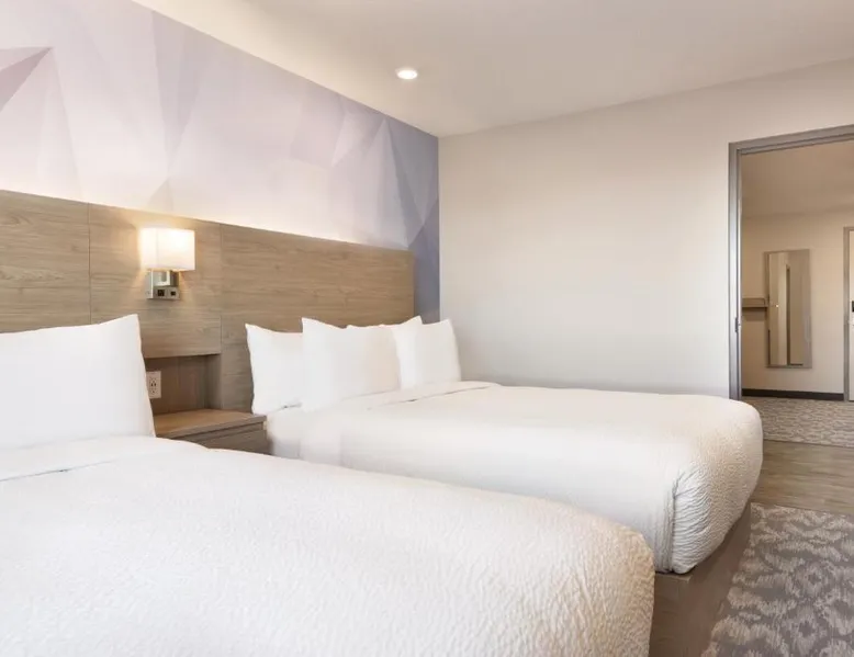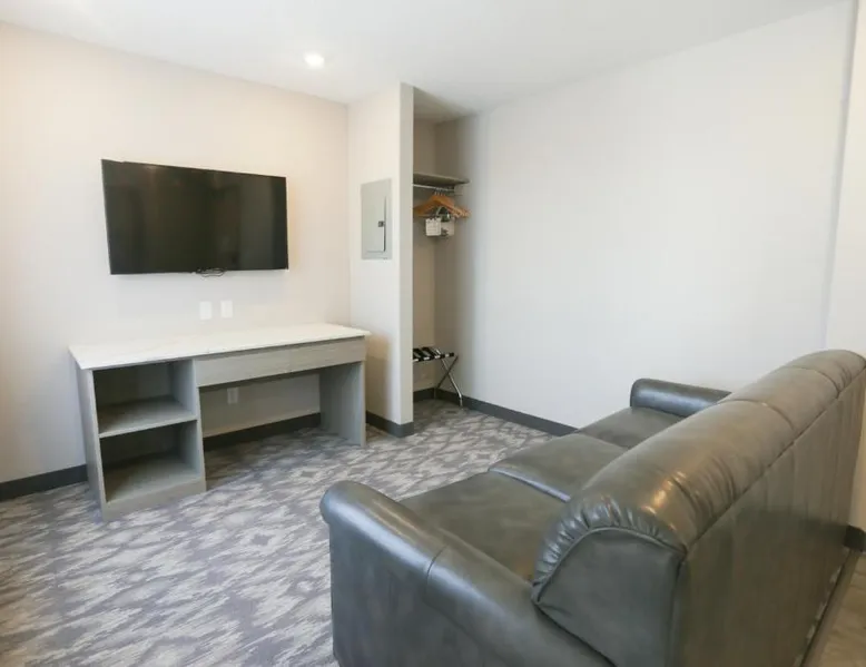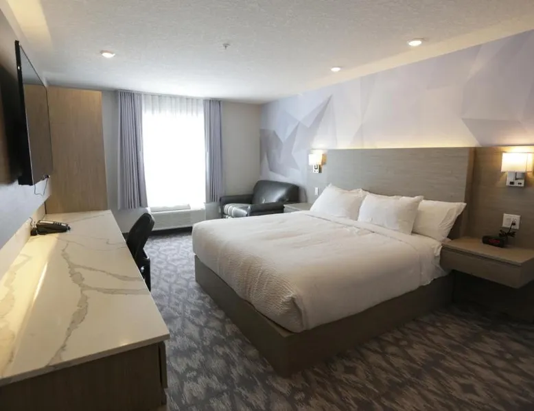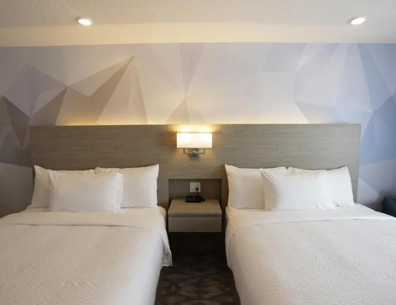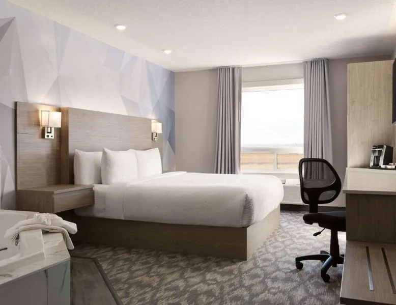Comfortable Accommodations: Rooms feature air-conditioning, private bathrooms with walk-in showers, tea and coffee makers, and free WiFi. Additional amenities include bathrobes, sofa beds, and interconnected rooms. Leisure Facilities: Guests can enjoy a fitness center, indoor swimming pool, and hot tub. The property also offers a lounge, fitness room, and business area. Convenient Location: Located in Balzac, the hotel is 5 mi from Calgary International Airport. Nearby attractions include CrossIron Mills (2.1 mi) and Calgary Tower (17 mi). Free on-site private parking is available. Guest Services: The hotel provides a 24-hour front desk, express check-in and check-out, and luggage storage. Special diet menus and a child-friendly buffet cater to all guests. The air-conditioned suite has 2 bedrooms and 1 bathroom with a bath and a shower. The suite features a tea and coffee maker, a wardrobe, a tiled floor, a carpeted floor, as well as a flat-screen TV with cable channels. The unit has 3 beds.