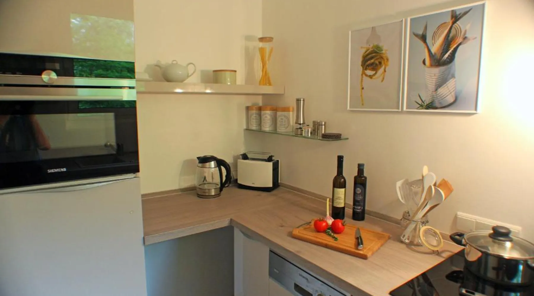 Modern Comforts: Wohnen am Roseneck in Berlin offers a one-bedroom apartment with a balcony, free WiFi, and a fully equipped kitchen. The living room includes a sofa, work desk, and TV. Convenient Facilities: Guests benefit from a elevator, outdoor seating area, and free on-site private parking. Additional amenities include a washing machine, dishwasher, microwave, and soundproofing. Prime Location: Located 15 mi from Berlin Brandenburg Airport, the apartment is near Messe Berlin and Kurfürstendamm, both 2.5 mi away. Other attractions include the Berlin Philharmonie and Brandenburg Gate, each 5 mi distant. Highly Rated: Guests appreciate the quiet street view, inner courtyard, and city views. The property is highly rated for its comfortable accommodations and excellent service. Boasting a private entrance, this apartment features 1 living room, 1 separate bedroom and 1 bathroom with a shower and a hairdryer. Meals can be prepared in the well-fitted kitchen, which has a stovetop, a refrigerator, a dishwasher and kitchenware. The apartment features a flat-screen TV with cable channels, a washing machine, soundproof walls, a coffee machine as well as city views. The unit has 1 bed.
