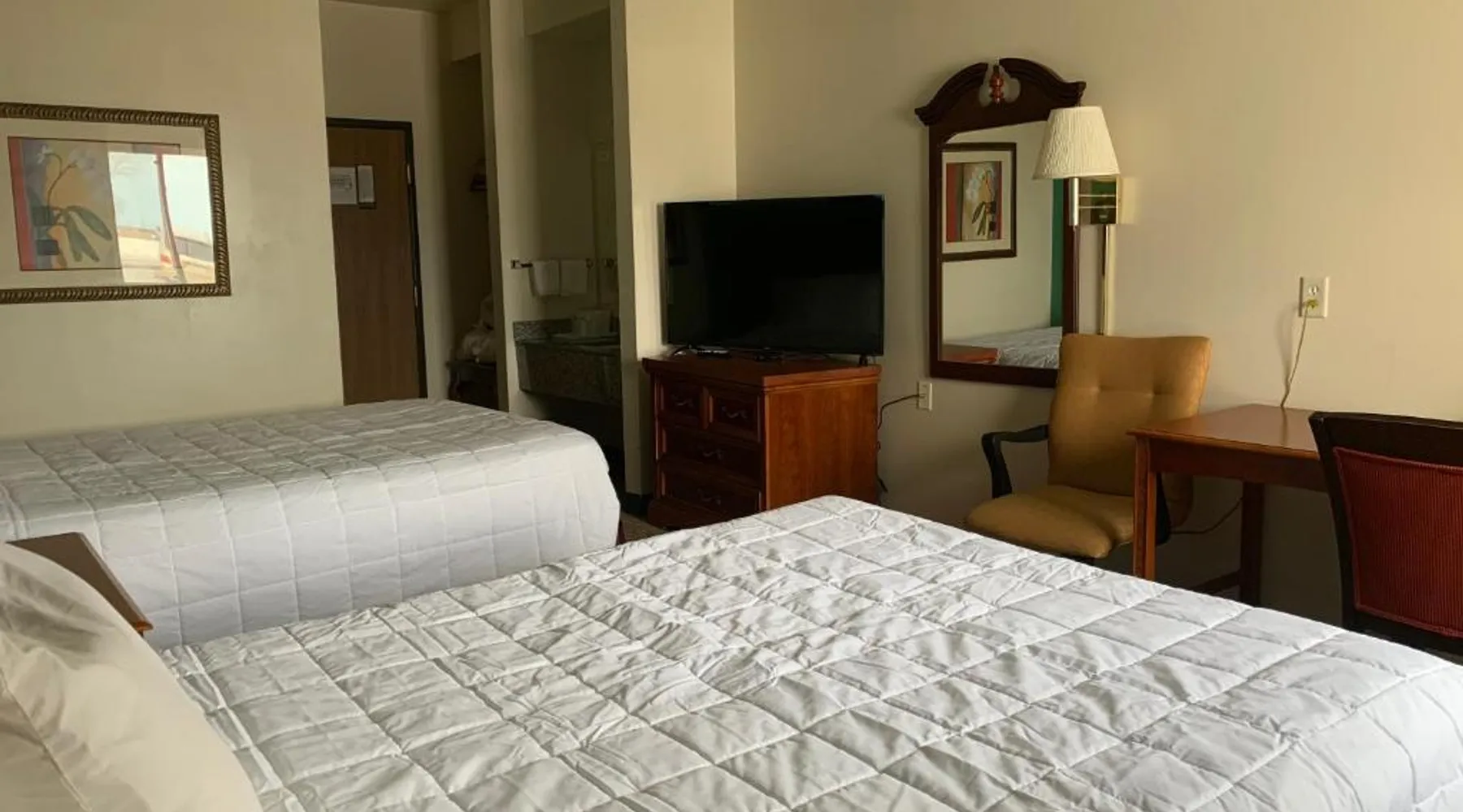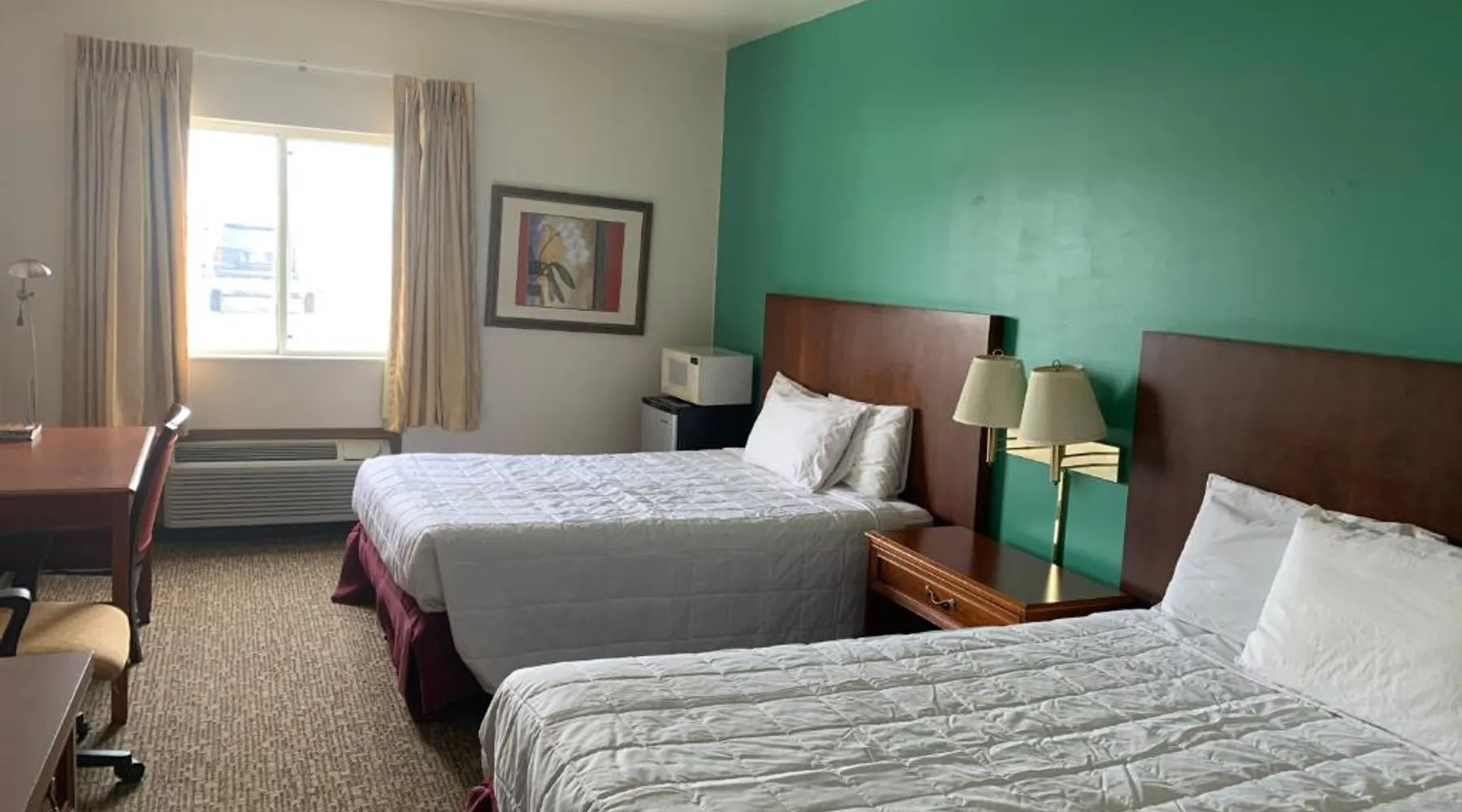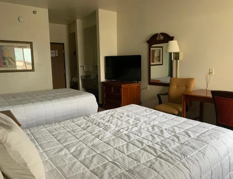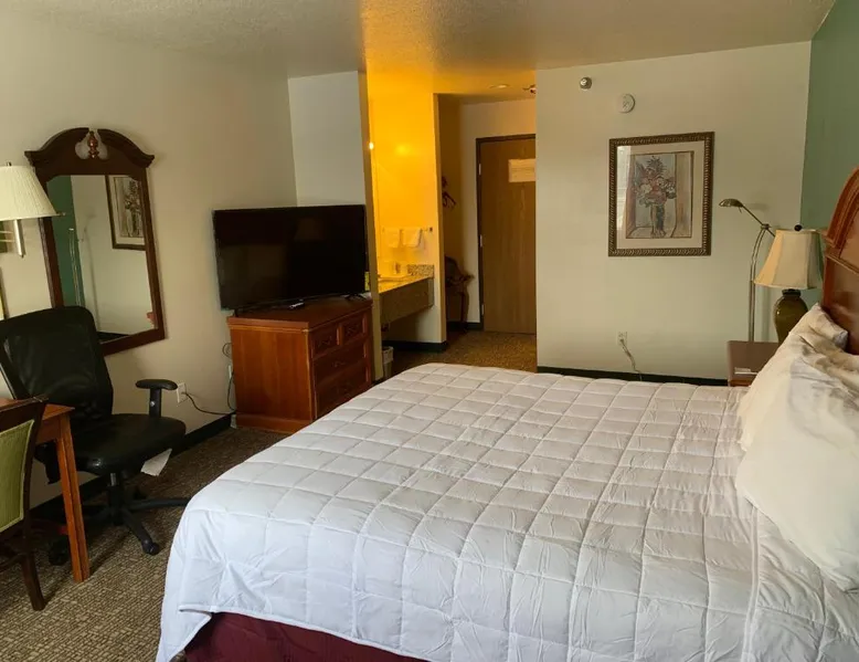 Comfortable Accommodations: Americas Best Value Inn - Gaylord in Gaylord offers family rooms with air-conditioning, private bathrooms, and free WiFi. Each room includes a tea and coffee maker, refrigerator, work desk, TV, and free toiletries. Convenient Facilities: Guests can enjoy a lounge, outdoor seating area, and a 24-hour front desk. Additional services include housekeeping, express check-in and check-out, and free on-site parking. Prime Location: Located 53 mi from Pellston Regional Airport and 25 mi from Monument Golf Course, the hotel provides easy access to local attractions. Guests appreciate the value for money, convenient location, and room cleanliness. The double room provides air conditioning, a tea and coffee maker, as well as a private bathroom featuring a bath and a hairdryer. This double room offers heating and a flat-screen TV with cable channels. The unit offers 1 bed.