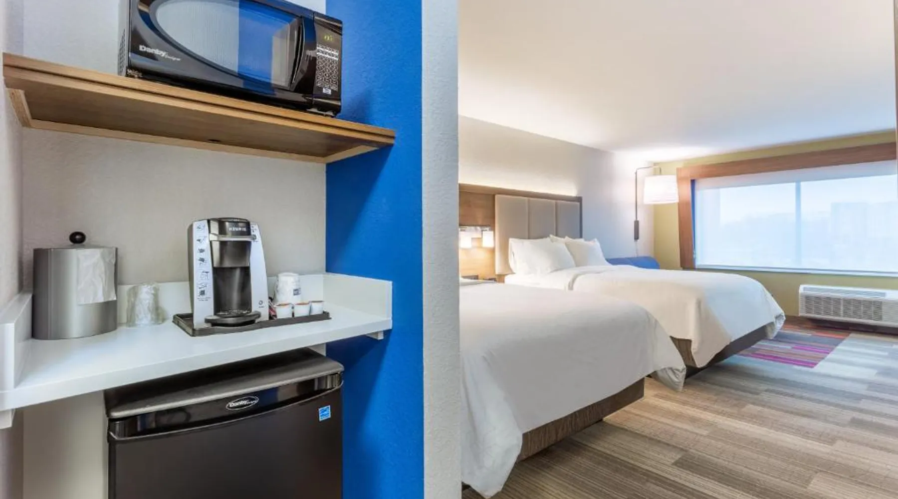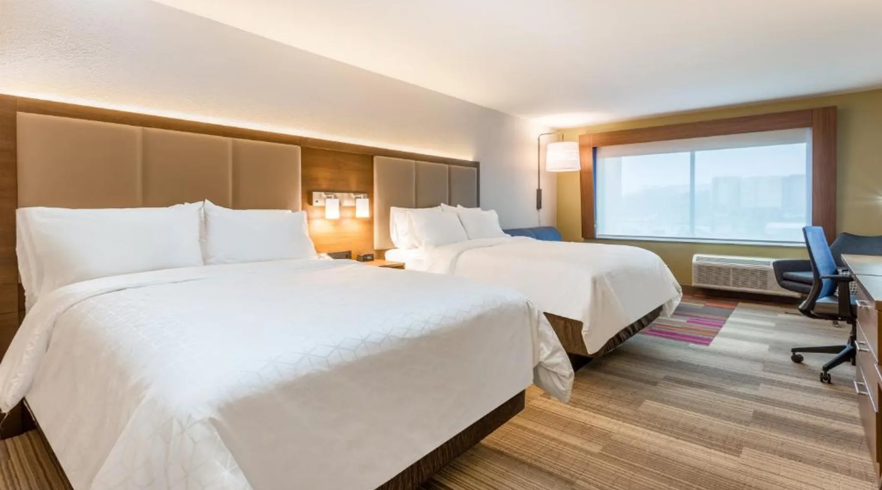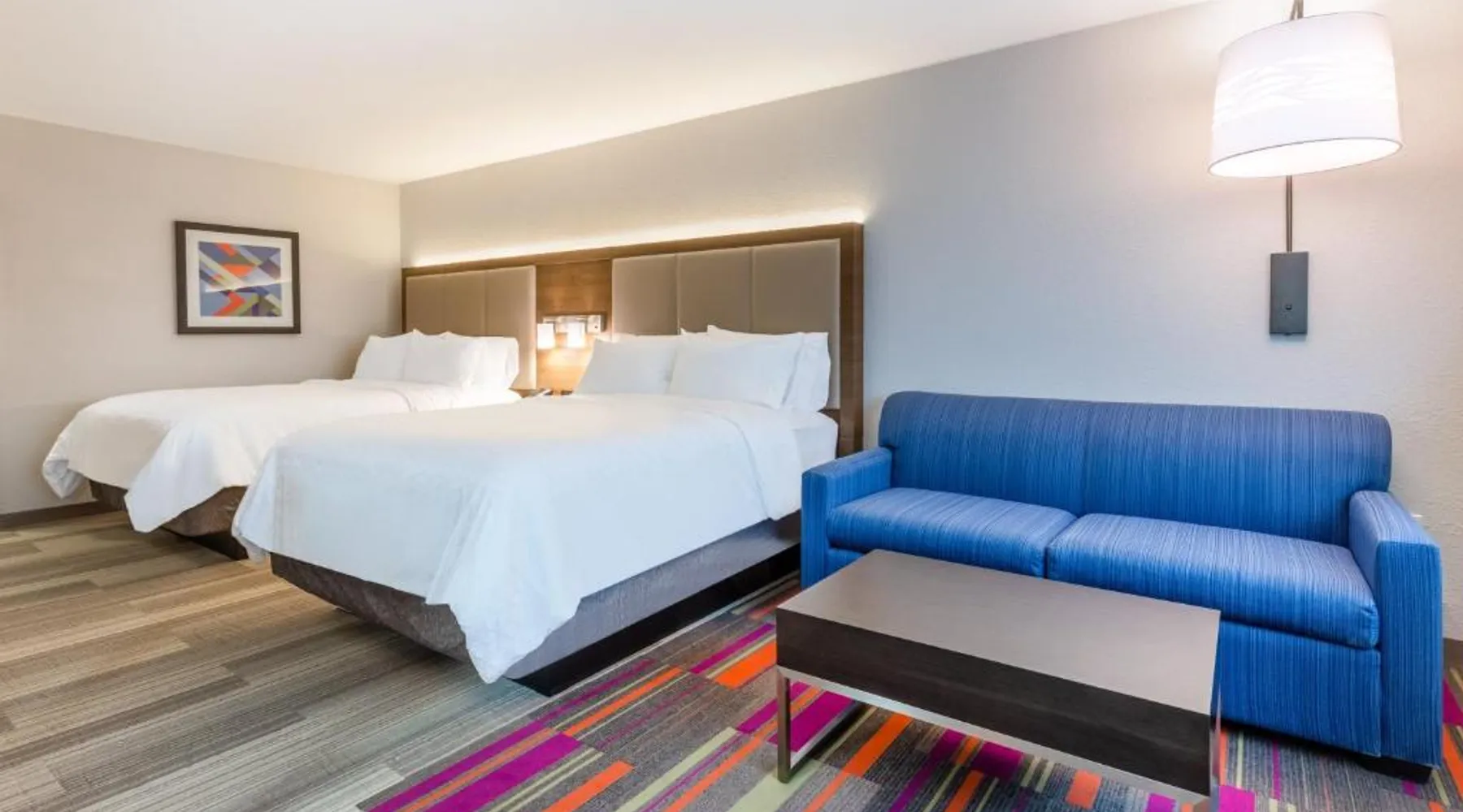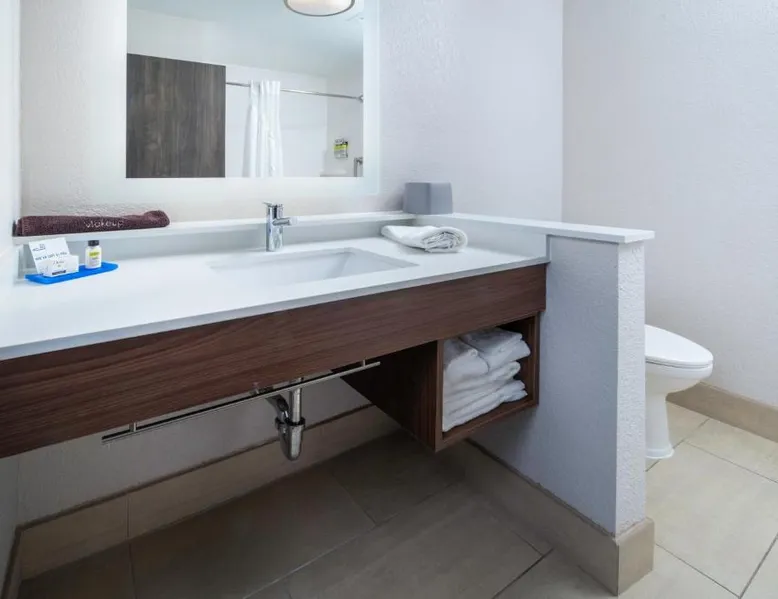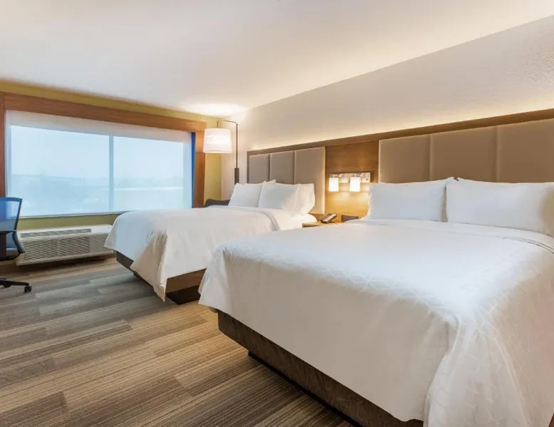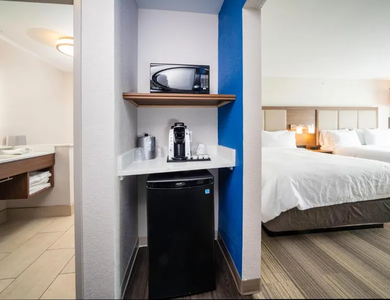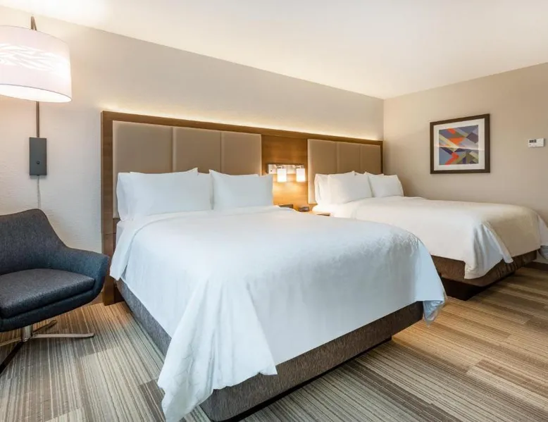 Comfortable Accommodations: Holiday Inn Express & Suites - Florence - Cincinnati Airport by IHG in Florence offers comfortable rooms with air-conditioning, private bathrooms, baths, showers, and TVs. Exceptional Facilities: Guests enjoy a fitness center, indoor swimming pool, and free WiFi. Additional amenities include a 24-hour front desk, free on-site parking, and private check-in and check-out services. Convenient Location: Located 1.2 mi from Cincinnati/Northern Kentucky International Airport, the hotel is near attractions such as Pioneer Park (9.3 mi) and Cincinnati Zoo (16 mi). Free airport shuttle service is available. Guest Satisfaction: Highly rated for its breakfast, attentive staff, and room cleanliness, the property ensures a pleasant stay for all visitors. The unit has 2 beds.