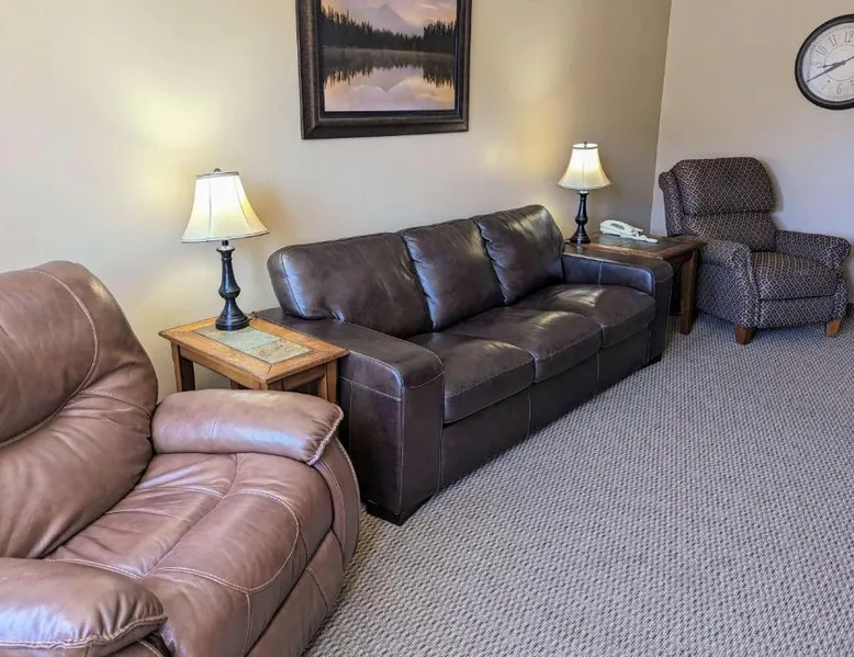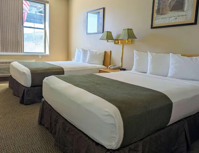 Comfortable Accommodations: Travelodge by Wyndham Deadwood in Deadwood offers comfortable rooms with private bathrooms, air-conditioning, and free WiFi. Each room includes a tea and coffee maker, refrigerator, and TV. Facilities and Services: Guests can enjoy a fitness center, sun terrace, and outdoor seating area. Additional amenities include a business area, minimarket, and free on-site parking. The hotel provides a 24-hour front desk, daily housekeeping, and full-day security. Local Attractions: Located 1.2 mi from Adams Museum and 51 mi from Rapid City Regional Airport, the hotel offers easy access to local attractions. Guests can enjoy skiing and hiking in the surrounding area. The quadruple room offers air conditioning, a tea and coffee maker, as well as a private bathroom boasting a walk-in shower and a hairdryer. This quadruple room has a carpeted floor, heating, a flat-screen TV with cable channels and mountain views. The unit has 2 beds.
