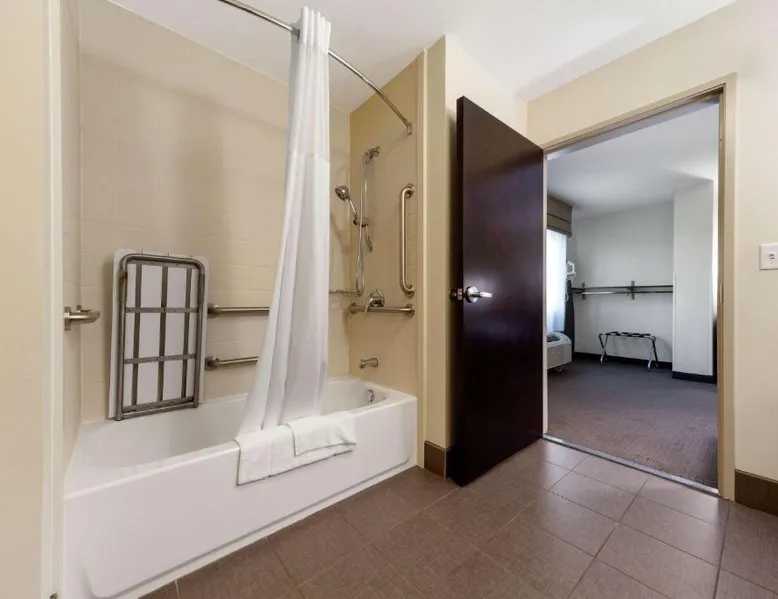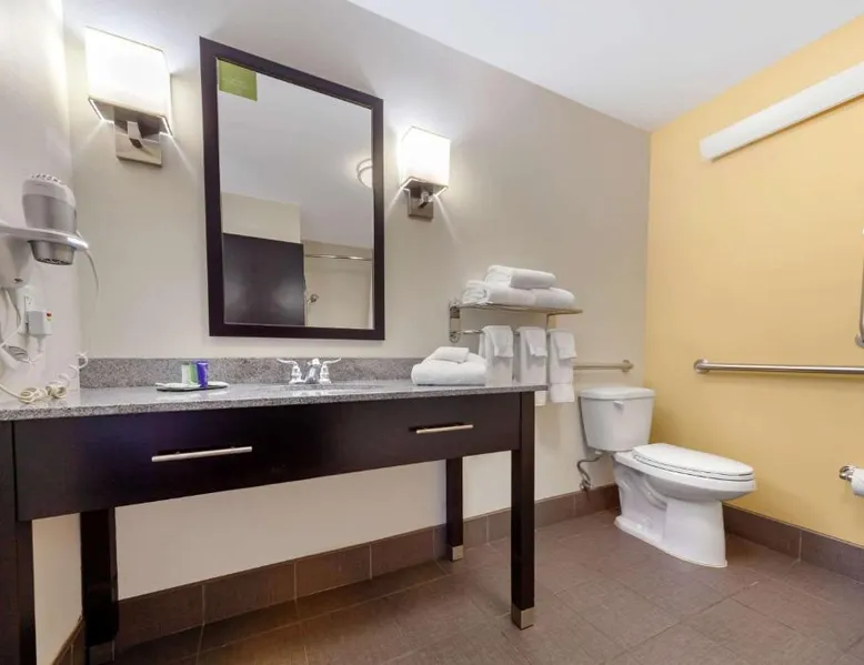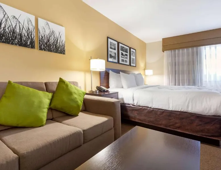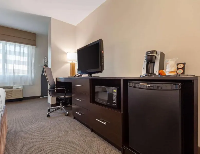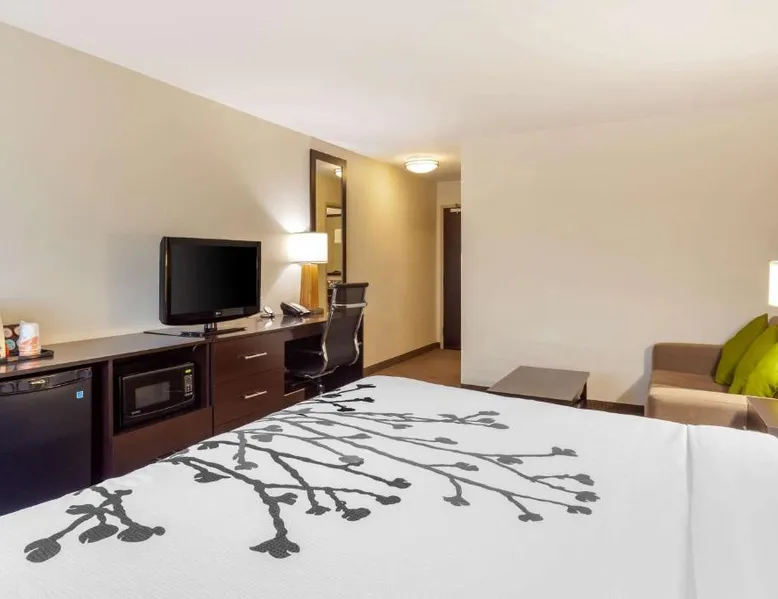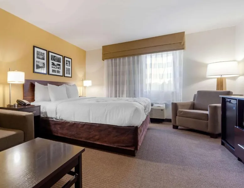 Comfortable Accommodations: Sleep Inn & Suites Bismarck I-94 in Bismarck offers clean rooms with air-conditioning, free WiFi, and amenities such as a work desk, microwave, and TV. Leisure Facilities: Guests can enjoy a fitness center, indoor swimming pool, and hot tub. Additional facilities include a lounge, fitness room, and outdoor seating area. Convenient Location: Located 5 mi from Bismarck Municipal Airport, the hotel is near attractions like North Dakota State Capitol (1.9 mi), Bismarck State College (3.7 mi), and Dakota Zoo (5 mi). Guest Satisfaction: Highly rated for room cleanliness, attentive staff, and a complimentary breakfast provided by the property. The quadruple room provides a TV with cable channels, a tea and coffee maker, a seating area and heating. The unit offers 2 beds.
