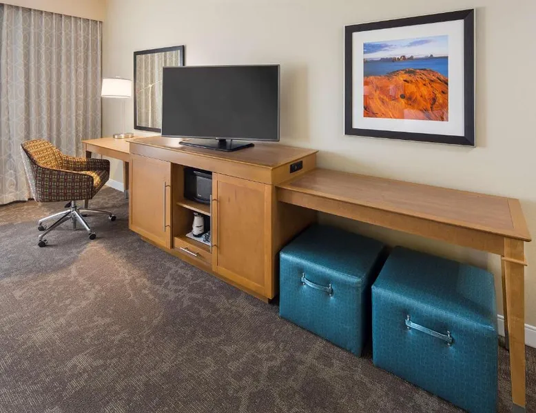 Offering an indoor pool, Hampton Inn & Suites Page - Lake Powell is 5 minutes' drive from Horseshoe Bend and 15 minutes' drive from Lake Powell Marina. Free WiFi is provided and a free hot breakfast buffet is offered daily. Each room comes with a flat-screen TV and a private bathroom with free toiletries and a hair dryer. There is a 24-hour front desk at the property and an on-site shop open 24-hours that offers snacks, drinks and travel necessities. Guests can also take advantage of a fitness center. Antelope Canyon is 15 minutes' drive from the property. A seating area with a flat-screen TV, a tea and coffee maker and a balcony are offered in this studio. The unit has 3 beds.