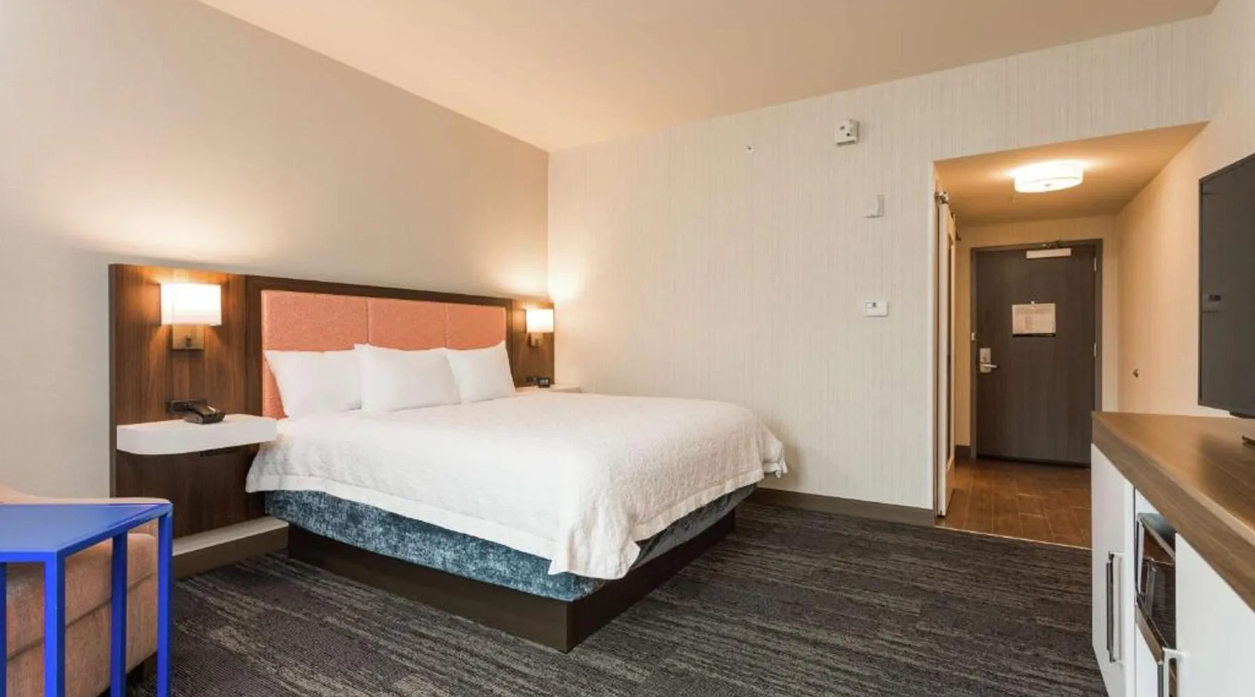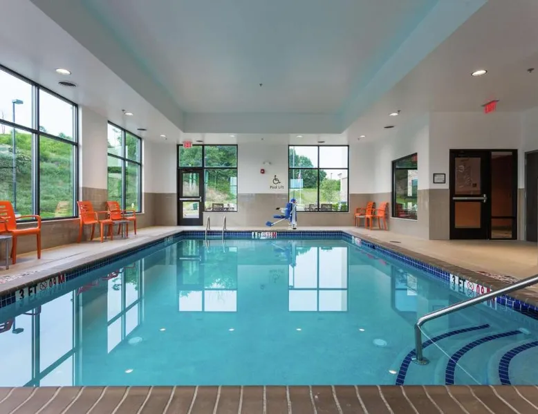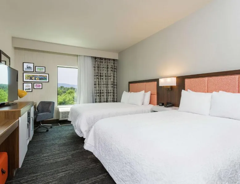 Comfortable Accommodations: Hampton Inn Cumberland in Cumberland offers family rooms with private bathrooms, equipped with tea and coffee makers, hairdryers, refrigerators, microwaves, and TVs. Free WiFi is available throughout the property. Exceptional Facilities: Guests can enjoy a fitness center, sun terrace, indoor swimming pool, and a lounge. Additional amenities include a business area, outdoor seating, picnic area, and electric vehicle charging station. Delicious Breakfast: A continental buffet breakfast is served daily, featuring warm dishes, fresh pastries, cheese, fruits, and juice. Convenient Location: Located 57 mi from Altoona-Blair County Airport and 13 mi from Frostburg State University. Free on-site parking is available. Guest Satisfaction: Highly rated for its attentive staff, excellent breakfast, and immaculate room cleanliness. This double room provides a tea and coffee maker and a TV. The unit offers 1 bed.