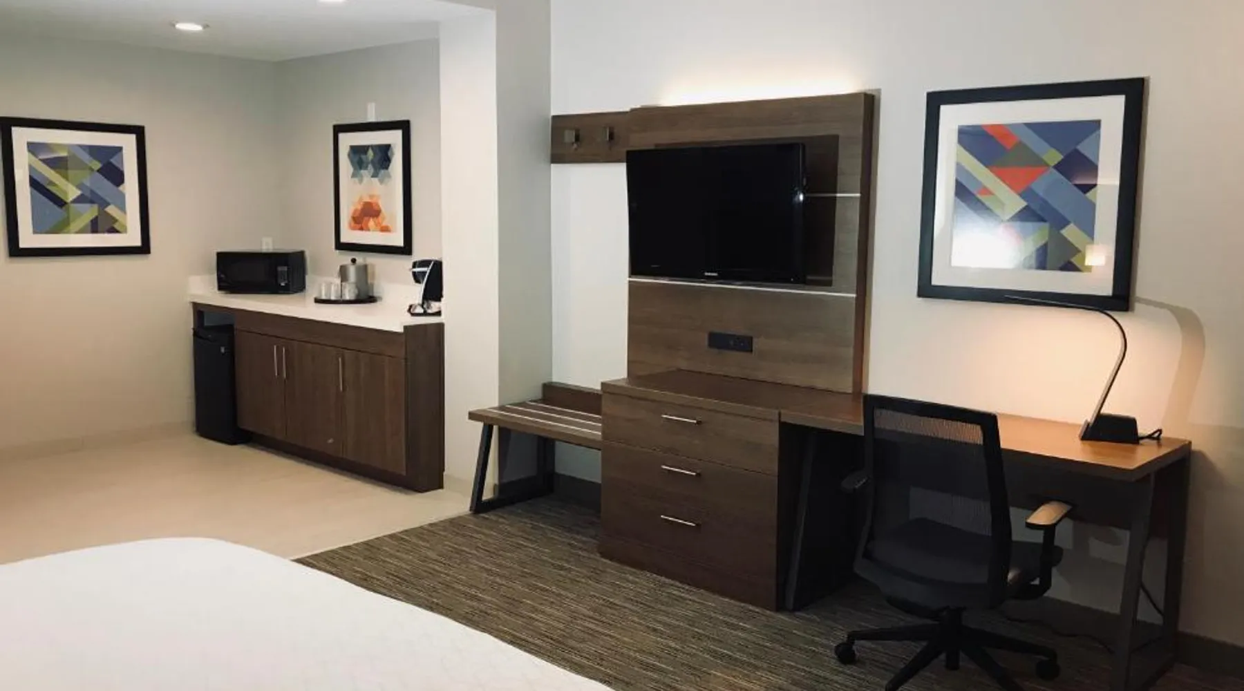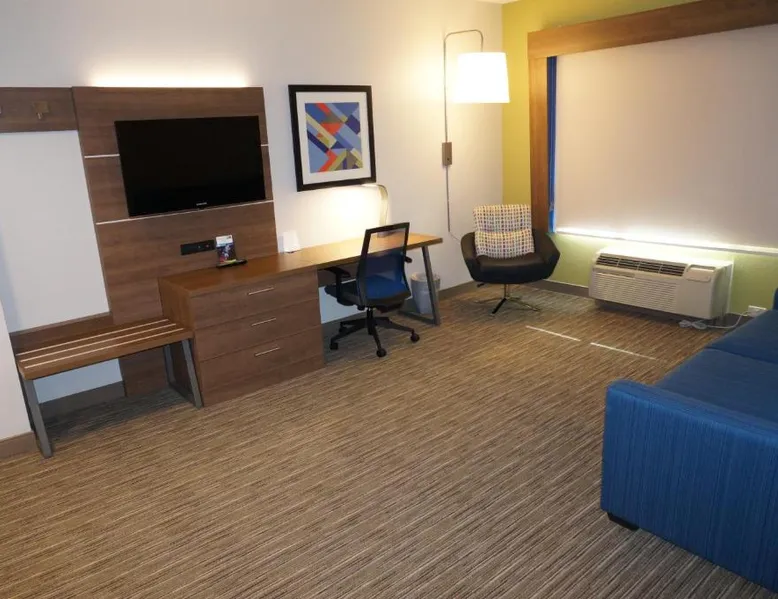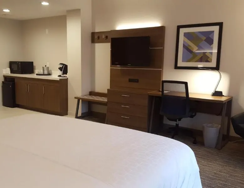 Near points of interest such as the Pacific Commons Shopping Center and Niles Canyon, this Fremont, California hotel offers enjoyable facilities and amenities, including free wireless internet access. Holiday Inn Express Fremont - Milpitas Central features a free breakfast with hot items such as cinnamon rolls. Guests will also enjoy the hotel's outdoor pool and well-equipped fitness center. The spacious guestrooms at the Milpitas Central Holiday Inn Express boast's comforts in every room with a safety deposit box, microwave, mini-refrigerator and a Keurig coffee maker are also included. Rooms for mobility, accessibility and sight/hearing impaired are available. This accessible room features a microwave, a mini-fridge, a Keurig® coffee maker and a work desk. Accessible features include a wider doorway, a roll-in shower and hand-held showerhead, a seat raised toilet with grab bars, a lowered security viewer and a CC HDTV with TTY visual alerts.