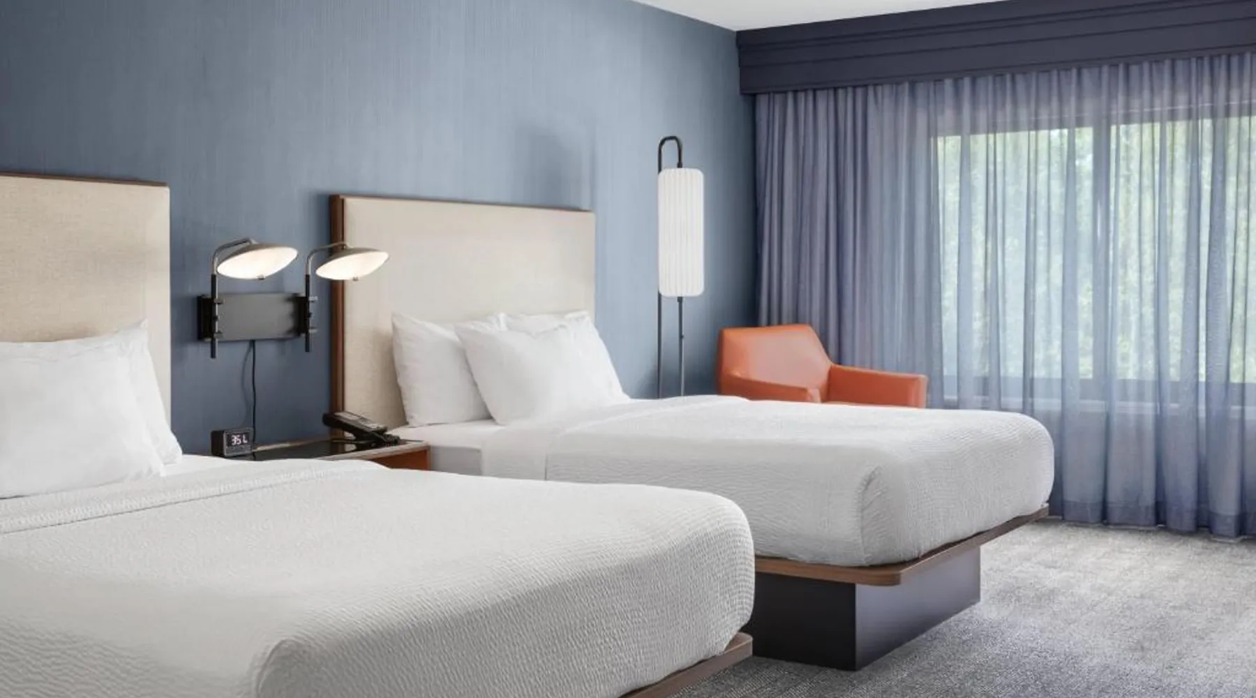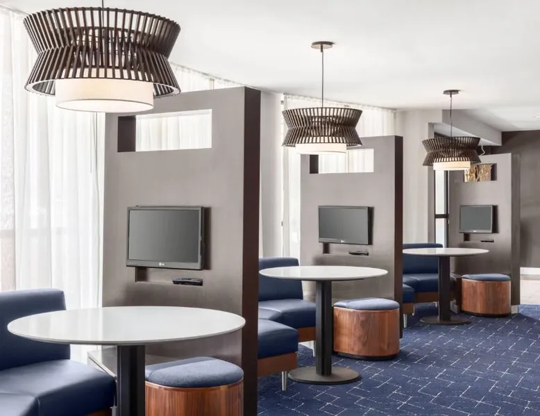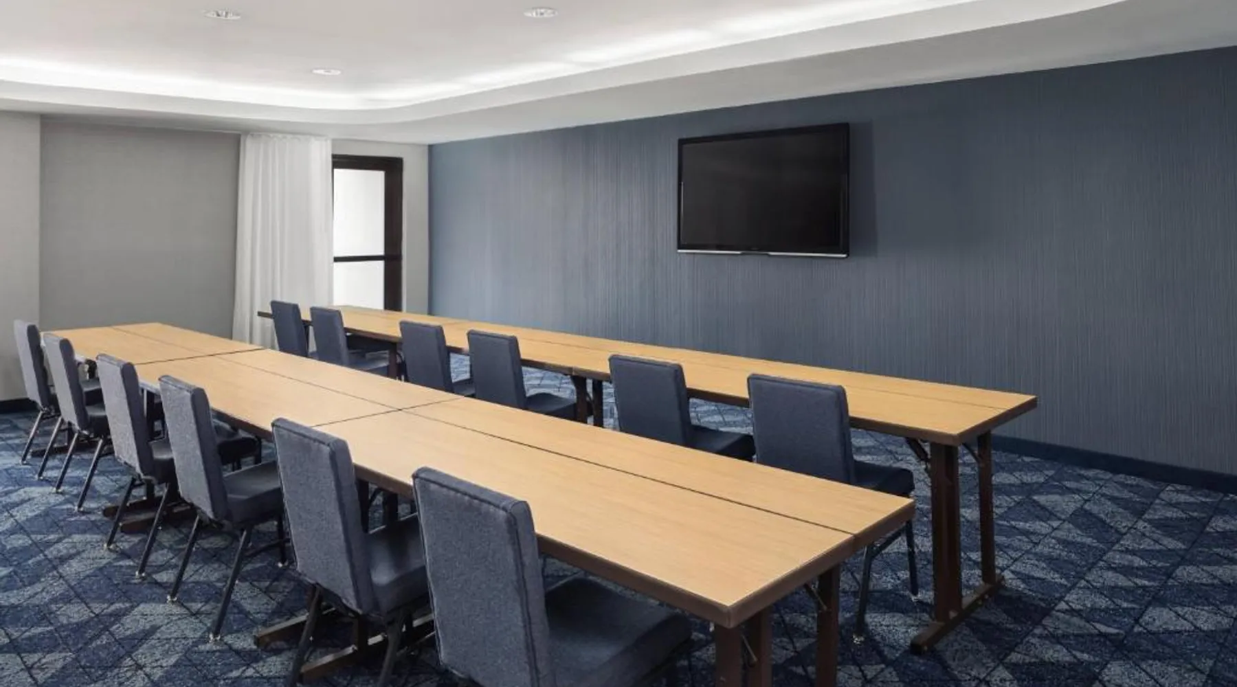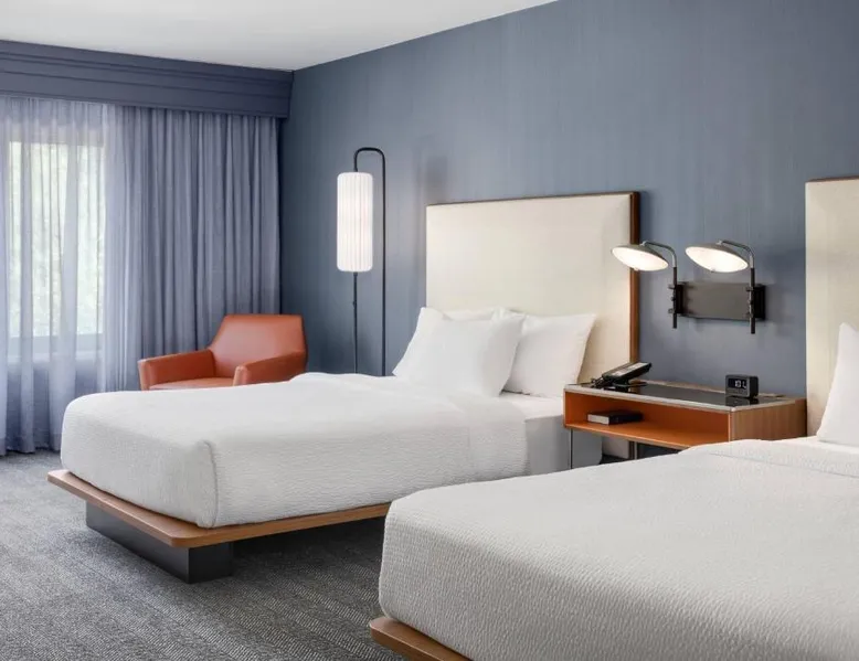 Comfortable Accommodations: Courtyard Portland Airport in South Portland offers comfortable rooms with air-conditioning, private bathrooms, tea and coffee makers, hairdryers, refrigerators, work desks, free toiletries, bath or showers, carpeted floors, and TVs. Dining Experience: The on-site restaurant serves American cuisine for dinner. Guests can enjoy meals in a welcoming atmosphere. Convenient Facilities: The hotel features a elevator, 24-hour front desk, and free on-site parking. Additional amenities include a restaurant, bar, and free WiFi. Prime Location: Located 1.2 mi from Portland International Jetport, the hotel is near attractions such as Funtown Splashtown USA (11 mi), Merrill Auditorium (6.2 mi), and Old Orchard Beach Pier (12 mi). Guests appreciate the friendly staff and excellent service. Room features a refrigerator and a desk.