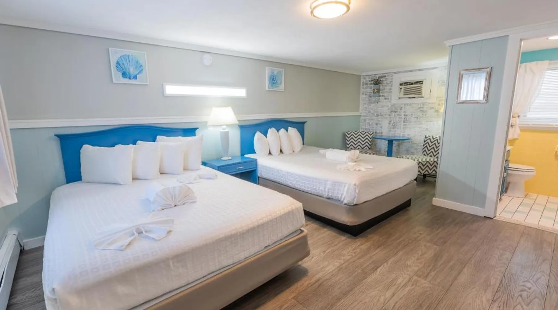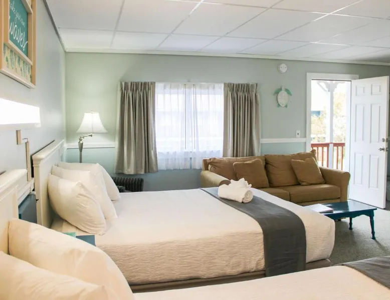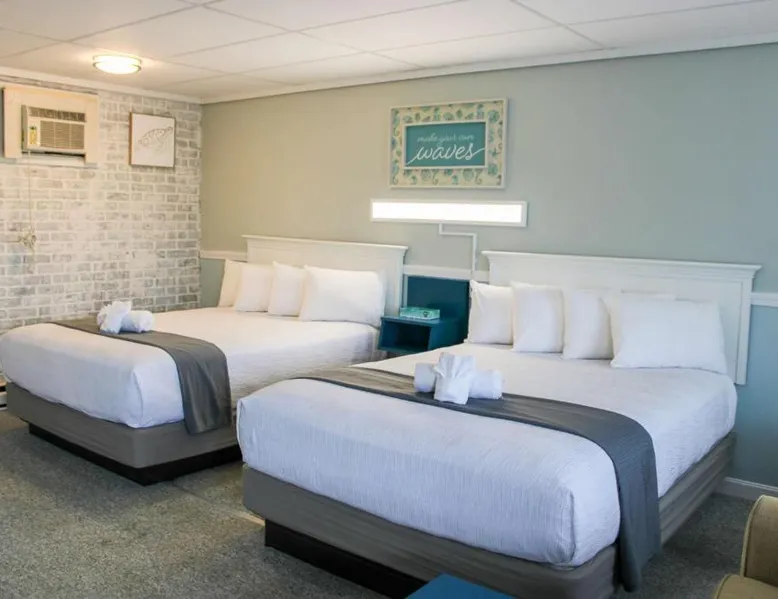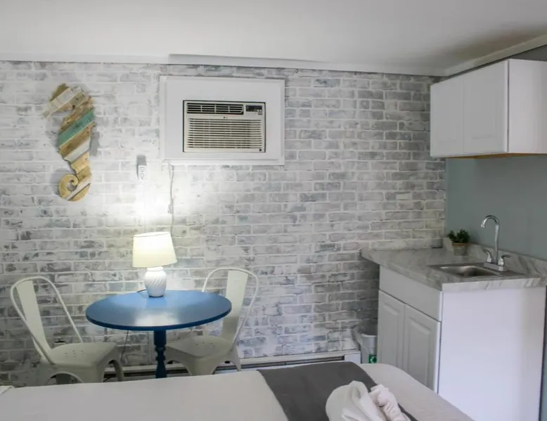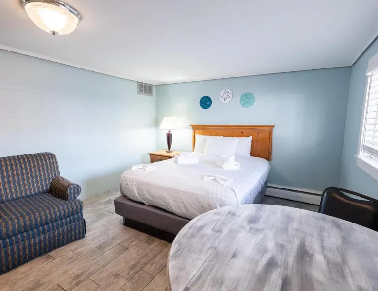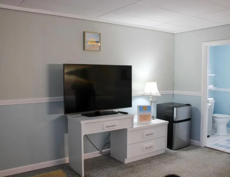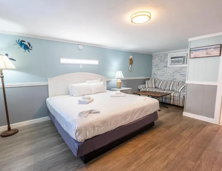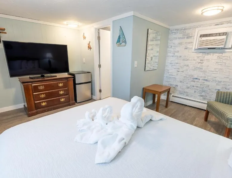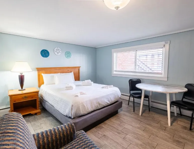 Comfortable Accommodations: The Janmere Motel in Hampton offers air-conditioned rooms with private bathrooms, featuring baths and showers. Each room includes a sofa bed, refrigerator, TV, and free toiletries. Leisure Facilities: Guests can enjoy a seasonal outdoor swimming pool and free WiFi. Additional amenities include bicycle parking and free on-site private parking. Prime Location: Located 14 mi from Portsmouth International Airport at Pease, the motel is a short walk from Hampton Beach Main Beach and 656 feet from Casino Ballroom. Nearby attractions include Ogunquit Playhouse and Mount Agamenticus. Guest Satisfaction: Highly rated for its convenient location, beach access, and attentive staff, The Janmere Motel ensures a pleasant stay for all visitors. This air-conditioned double room is consisted of of a flat-screen TV with cable channels, a private bathroom as well as outdoor furniture. The unit has 2 beds.