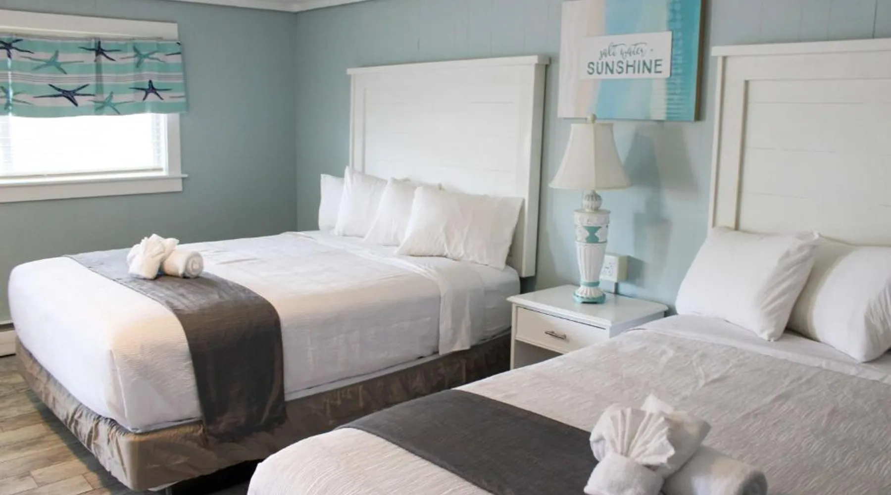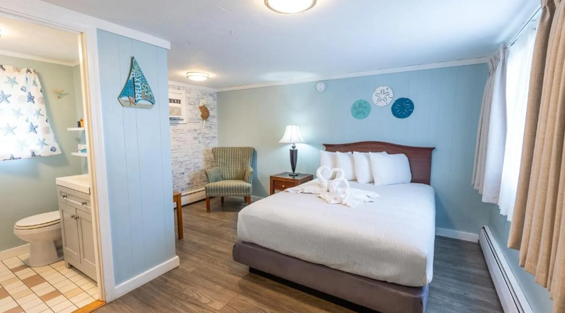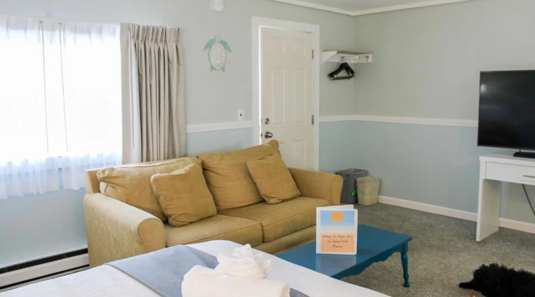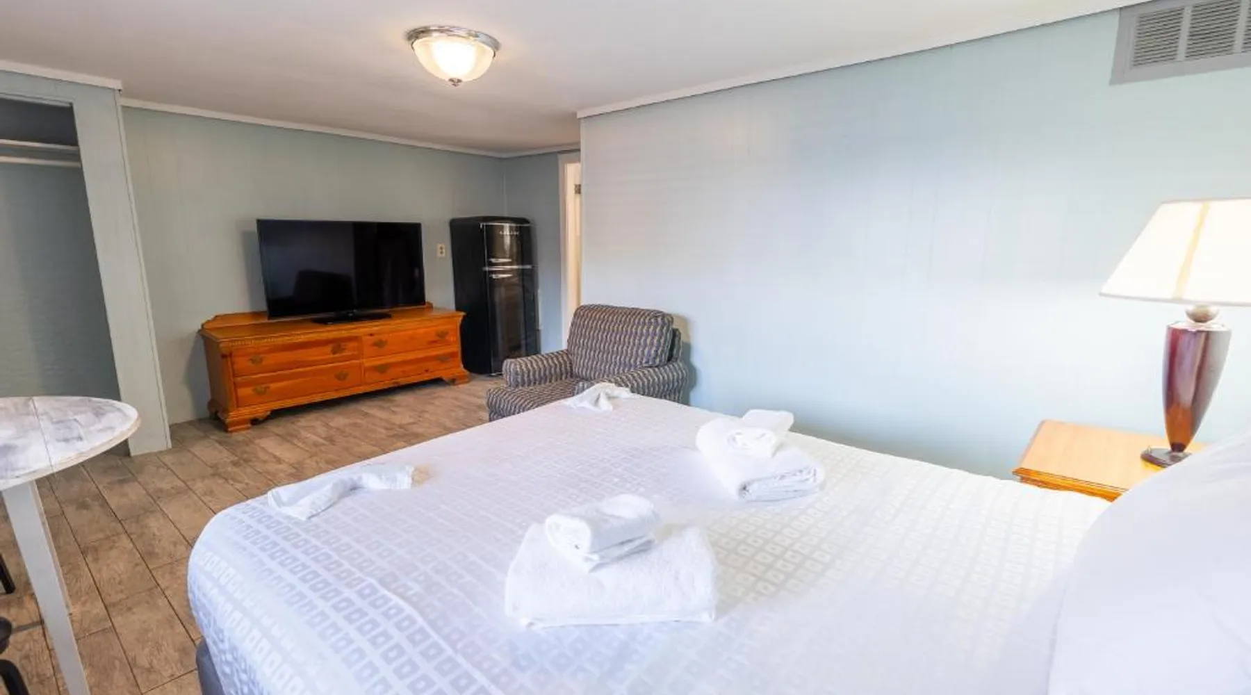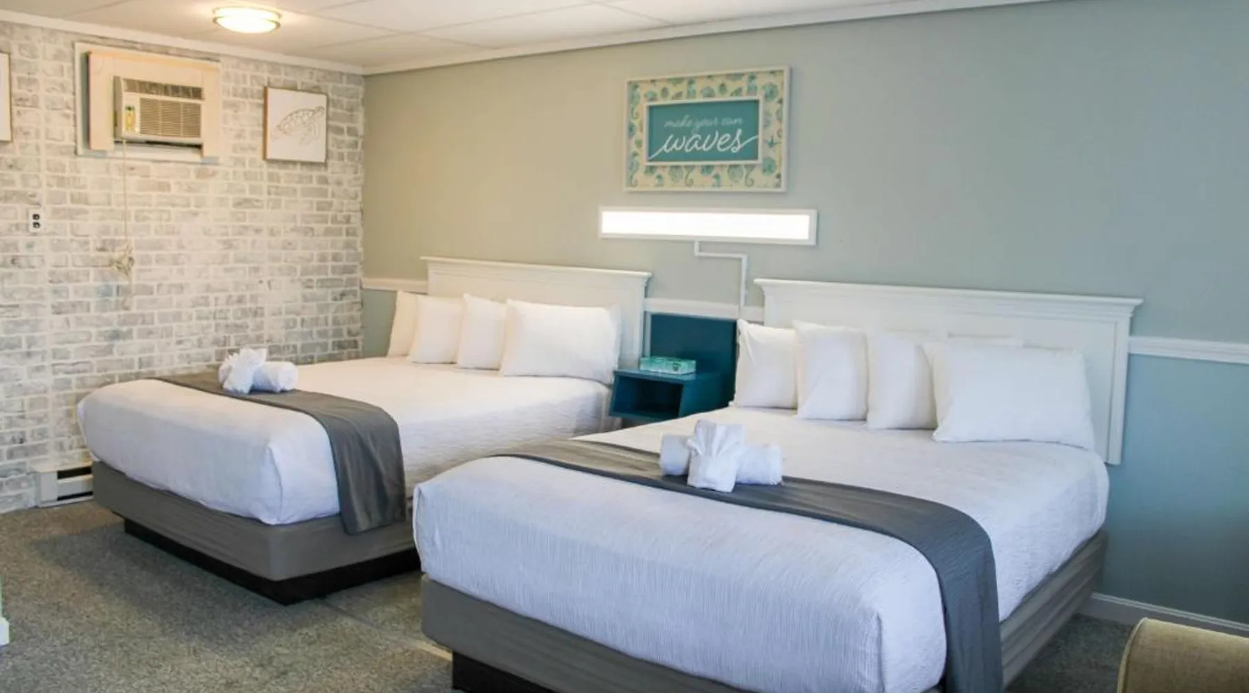 Comfortable Accommodations: The Janmere Motel in Hampton offers air-conditioned rooms with private bathrooms, featuring baths and showers. Each room includes a sofa bed, refrigerator, TV, and free toiletries. Leisure Facilities: Guests can enjoy a seasonal outdoor swimming pool and free WiFi. Additional amenities include bicycle parking and free on-site private parking. Prime Location: Located 14 mi from Portsmouth International Airport at Pease, the motel is a short walk from Hampton Beach Main Beach and 656 feet from Casino Ballroom. Nearby attractions include Ogunquit Playhouse and Mount Agamenticus. Guest Satisfaction: Highly rated for its convenient location, beach access, and attentive staff, The Janmere Motel ensures a pleasant stay for all visitors. This air-conditioned double room is consisted of of a flat-screen TV with cable channels, a private bathroom as well as outdoor furniture. The unit has 2 beds.