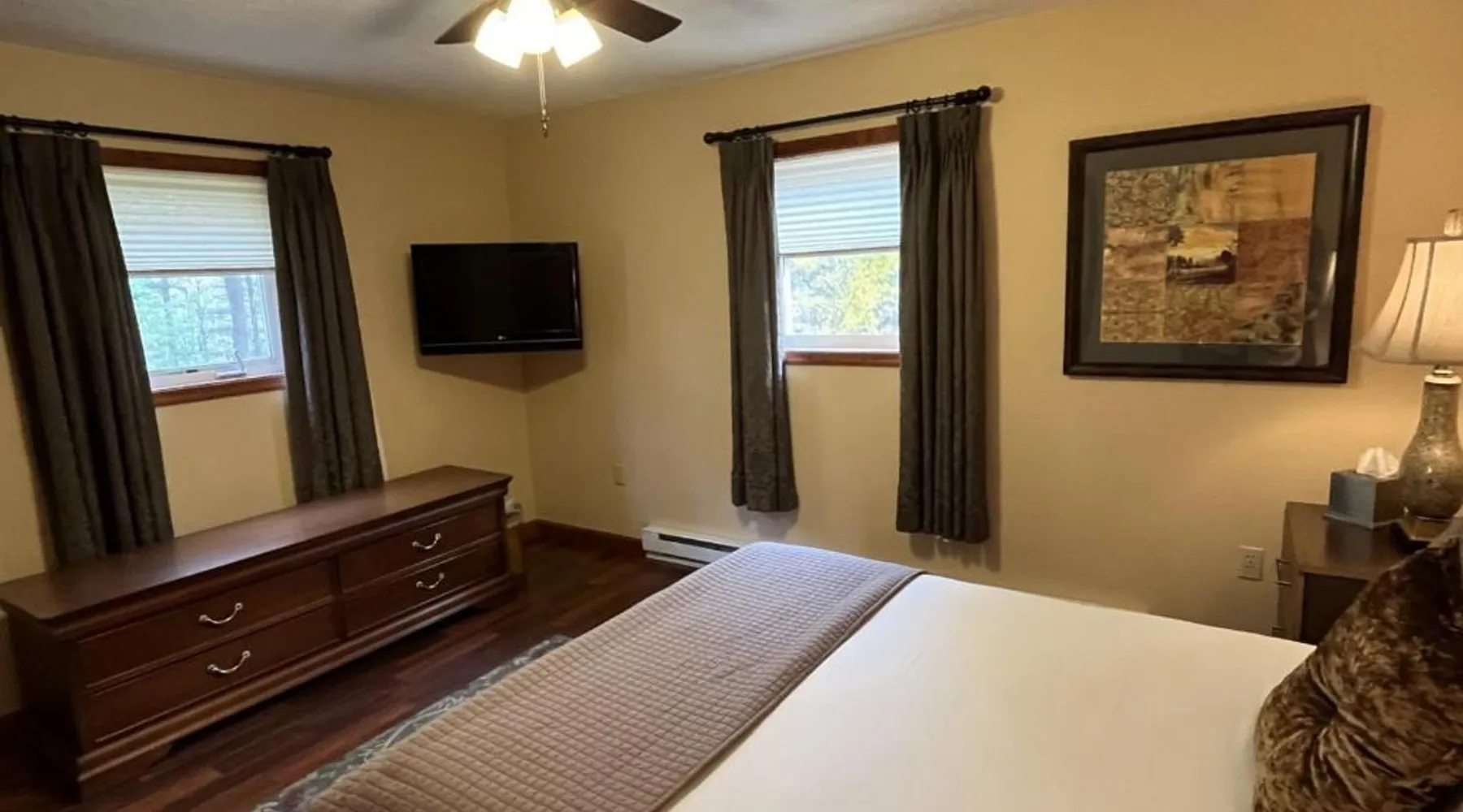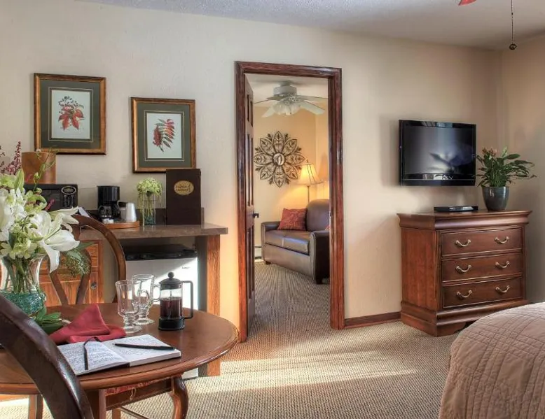 Comfortable Accommodations: Woodfield Manor in Cresco offers family rooms with air-conditioning, private bathrooms, and modern amenities. Each room includes a tea and coffee maker, refrigerator, and free toiletries. Dining Experience: The family-friendly restaurant serves American and Steakhouse cuisines with vegetarian options. Guests can enjoy brunch and dinner in a modern and romantic ambiance. Leisure Facilities: The property features a sun terrace, garden, seasonal outdoor swimming pool, and free WiFi. Additional amenities include an outdoor fireplace, concierge service, and barbecue facilities. Location and Attractions: Located 37 mi from Lehigh Valley International Airport, Woodfield Manor is near Delaware Water Gap National Recreation Area (18 mi) and Great Wolf Lodge Pocono Mountains (4.3 mi). Other attractions include Pocono Raceway (16 mi) and Jack Frost Mountain Resort (20 mi). This suite is located on the second floor of the main building and features an iPod dock, microwave and a seating area.