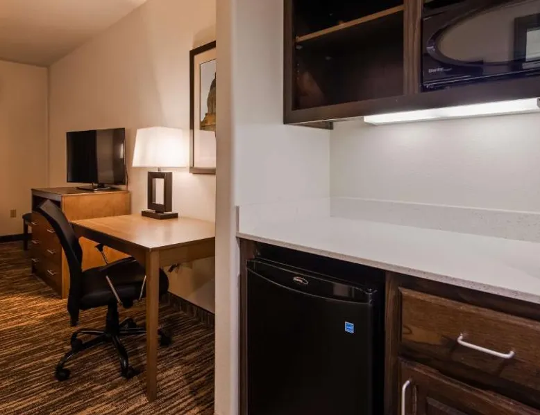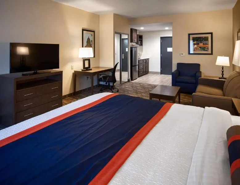 Comfortable Accommodations: Best Western Plus Ardmore Inn & Suites in Ardmore offers family rooms with air-conditioning, private bathrooms, and free WiFi. Each room includes a work desk, TV, and complimentary toiletries. Exceptional Facilities: Guests can enjoy a fitness center, indoor swimming pool, and bar. Additional amenities include a hot tub, spa bath, and kitchenette. Free on-site private parking is available. Convenient Services: The hotel provides a 24-hour front desk, daily housekeeping, and express check-in and check-out services. A lounge, fitness room, and business area enhance the stay. Local Attractions: Crystalrock Cathedral is 1.4 mi away, and the Gene Autry Oklahoma Museum is 18 mi from the property. Featuring free toiletries, this suite includes a private bathroom with a bath, a shower and a hairdryer. The suite has tiled floors, a seating area with a flat-screen TV with cable channels, air conditioning, a tea and coffee maker, as well as a wardrobe. The unit has 1 bed.