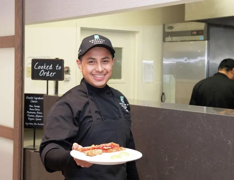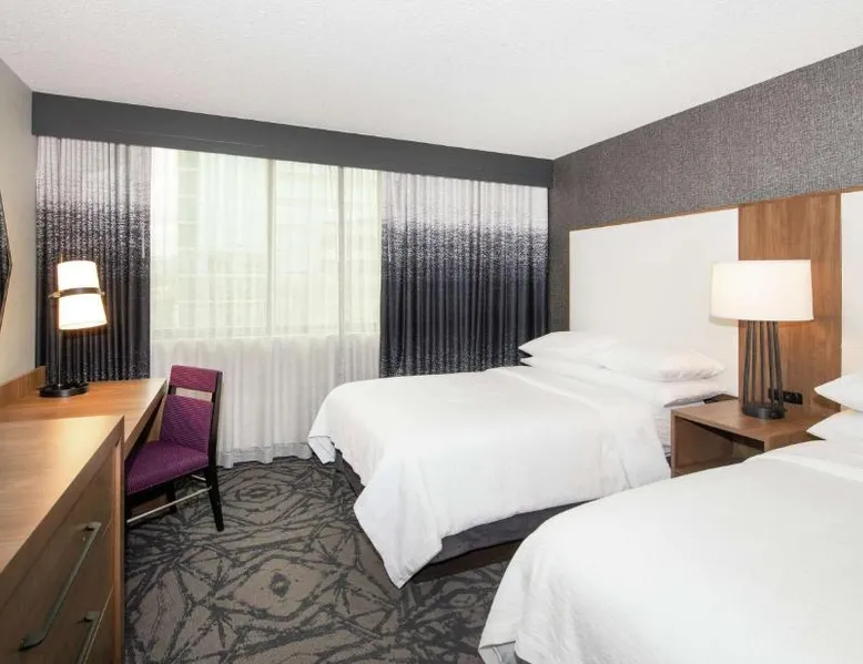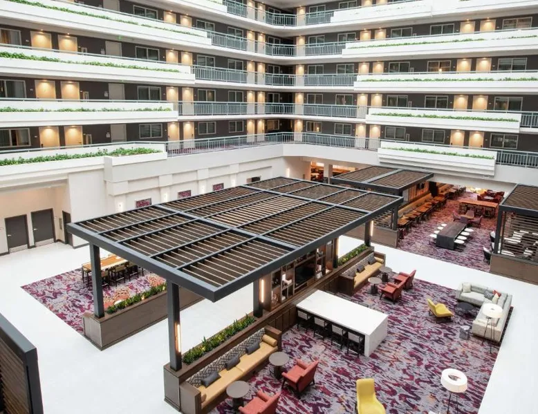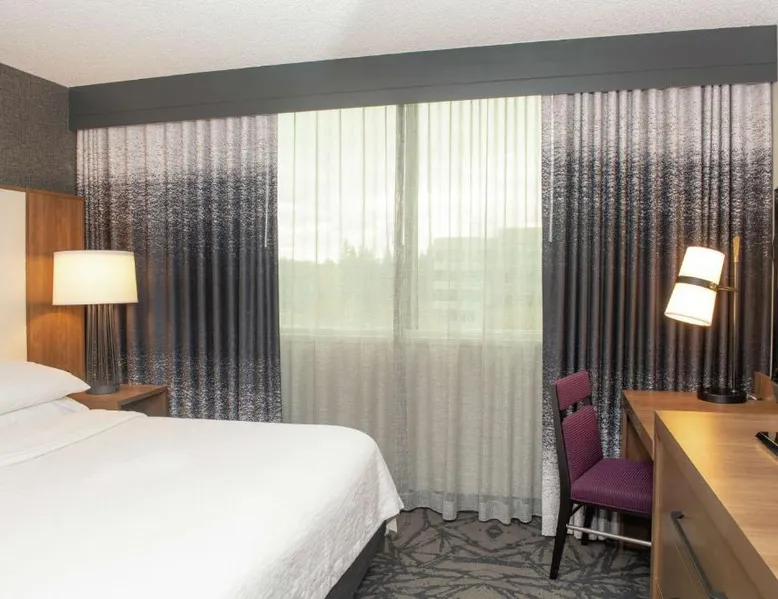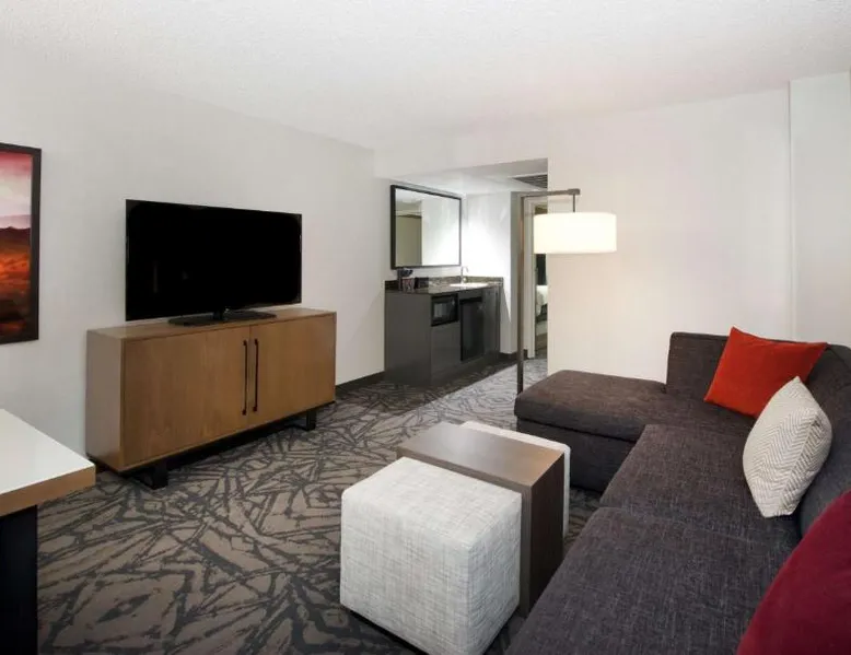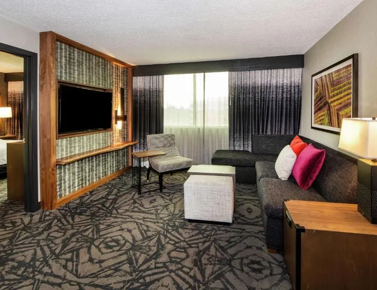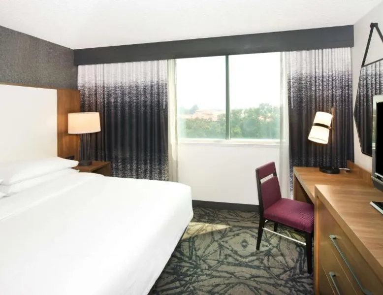 This all suite hotel is located across the street from the Pleasant Hill Bay Area Rapid Transit (BART) station, which provides access to San Francisco, Oakland and both international airports. A daily cooked to order breakfast is included and an evening reception with drinks and snacks is offered. The area surrounding the Embassy Suites by Hilton Walnut Creek is filled with scenic parks, golf courses, shopping centers and restaurants. Guests can also easily Six Flags Water Park, and Mt. Diablo State Park. The corporate offices of Verizon, IBM, Citibank and many more are also only minutes away. Modern amenities, including MP3 compatible radios and wireless internet access are standard at the Walnut Creek Embassy Suites. This air-conditioned suite includes a cable TV, a desk, a microwave, a refrigerator and a coffee maker.