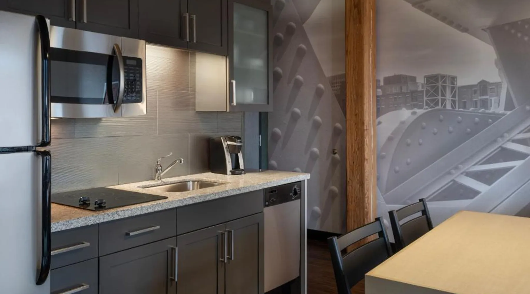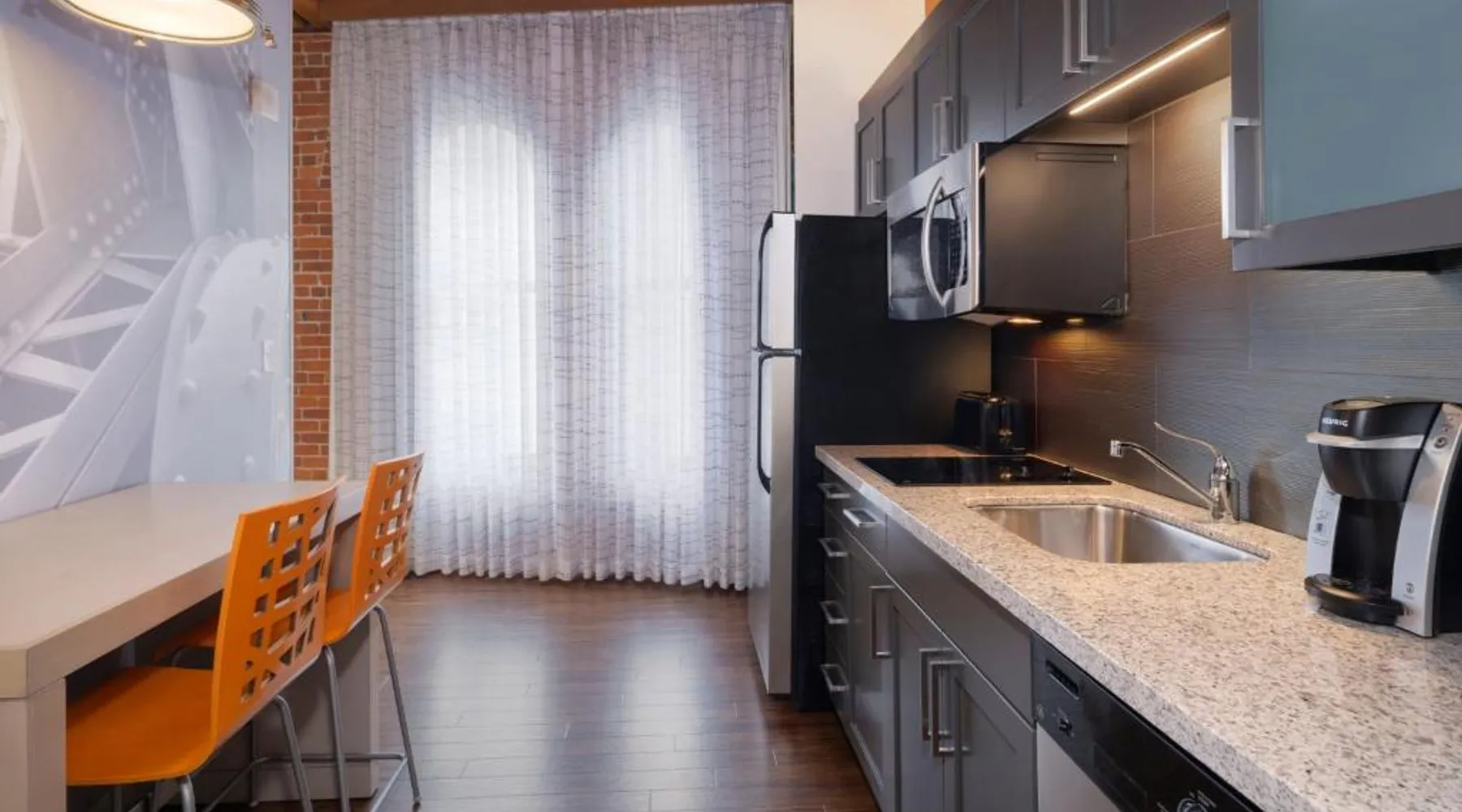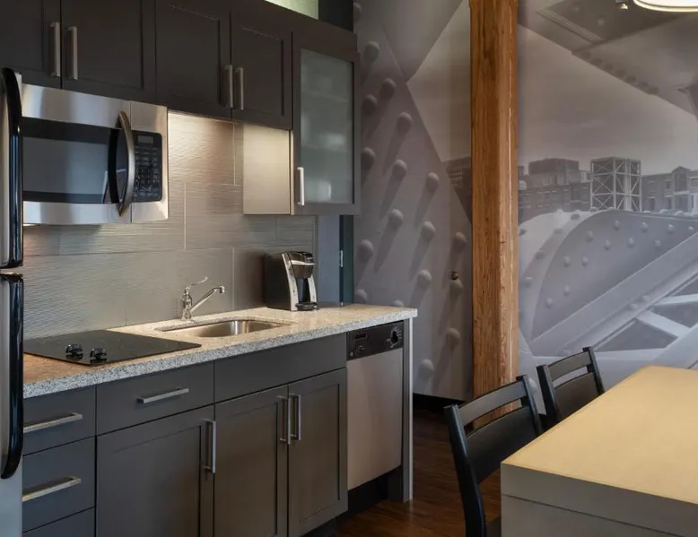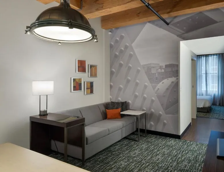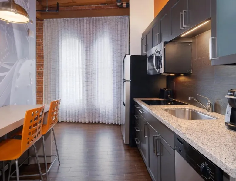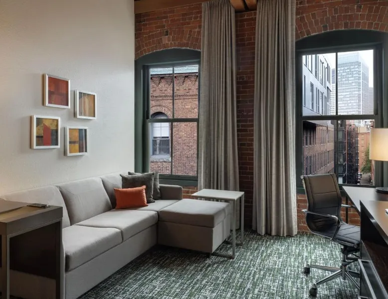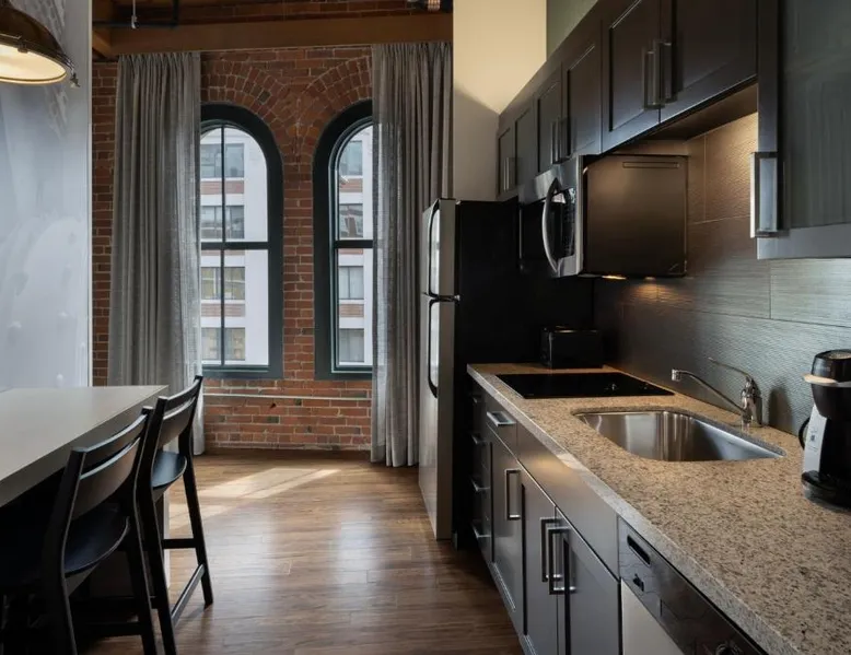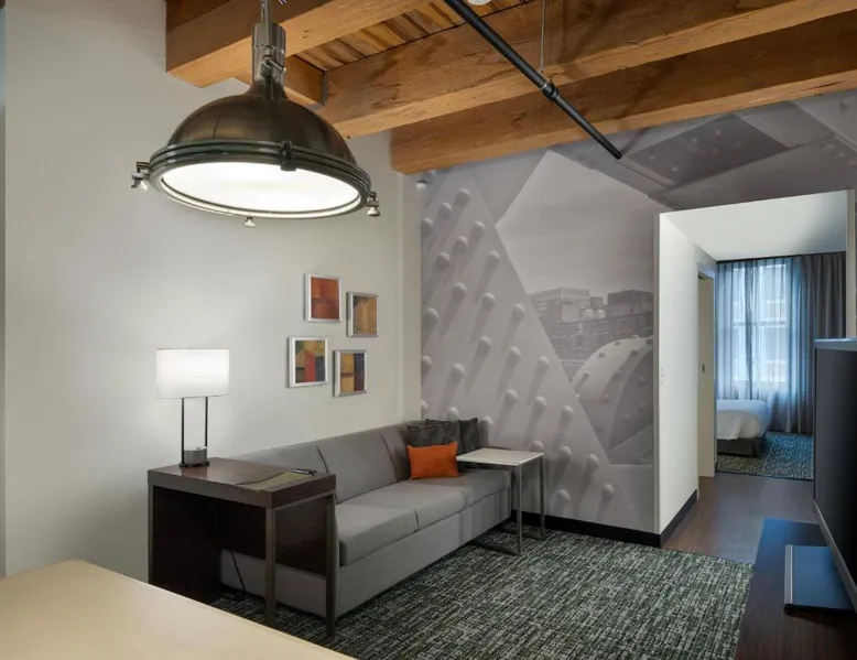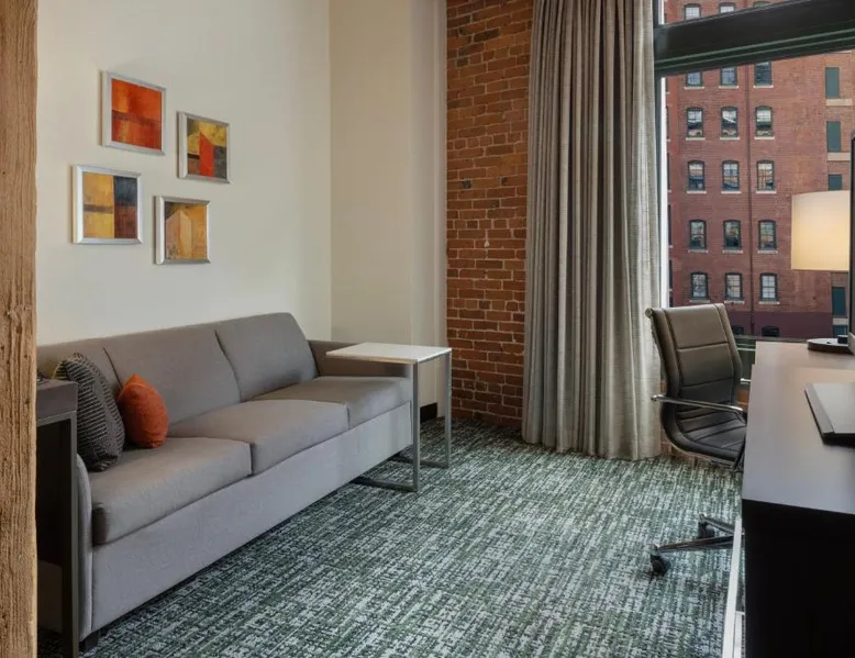 In the heart of downtown Boston, this hotel is a 10-minute walk from the Amtrak South Train Station and features a daily hot breakfast. The Boston Children’s museum is a short walk away. Each room at the Residence Inn by Marriott Boston Downtown Seaport features a full kitchen with stove, oven, microwave, and refrigerator. The brightly decorated rooms have a flat-screen TV and a sofa bed. Free Wi-Fi is available throughout the Boston Downtown Residence Inn. Guests can use the fitness center and take advantage of the 24-hour front desk. The Boston Convention Center is an 8-minute walk from the hotel. Boston Common is 1 mile away. Offering free toiletries, this suite includes a private bathroom with a shower and a hairdryer. The well-equipped kitchenette has a stovetop, a refrigerator, a dishwasher and kitchenware. The air-conditioned suite offers a flat-screen TV with streaming services, a private entrance, a tea and coffee maker, a seating area as well as city views. The unit has 2 beds.