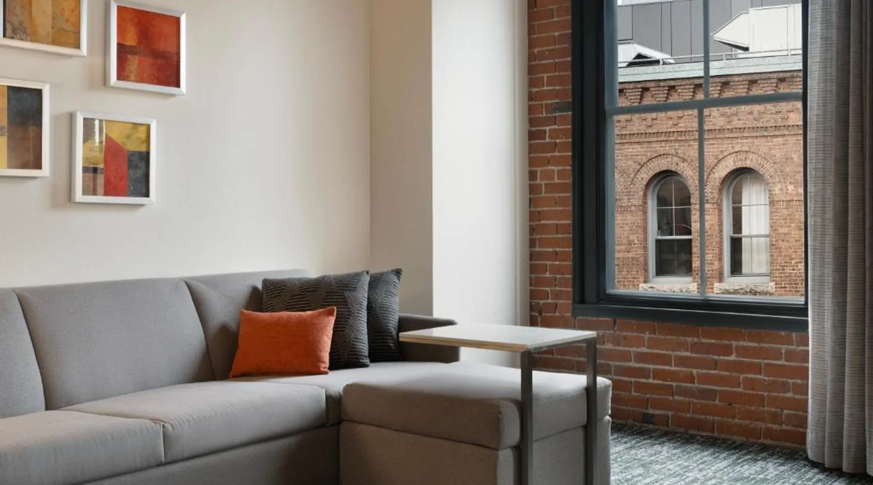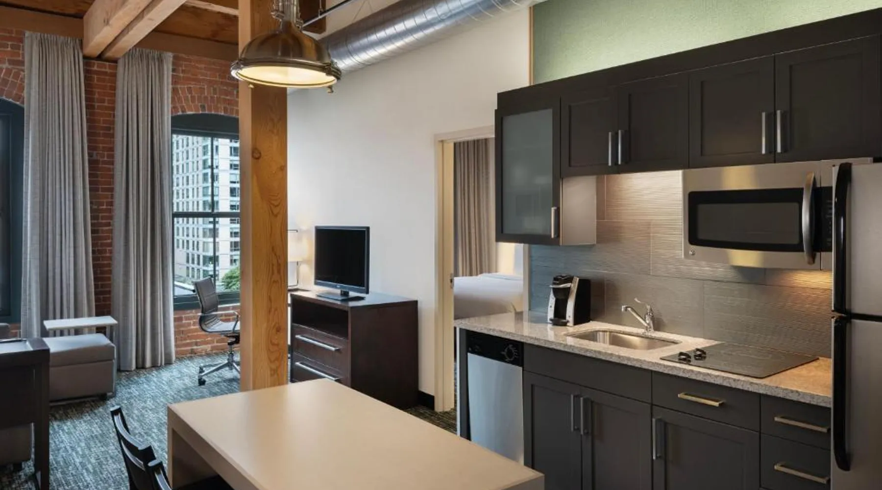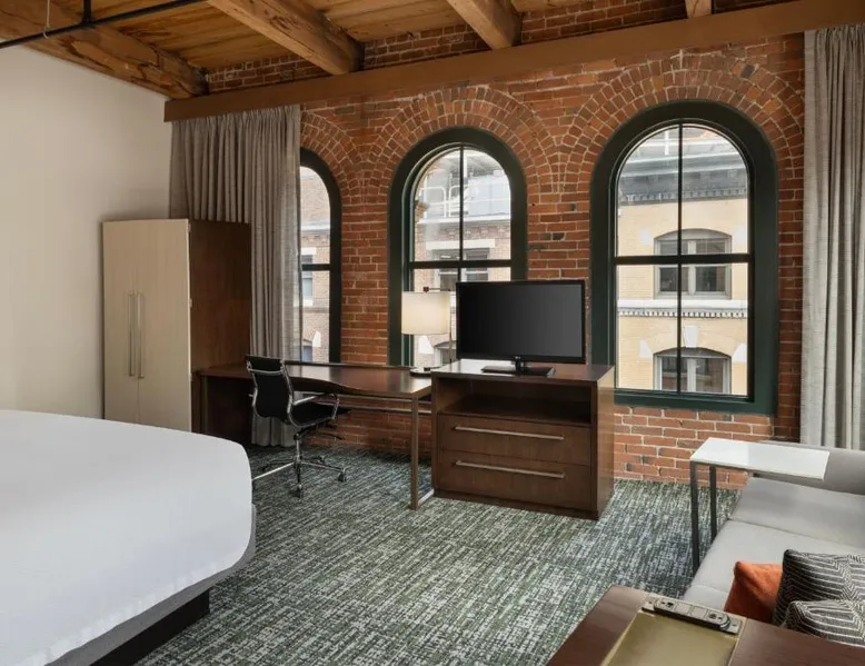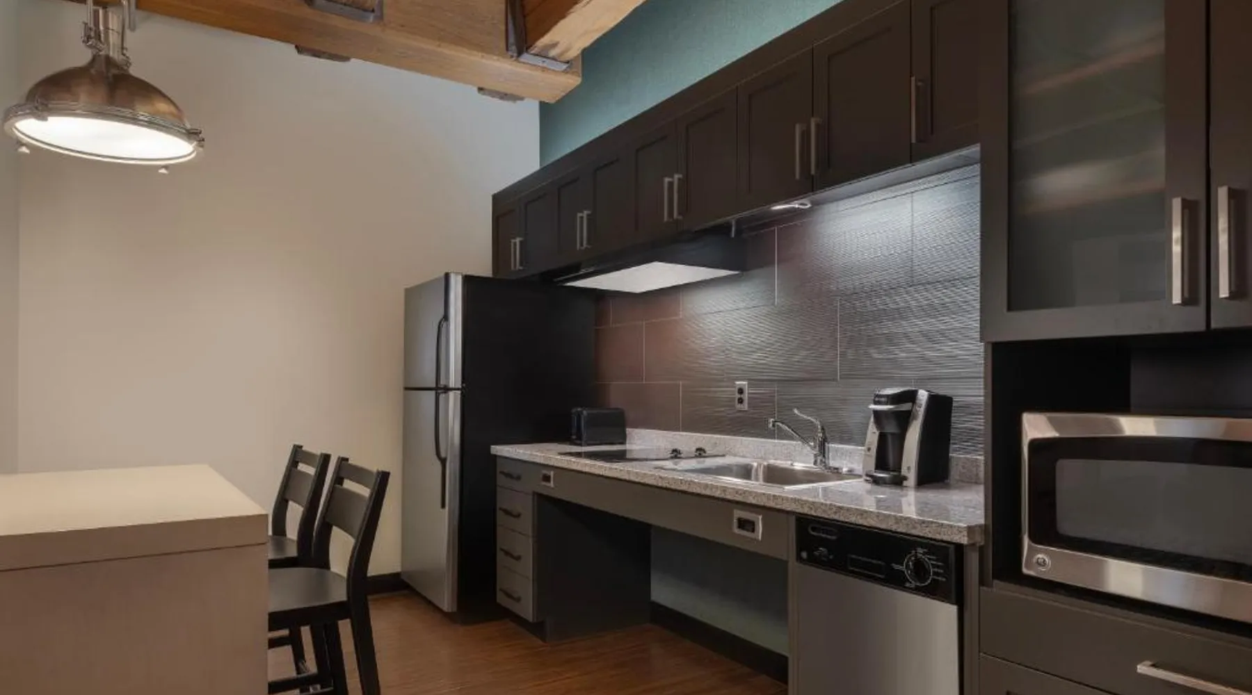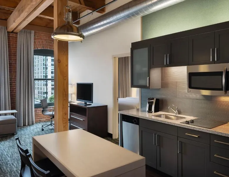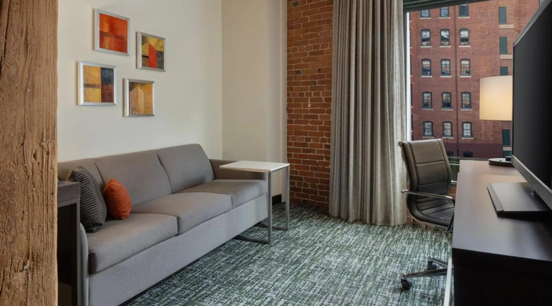 In the heart of downtown Boston, this hotel is a 10-minute walk from the Amtrak South Train Station and features a daily hot breakfast. The Boston Children’s museum is a short walk away. Each room at the Residence Inn by Marriott Boston Downtown Seaport features a full kitchen with stove, oven, microwave, and refrigerator. The brightly decorated rooms have a flat-screen TV and a sofa bed. Free Wi-Fi is available throughout the Boston Downtown Residence Inn. Guests can use the fitness center and take advantage of the 24-hour front desk. The Boston Convention Center is an 8-minute walk from the hotel. Boston Common is 1 mile away. Offering free toiletries, this suite includes a private bathroom with a shower and a hairdryer. The well-equipped kitchenette has a stovetop, a refrigerator, a dishwasher and kitchenware. The air-conditioned suite offers a flat-screen TV with streaming services, a private entrance, a tea and coffee maker, a seating area as well as city views. The unit has 2 beds.