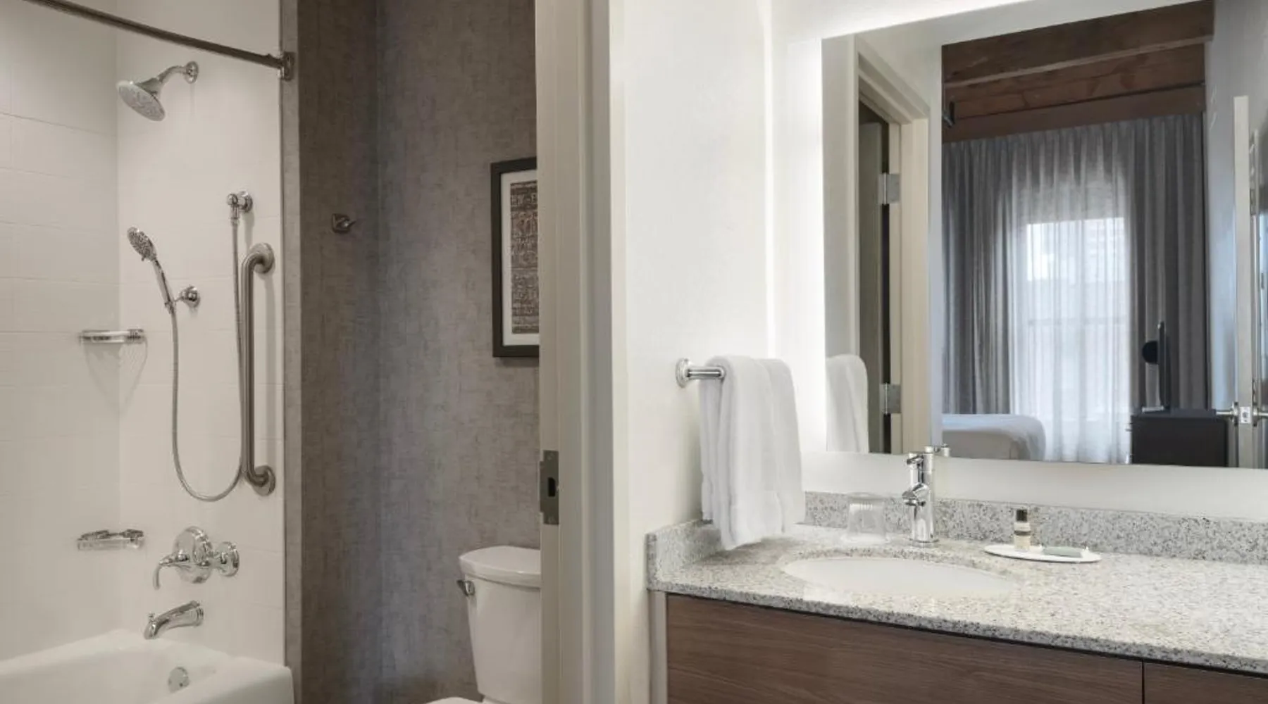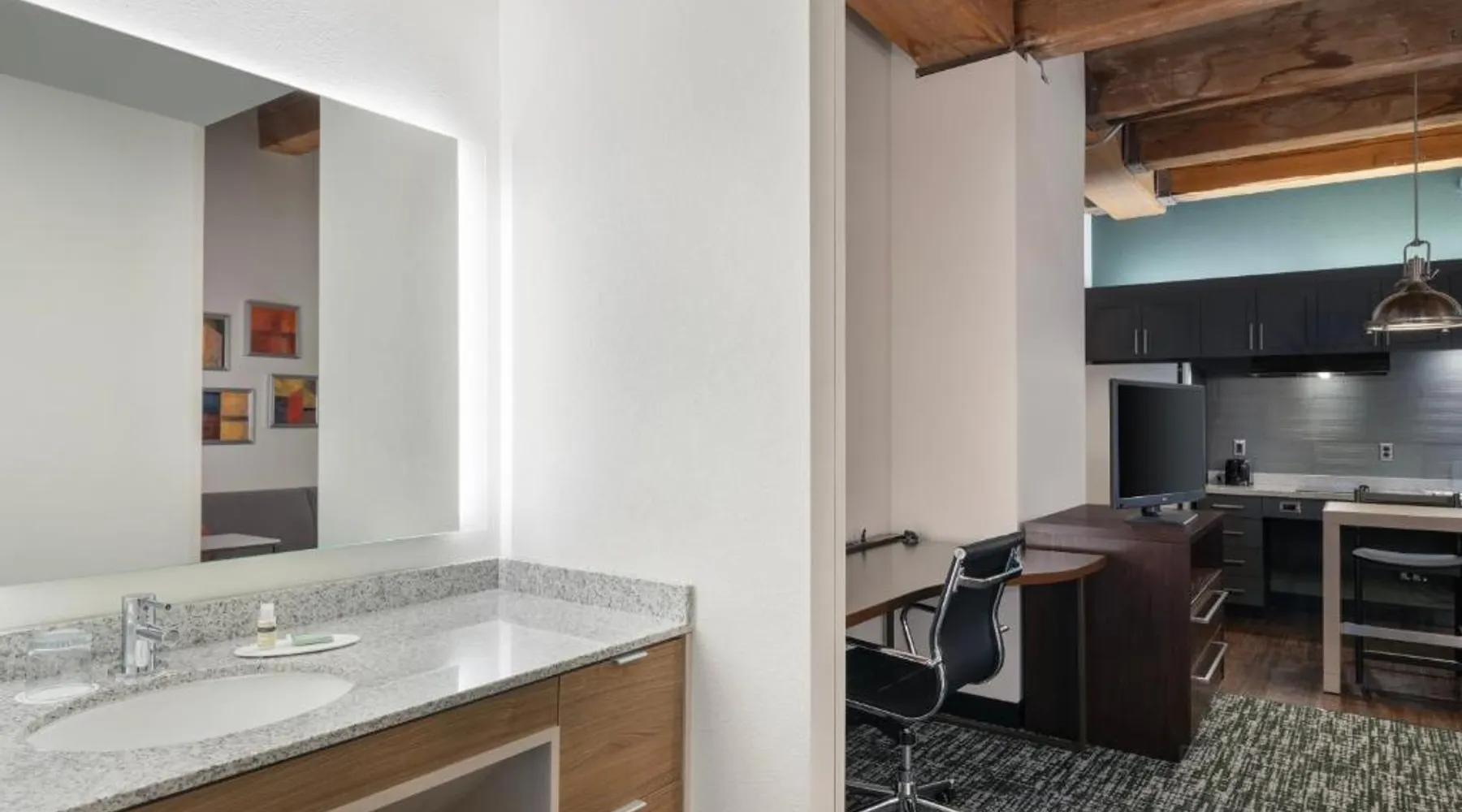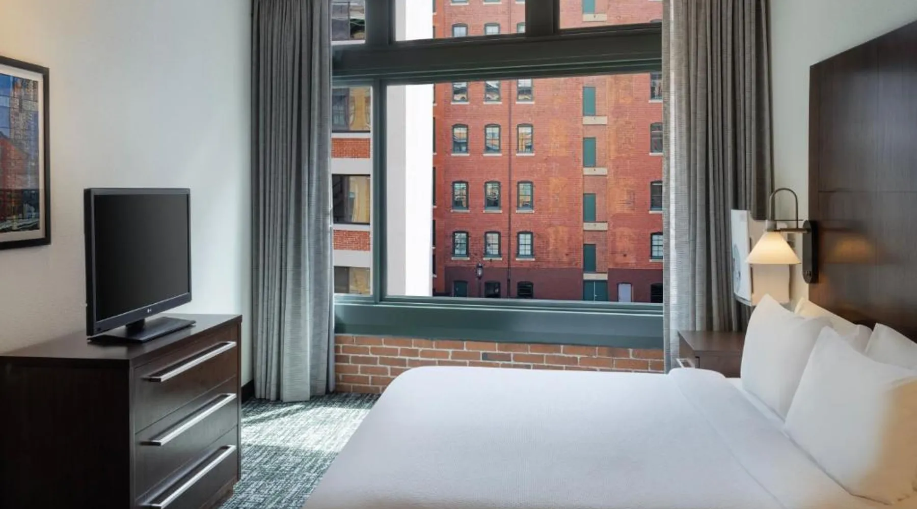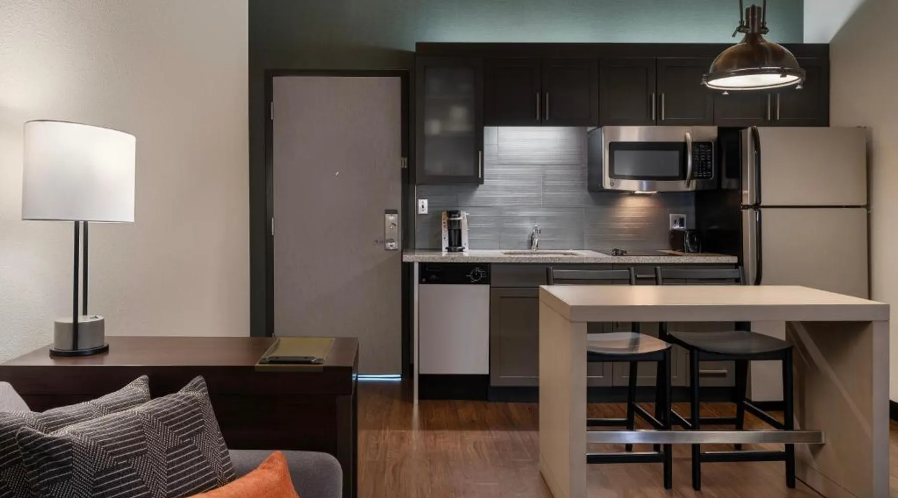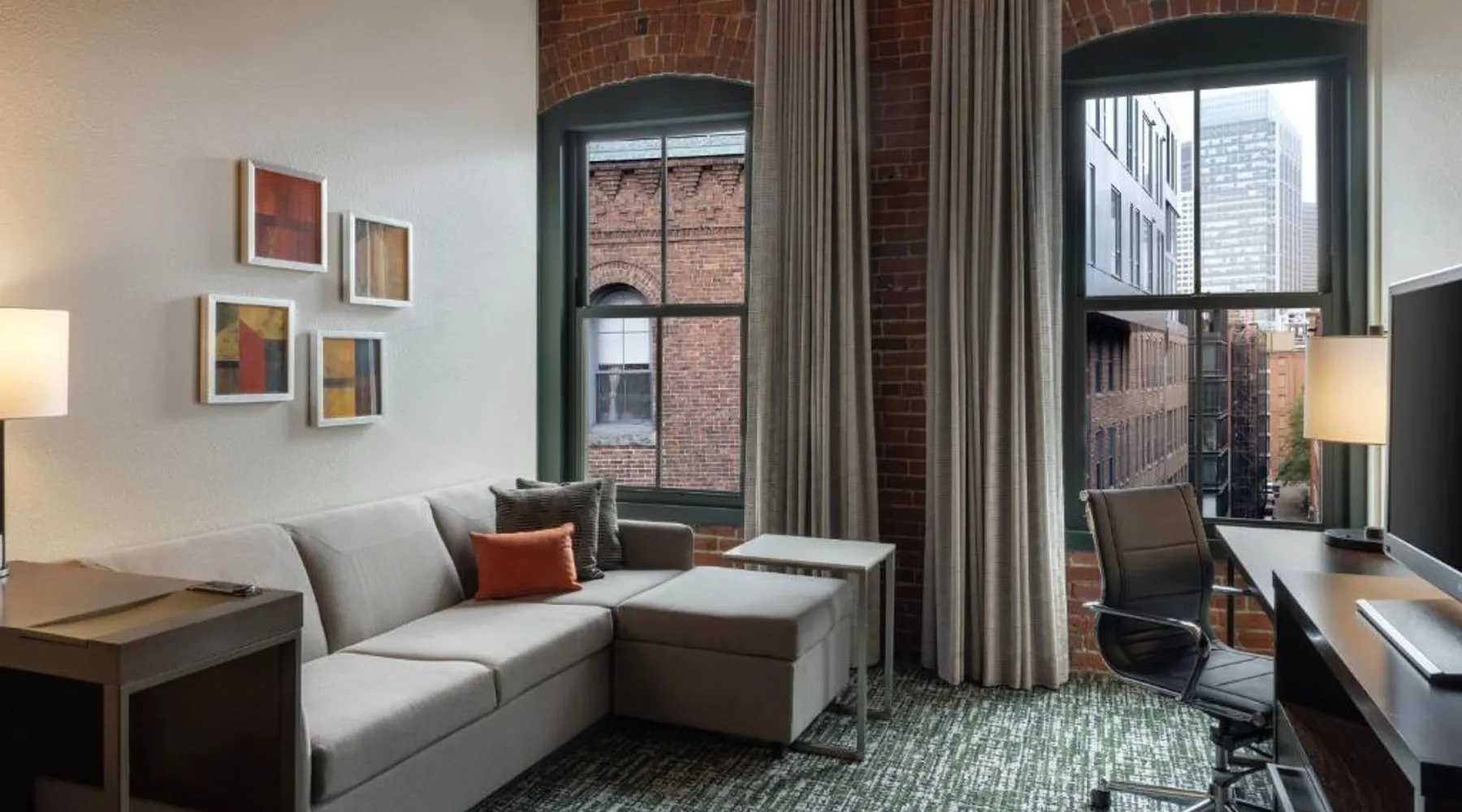 In the heart of downtown Boston, this hotel is a 10-minute walk from the Amtrak South Train Station and features a daily hot breakfast. The Boston Children’s museum is a short walk away. Each room at the Residence Inn by Marriott Boston Downtown Seaport features a full kitchen with stove, oven, microwave, and refrigerator. The brightly decorated rooms have a flat-screen TV and a sofa bed. Free Wi-Fi is available throughout the Boston Downtown Residence Inn. Guests can use the fitness center and take advantage of the 24-hour front desk. The Boston Convention Center is an 8-minute walk from the hotel. Boston Common is 1 mile away. Offering free toiletries, this suite includes a private bathroom with a shower and a hairdryer. The well-equipped kitchenette has a stovetop, a refrigerator, a dishwasher and kitchenware. The air-conditioned suite offers a flat-screen TV with streaming services, a private entrance, a tea and coffee maker, a seating area as well as city views. The unit has 2 beds.