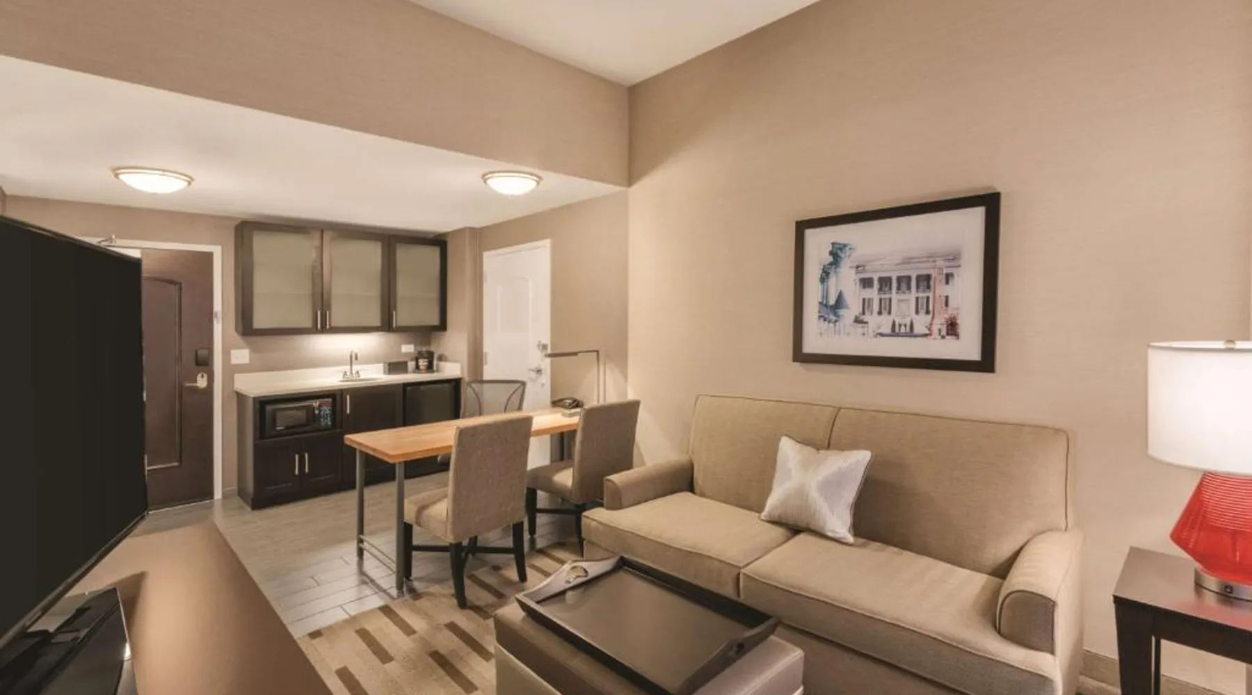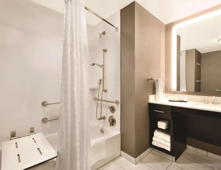 This Embassy Suites by Hilton Tuscaloosa Alabama Downtown is 5 minutes’ walk from the Tuscaloosa River Walk. Features include an indoor pool, a California-style restaurant with artisan cocktails, and free cooked-to-order breakfast. A flat-screen TV, desk, and an en suite with free toiletries are provided in all rooms. Rooms at this Tuscaloosa Alabama Downtown Embassy Suites also have a coffee machine and ironing facilities. Guests can enjoy a fitness center throughout their stay. Laundry facilities and free parking are on site. Room service is offered for a fee. The cook-to-order breakfast includes omelets with different fillings in addition to fruit, oatmeal, and pastries. Guests are also invited to a complimentary evening reception. Tuscaloosa Farmers' Market is 15 minutes’ walk away. The hotel is also within 1 mi of the Downtown Plaza Shopping Center and the University of Alabama. This spacious suite features a flat-screen TV, separate seating area with a sofa, and an en suite with free toiletries.