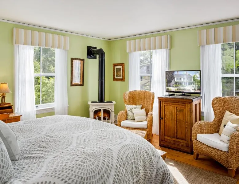 Historic Setting: Abigail's Inn in Camden offers a unique stay within a historic building. Guests enjoy garden views and a terrace, complemented by free WiFi throughout the property. Comfortable Accommodations: Rooms feature air-conditioning, private bathrooms with walk-in showers, bathrobes, and free toiletries. Additional amenities include a spa bath, fireplace, and parquet floors. Exceptional Services: The bed and breakfast provides private check-in and check-out, a lounge, concierge service, and free on-site parking. Special diet menus and housekeeping services ensure a comfortable stay. Local Attractions: Located 11 mi from Knox County Regional Airport, Abigail's Inn is near Laite Memorial Beach (12-minute walk), Mount Battie (1.2 mi), and Camden Harbor Park and Amphitheater (few steps). Highly rated for its breakfast and location. The fireplace is the standout feature of this double room. Featuring free toiletries and bathrobes, this double room includes a private bathroom with a walk-in shower, a bath and a hairdryer. The spacious air-conditioned double room features a flat-screen TV with cable channels, a seating area, a wardrobe, parquet floors as well as garden views. The unit has 1 bed.