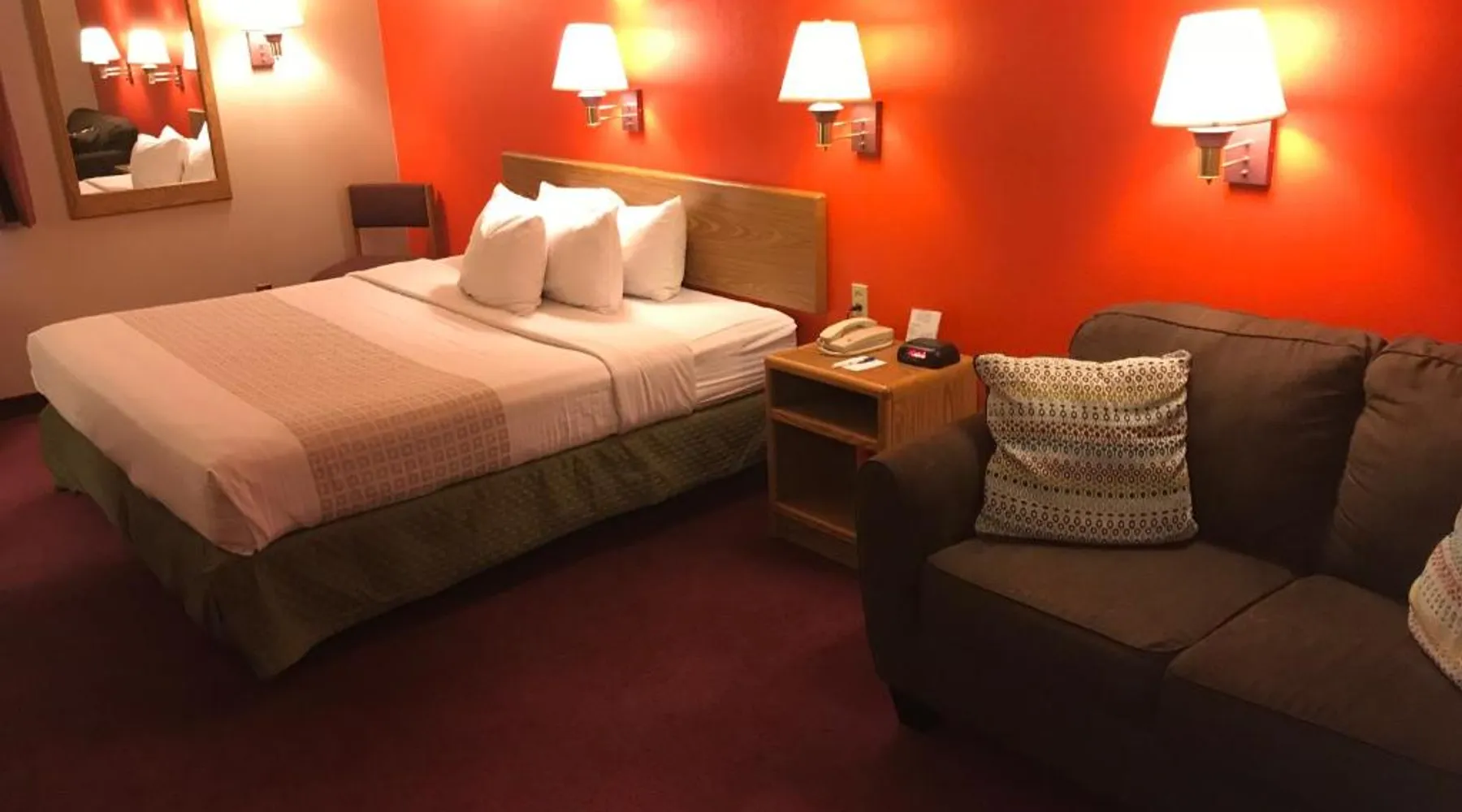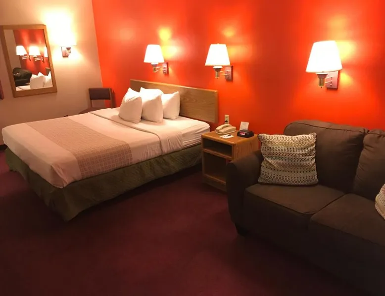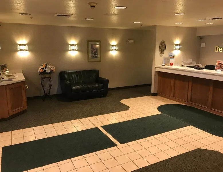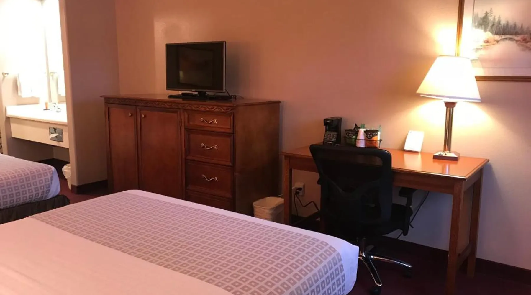 Comfortable Accommodations: Americas Best Value Inn Cedar City in Cedar City offers family rooms with balconies, interconnected rooms, and amenities such as baths, coffee machines, work desks, and free WiFi. Leisure Facilities: Guests can relax on the sun terrace or in the garden, enjoy the outdoor seating area, and utilize the barbecue facilities. Free on-site private parking is available. Convenient Location: Located 1.9 mi from Cedar City Regional Airport, the hotel is an 18-minute walk from Southern Utah University and less than 0.6 mi from Eccles Coliseum. Cedar Breaks National Monument is 23 mi away. Guest Services: Private check-in and check-out, a 24-hour front desk, daily housekeeping, and free WiFi enhance the stay. Additional services include a coffee shop, bicycle parking, and luggage storage. Offers a flat-screen cable TV, coffee-making facilities, and a sitting area.