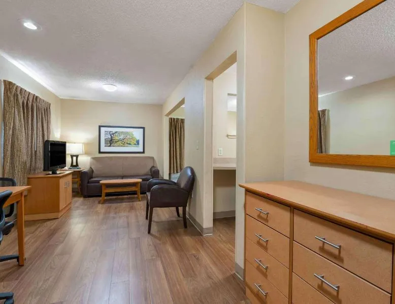 Comfortable Accommodations: Extended Stay America Suites - Cleveland - Middleburg Heights in Middleburg Heights offers air-conditioned rooms with private bathrooms, kitchens, and free WiFi. Each room includes a work desk, TV, and free toiletries. Facilities and Services: Guests can enjoy a fitness center, outdoor seating area, picnic spots, and barbecue facilities. The hotel provides free on-site private parking, a elevator, 24-hour front desk, and bicycle parking. Convenient Location: Located 2.5 mi from Cleveland Hopkins International Airport, the hotel is near attractions such as I-X Center (3.1 mi), Cleveland Browns Stadium (14 mi), and Cleveland Metroparks Zoo (11 mi). Guests appreciate the convenient location and excellent service. Featuring free toiletries, this studio includes a private bathroom with a bath, a shower and a hairdryer. In the well-fitted kitchen, guests will find a stovetop, a refrigerator, a dishwasher and kitchenware. This air-conditioned studio features a dining area, a flat-screen TV with cable channels a tea and coffee maker and a carpeted floor. The unit has 2 beds.