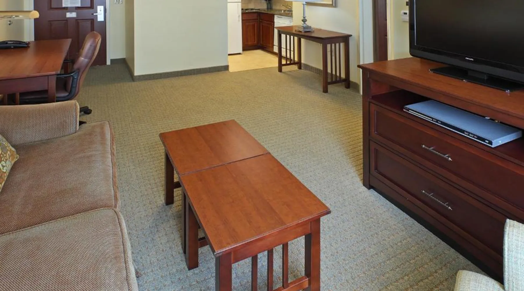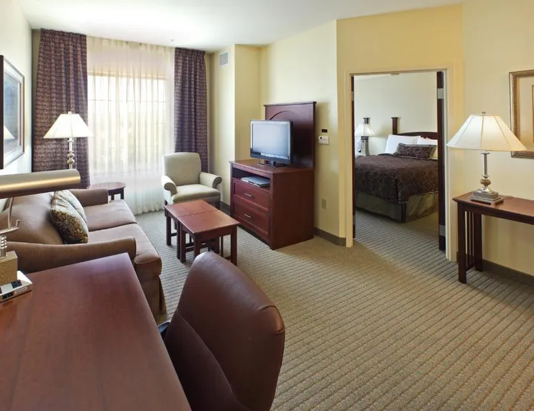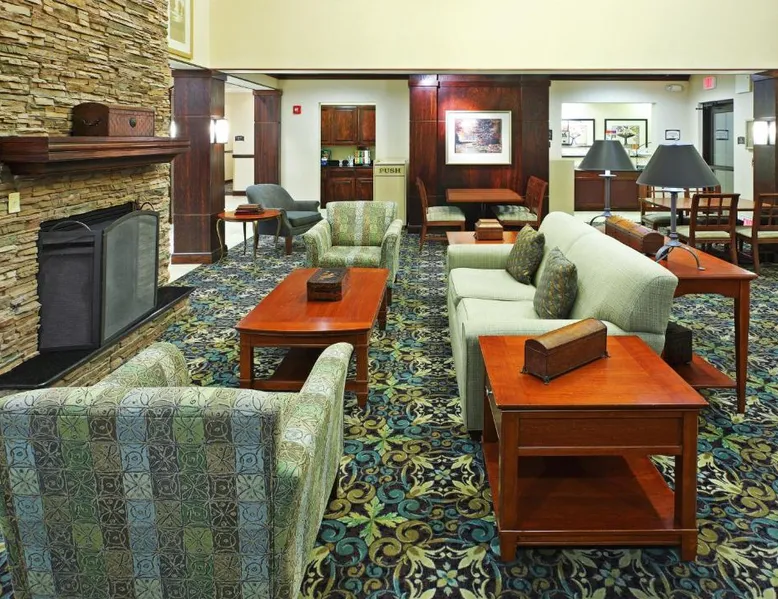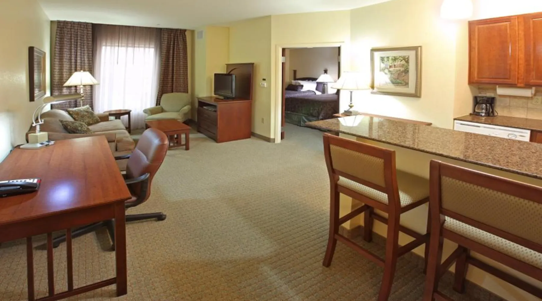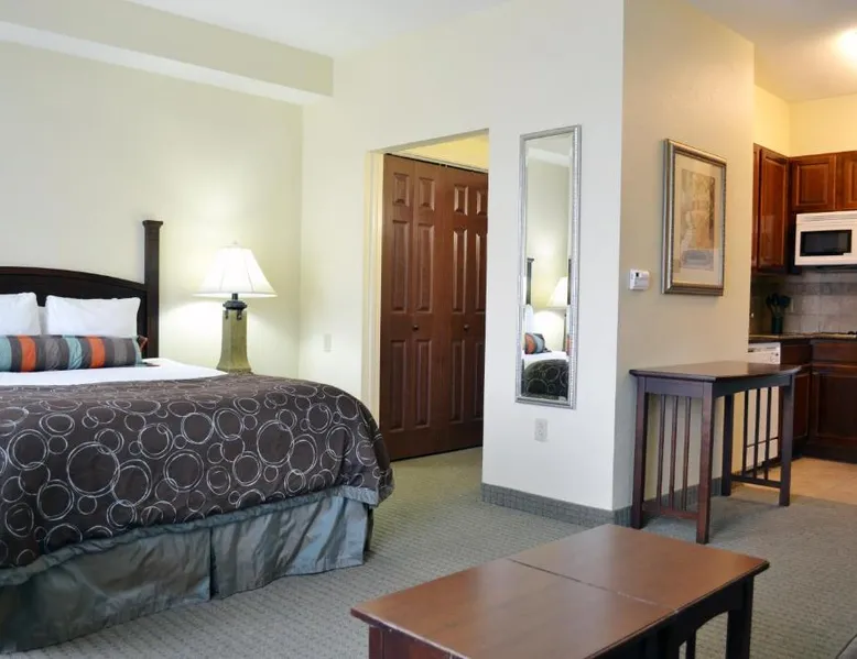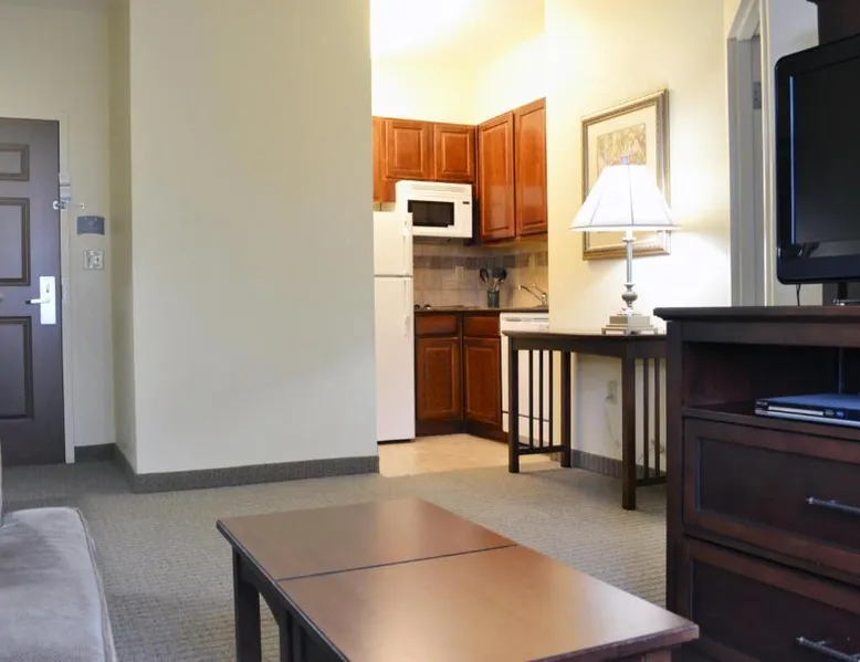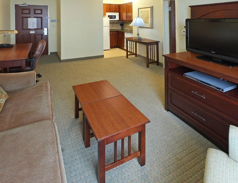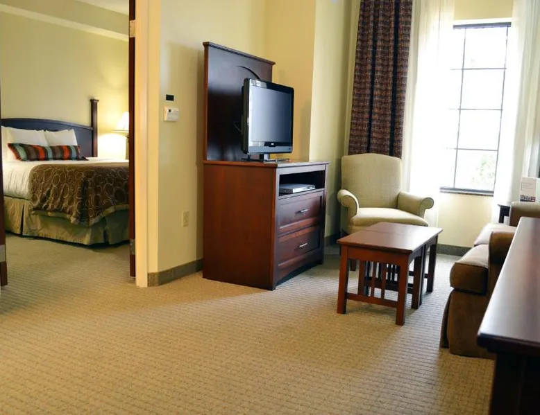 This hotel is located on Lake Hamilton in Hot Springs, Arkansas. It features an indoor pool and a hot buffet-style breakfast is served every morning. Free Wi-Fi and a flat-screen TV are provided in every hotel room at Staybridge Suites Hot Springs. Rooms also include a dining area, a kitchenette, and a seating area. Staybridge Suites Hot Springs has an on-site convenience store that sells snacks. BBQ facilities are also available for guests to use. On Monday through Wednesday evenings, complimentary drinks are served. The fitness center and the business center at the Hot Springs Staybridge Suites are open 24 hours a day. Guests can relax on an outdoor patio that overlooks Lake Hamilton. Hot Springs National Park is 8.6 miles from Staybridge Suites Hot Springs. Garvan Woodland Gardens are a 20-minute drive away. A seating area with a flat-screen TV and a kitchenette are offered in this room. A visual alarm and closed captioning are also included.