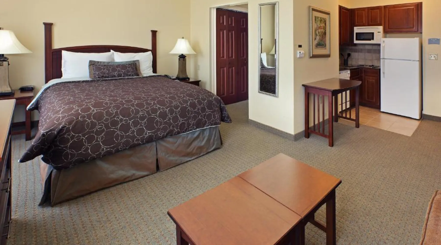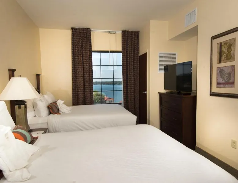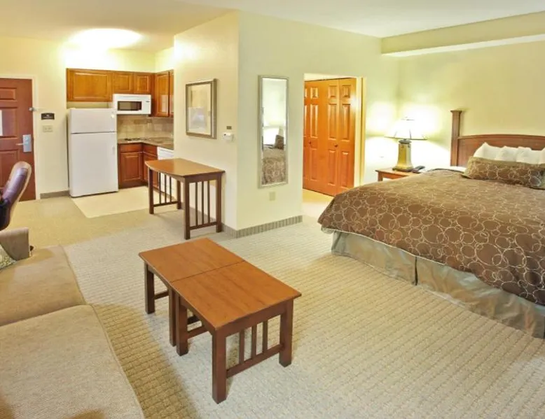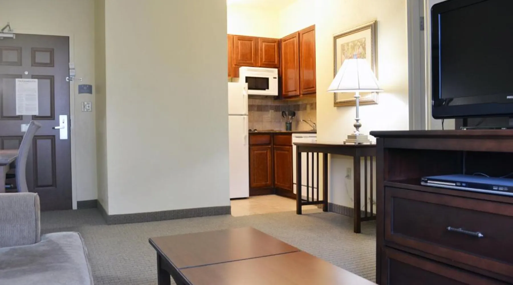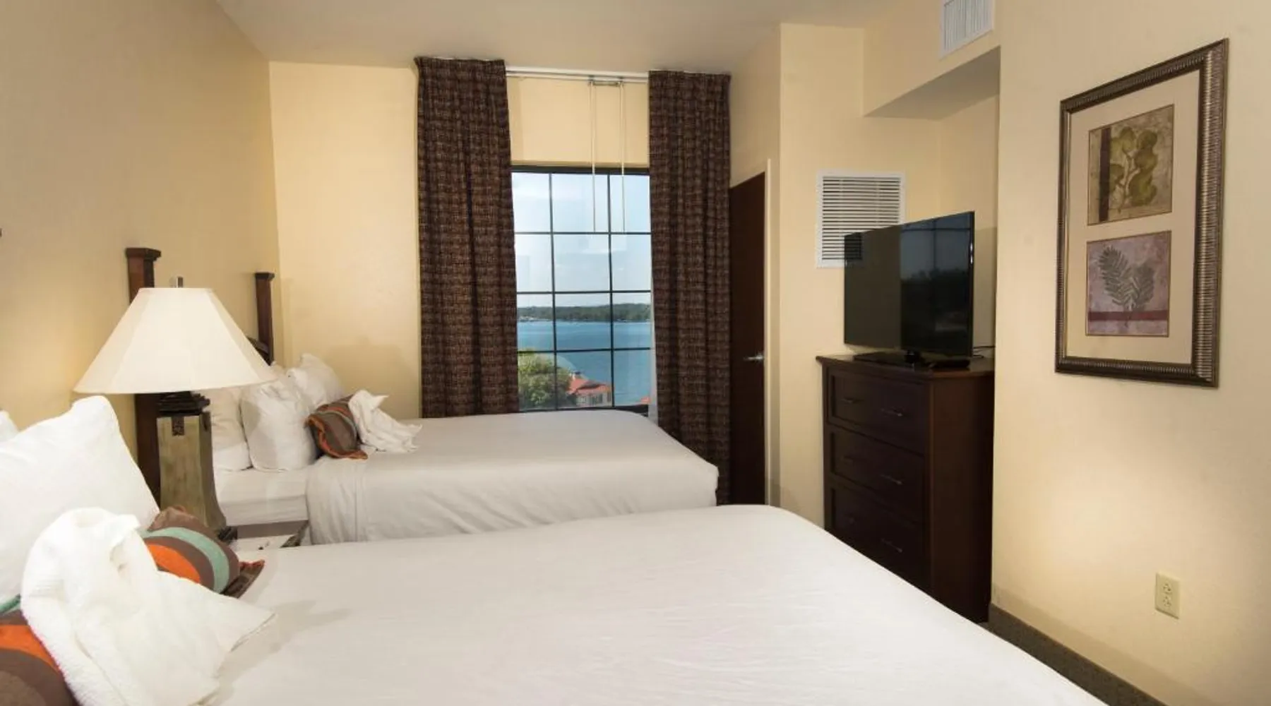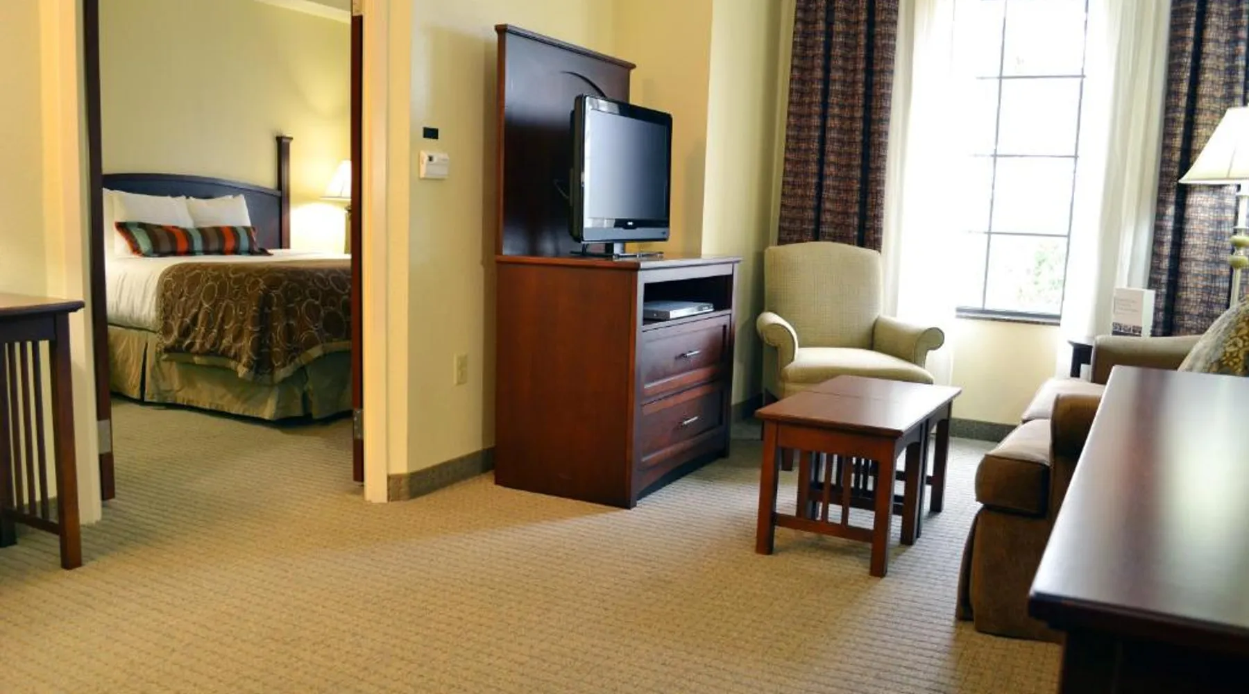 This hotel is located on Lake Hamilton in Hot Springs, Arkansas. It features an indoor pool and a hot buffet-style breakfast is served every morning. Free Wi-Fi and a flat-screen TV are provided in every hotel room at Staybridge Suites Hot Springs. Rooms also include a dining area, a kitchenette, and a seating area. Staybridge Suites Hot Springs has an on-site convenience store that sells snacks. BBQ facilities are also available for guests to use. On Monday through Wednesday evenings, complimentary drinks are served. The fitness center and the business center at the Hot Springs Staybridge Suites are open 24 hours a day. Guests can relax on an outdoor patio that overlooks Lake Hamilton. Hot Springs National Park is 8.6 miles from Staybridge Suites Hot Springs. Garvan Woodland Gardens are a 20-minute drive away. A seating area with a flat-screen TV and a kitchenette are offered in this room. A visual alarm and closed captioning are also included.