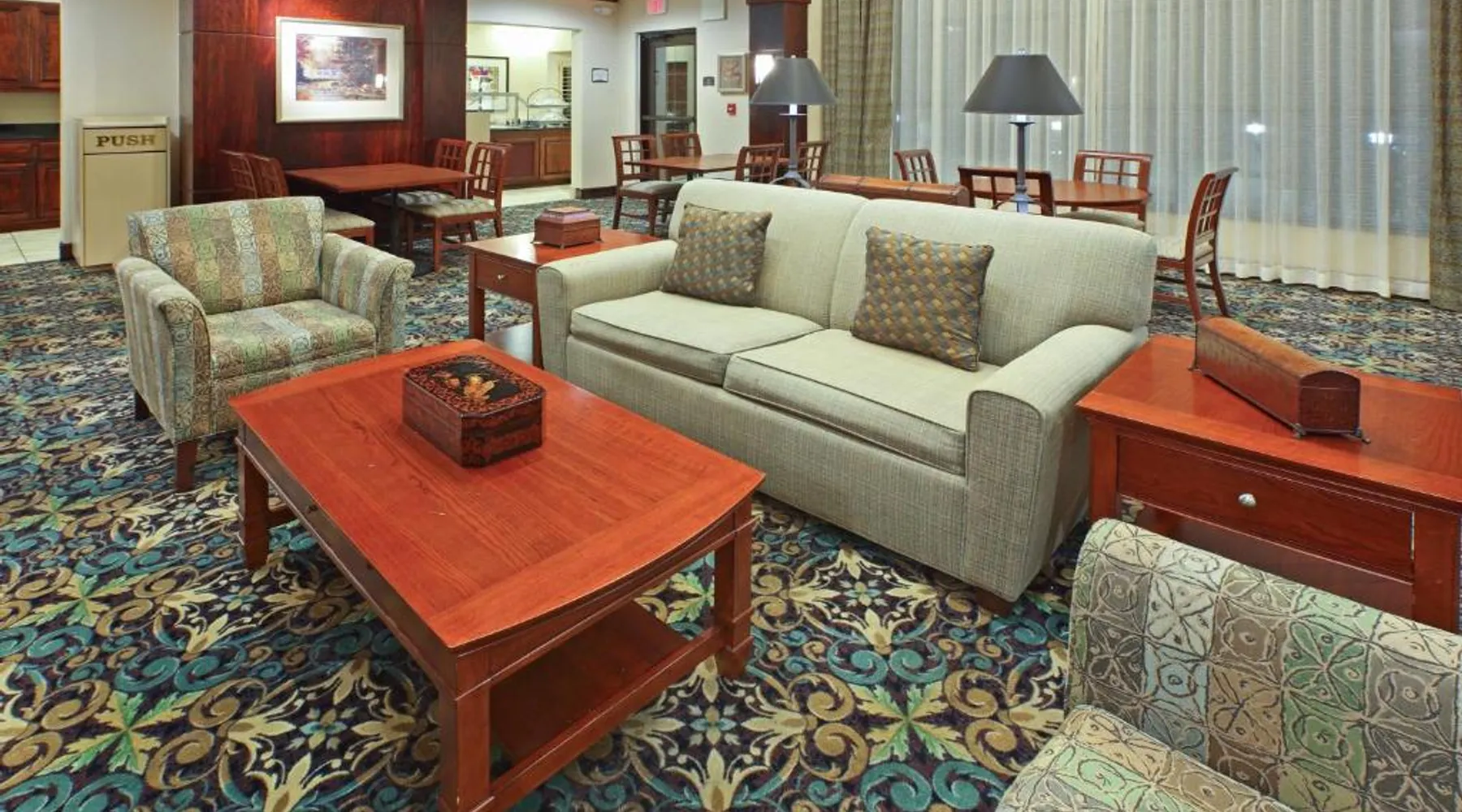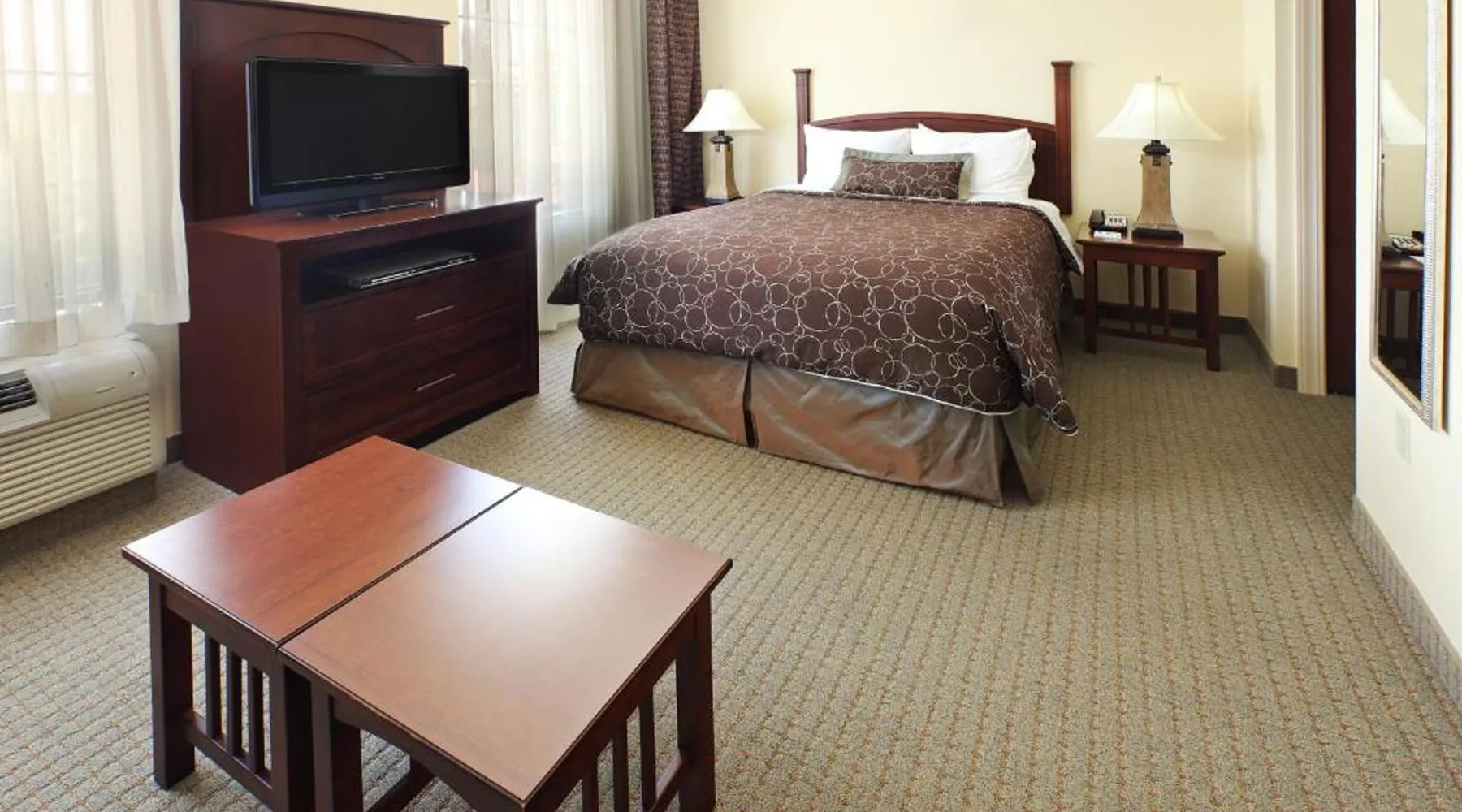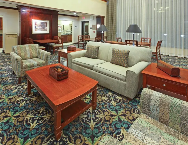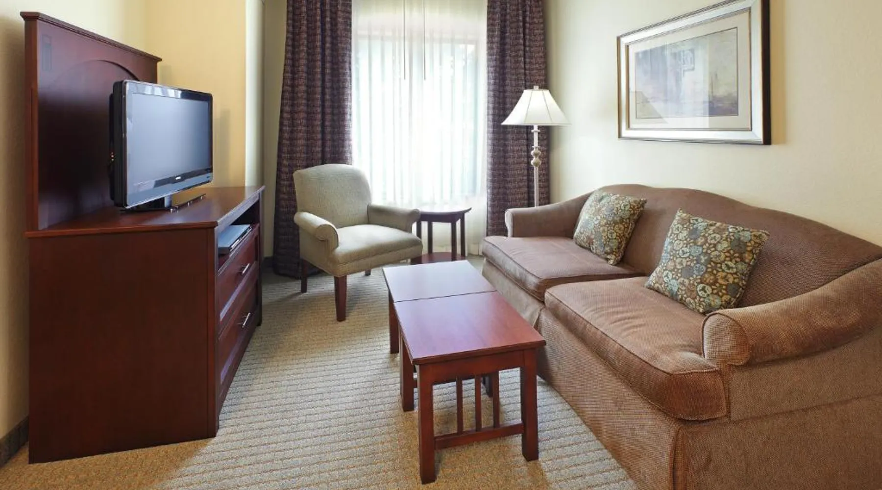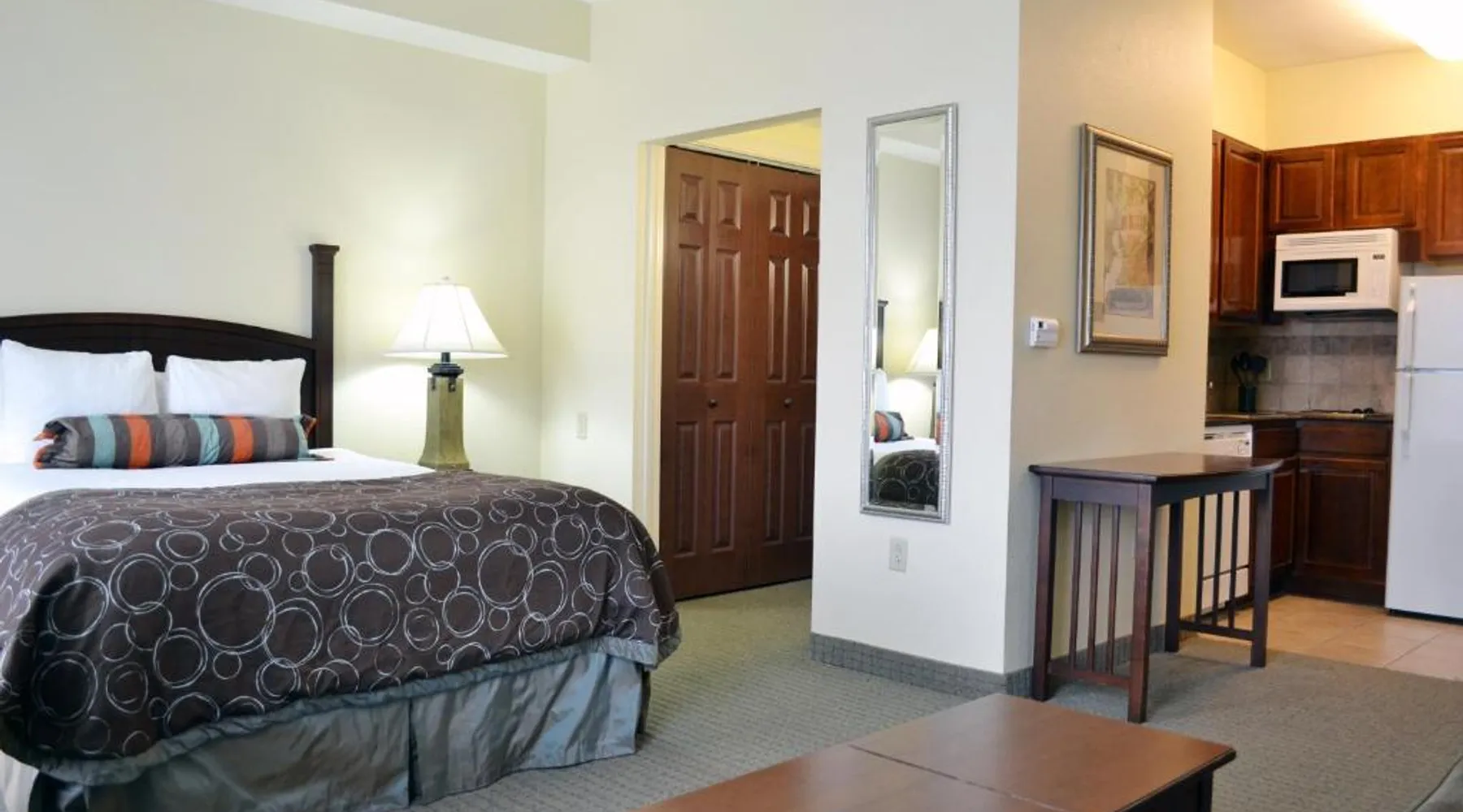 This hotel is located on Lake Hamilton in Hot Springs, Arkansas. It features an indoor pool and a hot buffet-style breakfast is served every morning. Free Wi-Fi and a flat-screen TV are provided in every hotel room at Staybridge Suites Hot Springs. Rooms also include a dining area, a kitchenette, and a seating area. Staybridge Suites Hot Springs has an on-site convenience store that sells snacks. BBQ facilities are also available for guests to use. On Monday through Wednesday evenings, complimentary drinks are served. The fitness center and the business center at the Hot Springs Staybridge Suites are open 24 hours a day. Guests can relax on an outdoor patio that overlooks Lake Hamilton. Hot Springs National Park is 8.6 miles from Staybridge Suites Hot Springs. Garvan Woodland Gardens are a 20-minute drive away. A seating area with a flat-screen TV and a kitchenette are offered in this room. A visual alarm and closed captioning are also included.
