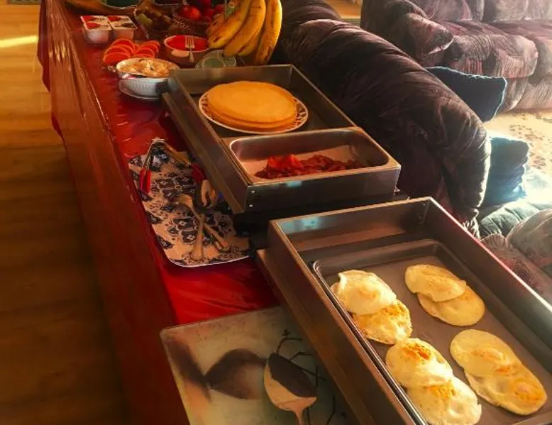 Comfortable Accommodations: Gîte du Moulin in L'Isle-aux-Coudres offers family rooms with ground-floor units. Each room includes a TV, wardrobe, and free toiletries. Shared bathrooms feature a dishwasher and hairdryer. Outdoor Spaces: Guests can relax on the sun terrace or in the garden. Free WiFi is available in public areas. The property also provides bike hire and barbecue facilities. Amenities and Services: The bed and breakfast offers a lounge, shared kitchen, daily housekeeping service, and free on-site private parking. Additional services include fishing, walking tours, hiking, and cycling. Local Attractions: Les Moulins de l'Isle-aux-Coudres is a 2-minute walk away. Québec City Jean Lesage International Airport is 83 mi from the property. Guests have access to a shared bathroom.