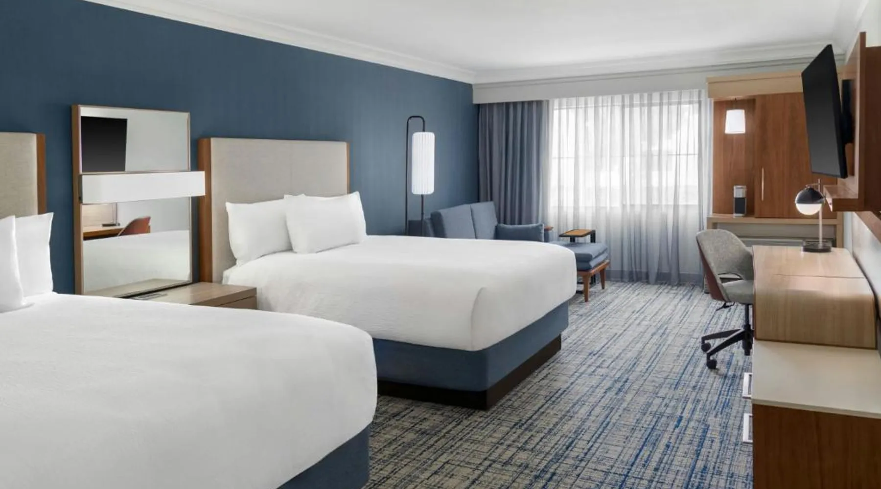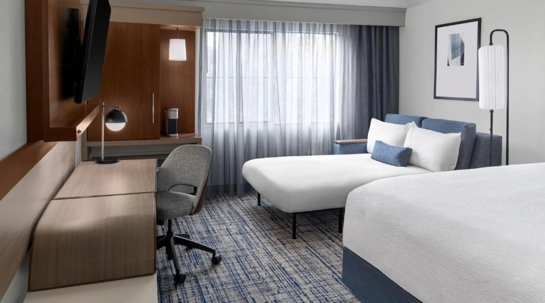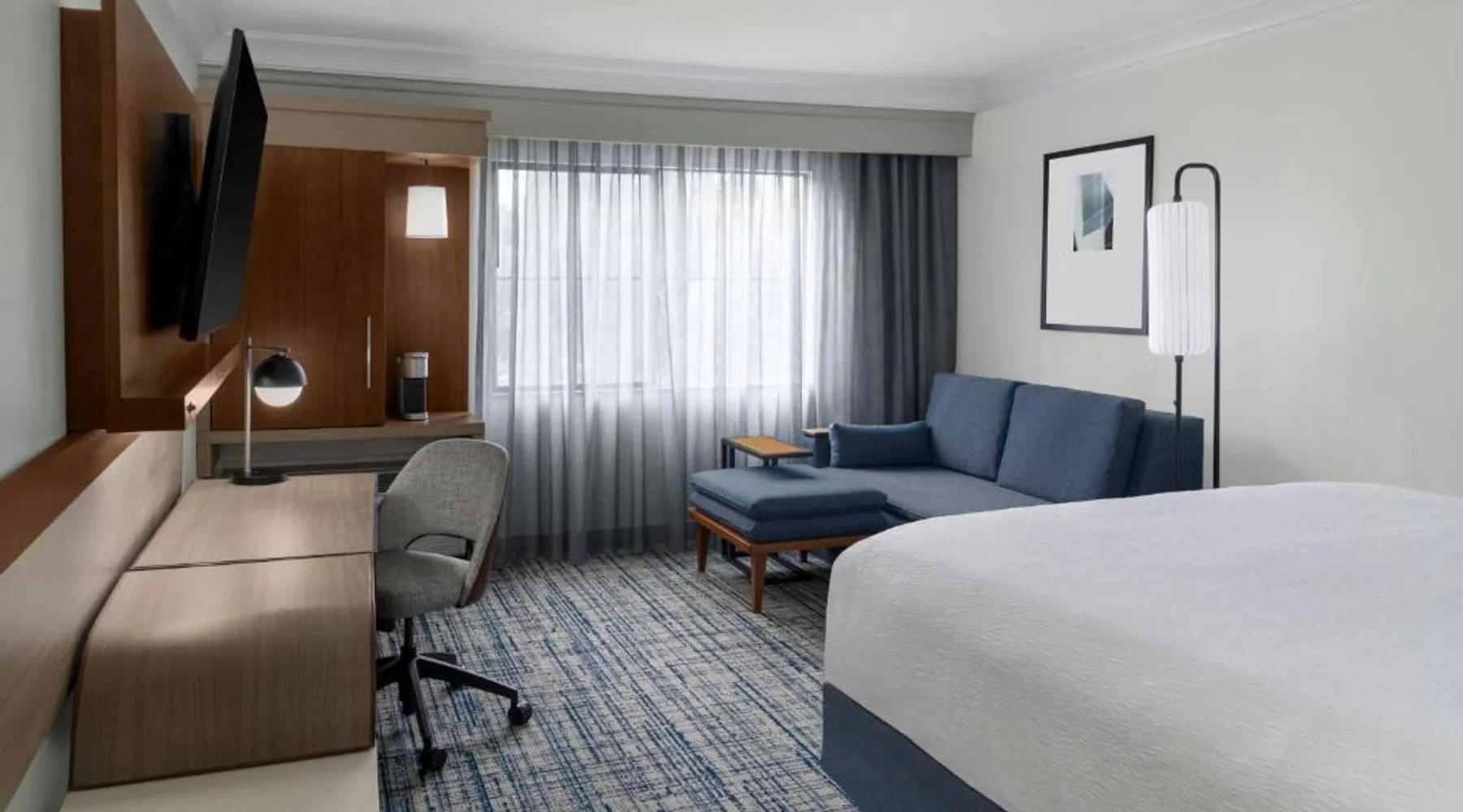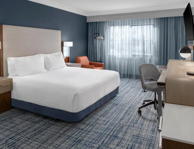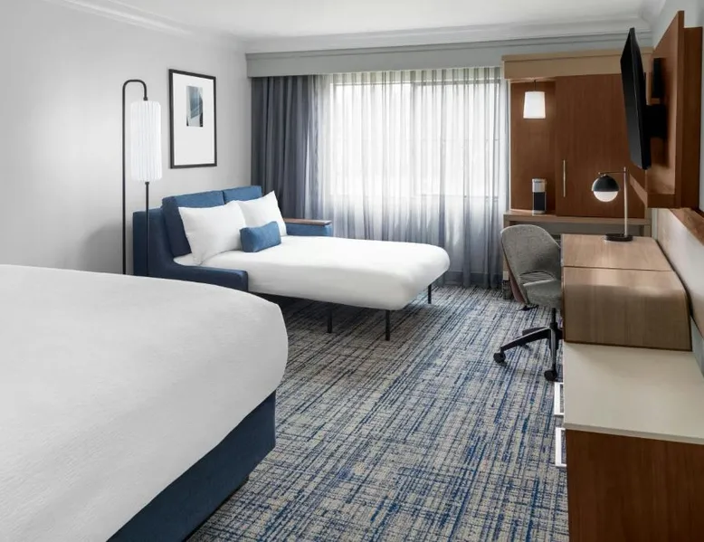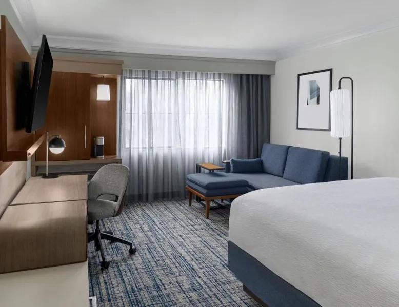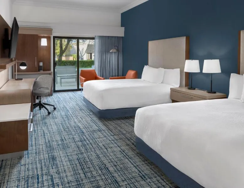 Located among landscaped gardens, this hotel features an outdoor pool, a hot tub and a gym. All rooms feature a work desk. Stanford University Campus is 3 mi away. Each air-conditioned guest accommodations at Courtyard Palo Alto Los Altos features a 43-inch flat-screen TV with pay-per-view channels, an iPod docking station and a coffee machine. Each room also has a sofa bed At The Bistro restaurant guests can enjoy American favorites for breakfast and dinner. Guests can also enjoy a refreshing glass of wine or a cocktail at the hotel bar and lounge. The hotel lobby offers computers and printers available for guests’ use. It also offers free coffee and newspapers. Courtyard Palo Alto Los Altos 11 mi from San Jose International Airport. Entertainment venue The Shoreline Amphitheater is 12 minutes’ drive away. Free on-site public parking is available. Offering free WiFi, this air-conditioned room includes a flat-screen cable TV with pay-per-view channels and a well-lit work area with a desk. An iPod docking station and a coffee machine are included.