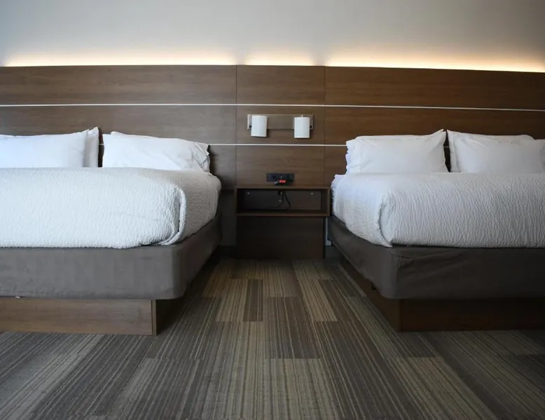 Comfortable Accommodations: Holiday Inn Express Hotel & Suites Lincoln South by IHG in Lincoln offers spacious rooms with air-conditioning, private bathrooms, and free WiFi. Each room includes a work desk, TV, and complimentary toiletries. Exceptional Facilities: Guests can enjoy an indoor swimming pool, fitness center, and outdoor seating area. Additional amenities include a 24-hour front desk, minimarket, and free on-site parking. Delicious Breakfast: A continental buffet breakfast is served daily, featuring warm dishes, fresh pastries, pancakes, fruits, and juice. Prime Location: Located 14 mi from Lincoln Airport, the hotel is near attractions such as Lincoln Memorial Stadium (9.9 mi) and Wilderness Ridge Golf Course (6.2 mi). Guests appreciate the room size and comfort. Providing free toiletries, this twin room includes a private bathroom with a shower and a hairdryer. The spacious air-conditioned twin room provides a flat-screen TV with cable channels, a tea and coffee maker, a seating area and a wardrobe. The unit offers 2 beds.