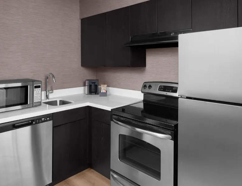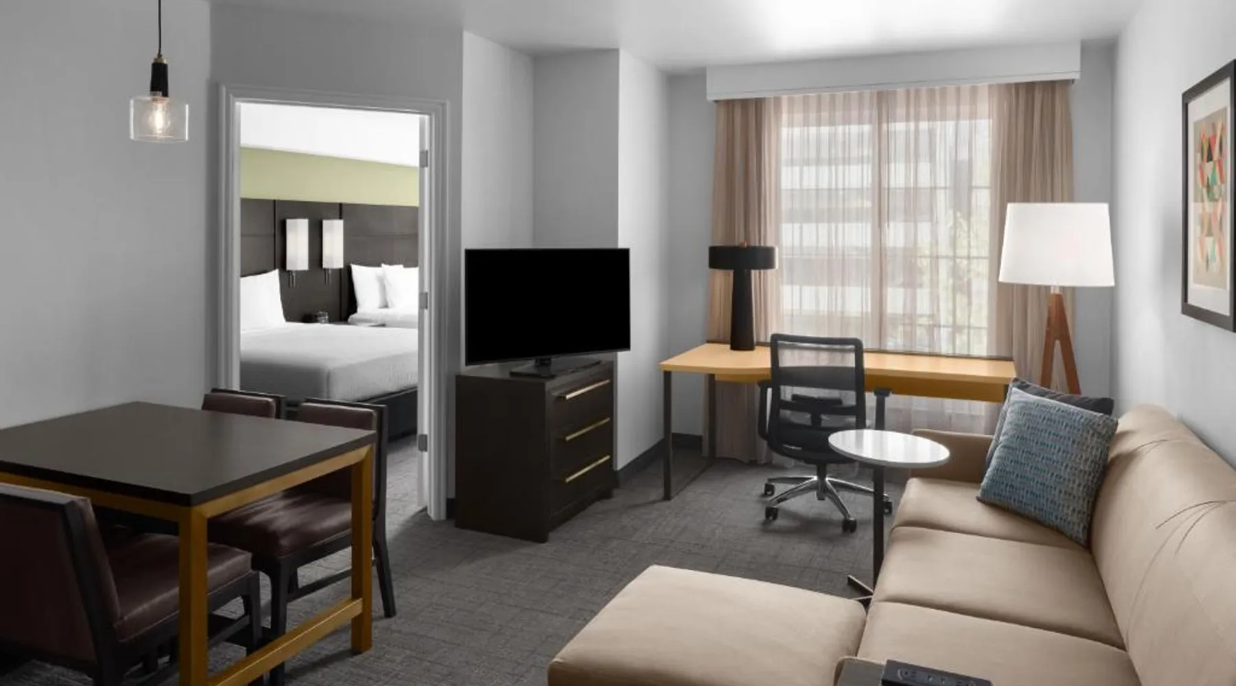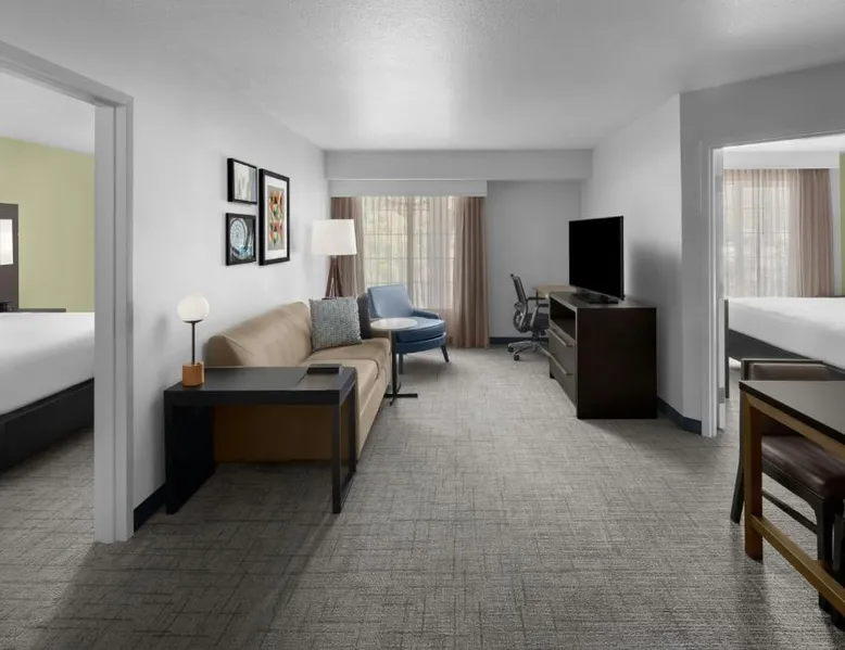 Comfortable Accommodations: Residence Inn Salt Lake City Sandy in Sandy offers family rooms with air-conditioning, private bathrooms, and fully equipped kitchens. Each room includes a work desk, dining area, and free WiFi. Exceptional Facilities: Guests can enjoy an indoor swimming pool, fitness center, and hot tub. Additional amenities include a fitness room, minimarket, and outdoor seating area. Free on-site parking is available. Delicious Breakfast: A complimentary American buffet breakfast is served daily, highly appreciated by guests. Convenient Location: Located 17 mi from Salt Lake City International Airport and 1.2 mi from Mountain America Expo Center. Nearby attractions include Rio Tinto Stadium and Cinemark-Draper & Xd. Suite features a separate living area, 2 bathrooms and 3 TVs.