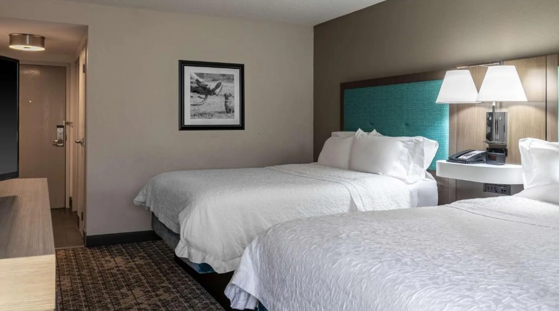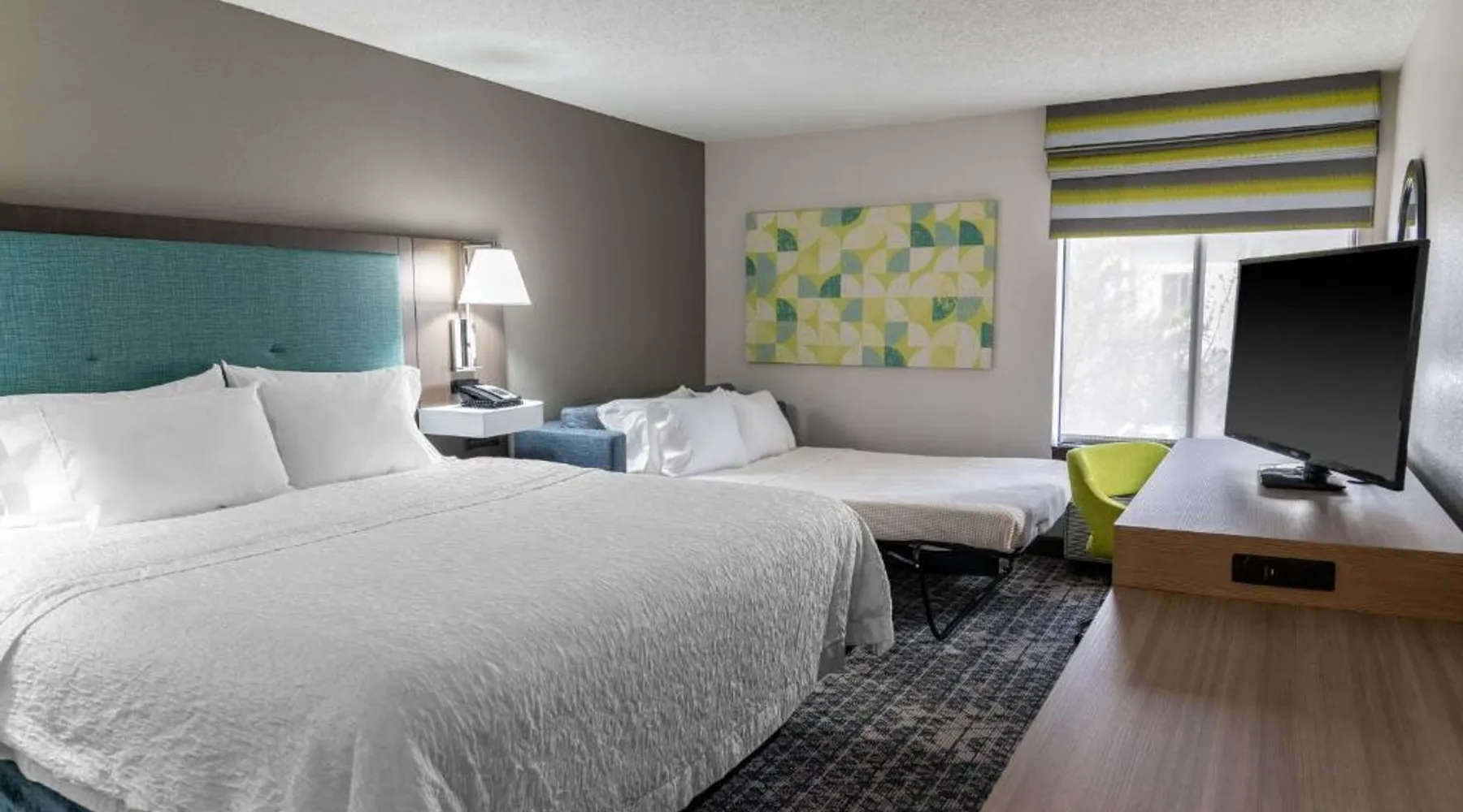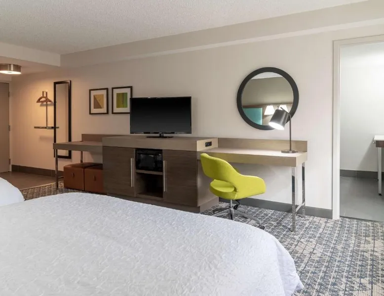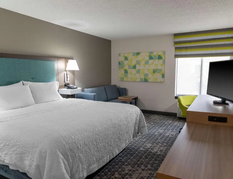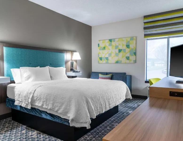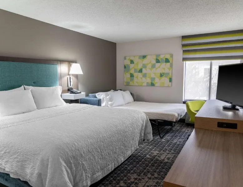 Comfortable Accommodations: Hampton Inn Kansas City-Lee's Summit in Lees Summit offers family rooms with private bathrooms, free WiFi, and modern amenities including a fitness center, indoor swimming pool, and a lounge. Convenient Facilities: Guests enjoy a 24-hour front desk, fitness room, business area, and free on-site parking. Additional services include private check-in and check-out, daily housekeeping, and a minimarket. Delicious Breakfast: A buffet breakfast is served with warm dishes, juice, and fruits, highly appreciated by guests for its quality and variety. Prime Location: Located 38 mi from Kansas City International Airport, the hotel is near attractions such as Kauffman Stadium (15 mi) and Kansas City Zoo (12 mi). Free WiFi is available throughout the property. Offering a 32-inch flat-screen TV and free Wi-Fi, this room includes a microwave and a refrigerator.